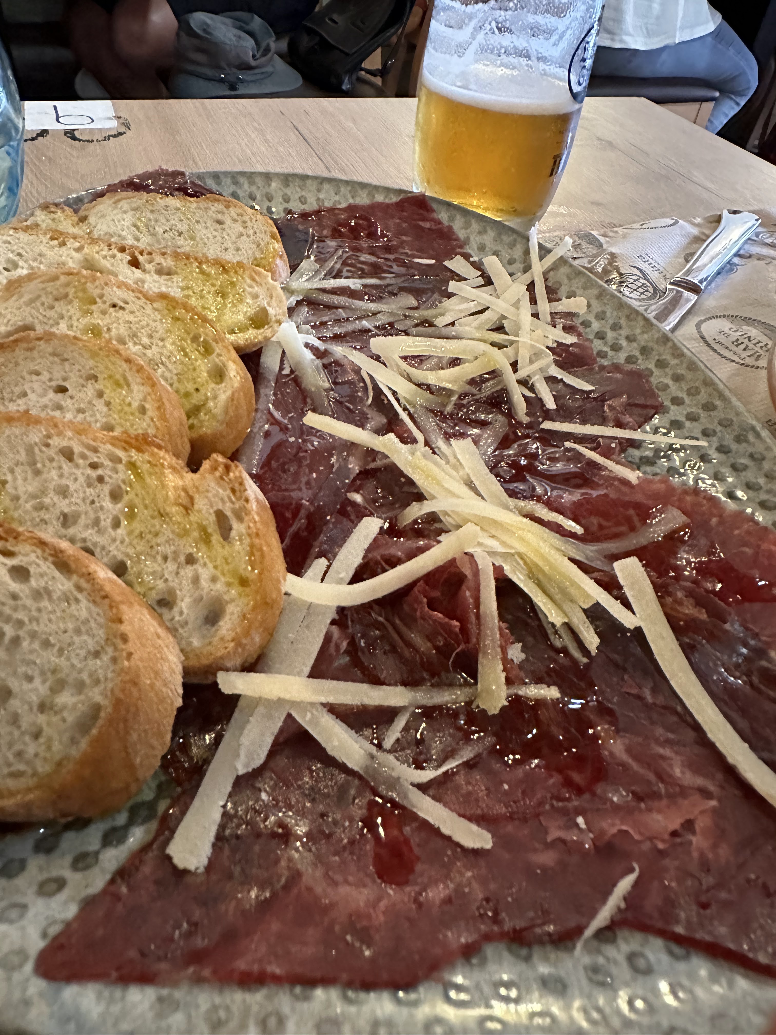 Cañas de cerveza a 2,50 eur; pan 1,20 p.p. El agua micro-filtrada no la cobraron.