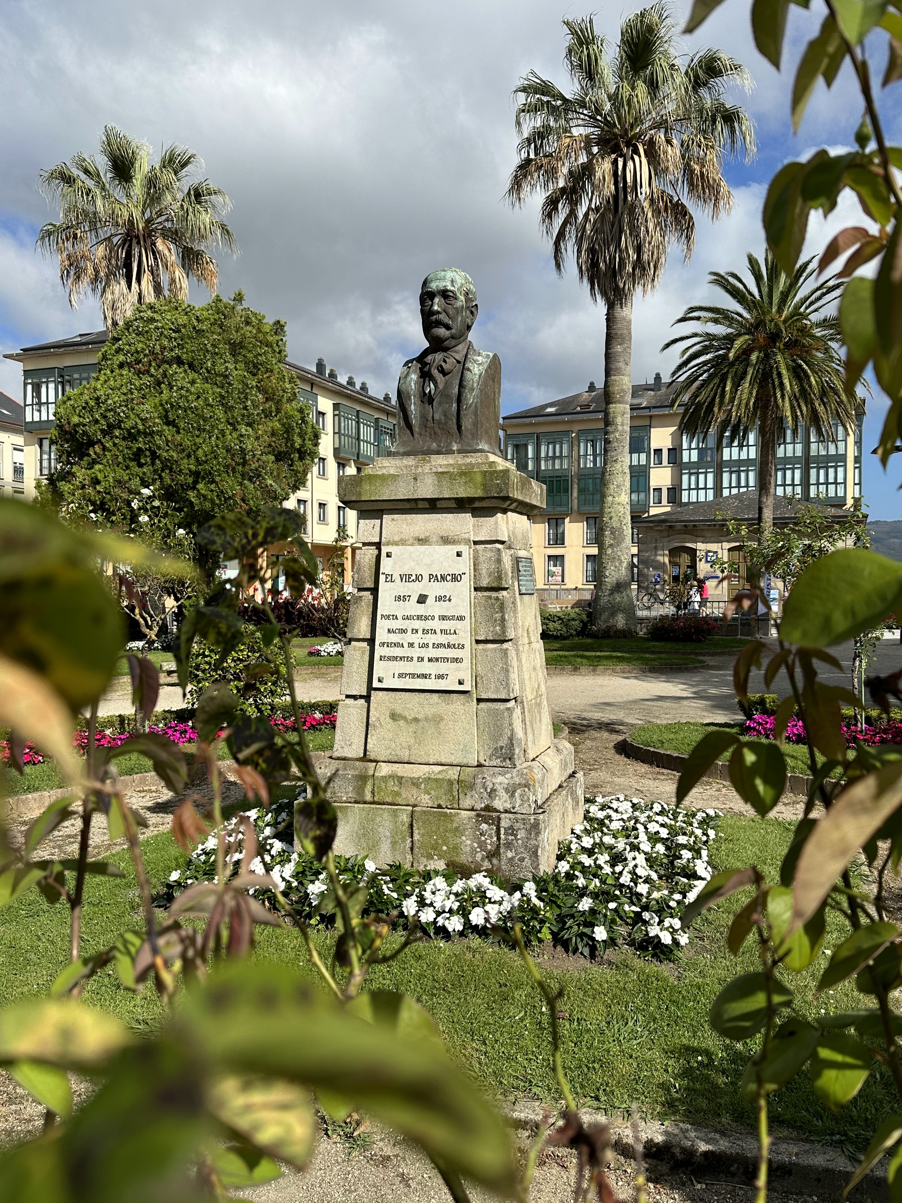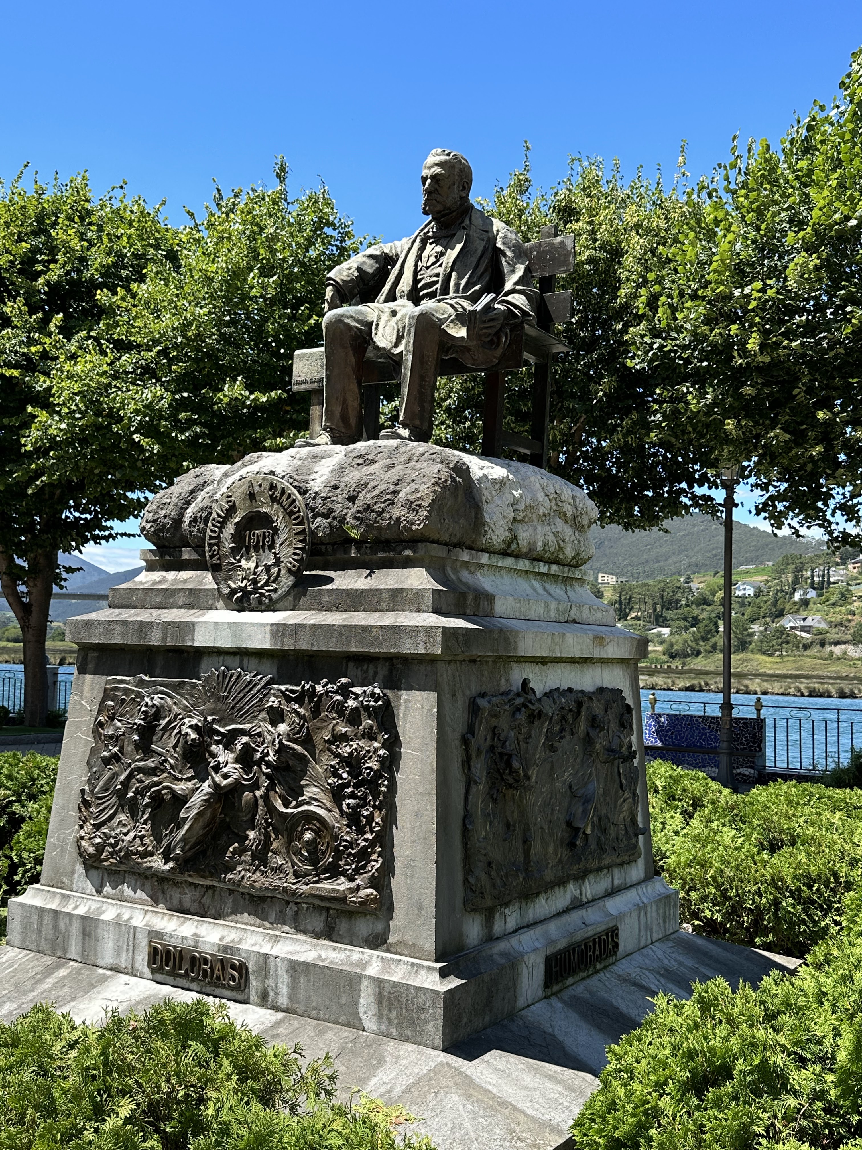 Bajamos al Parque Campoamor donde se encuentra el monumento homenaje a Ramón Campoamor, el célebre poeta nacido en Navia y al que un “pequeño monolito” aquí también lo acompaña con una placa que dice :