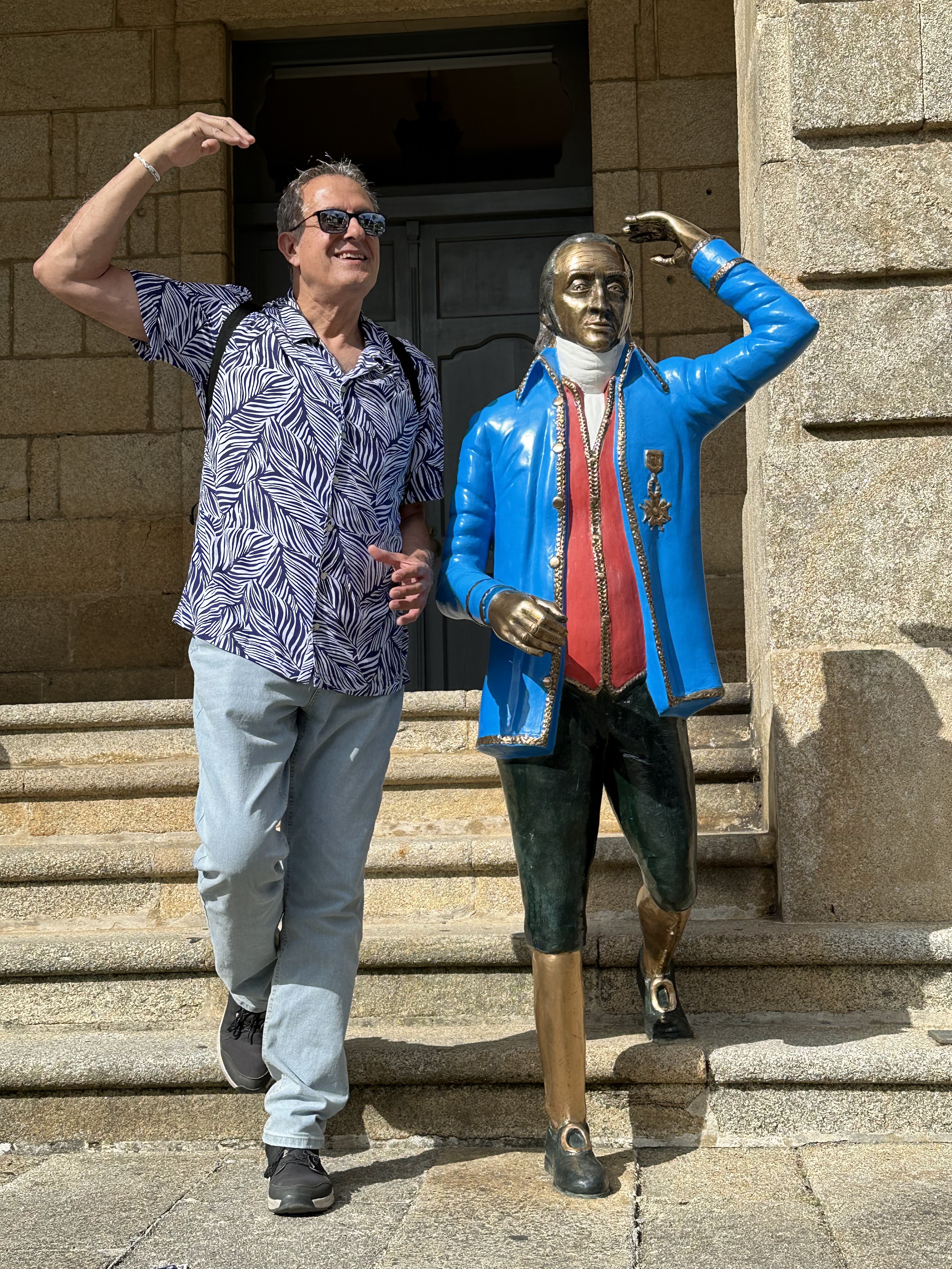 Siempre toca alguna “tontá” conmigo, y esta última foto pertenece la colorida escultura de César Lombera en el año 2004 y de la que rinde homenaje a Raimundo Ibáñez, “marqués de Sargadelos”.