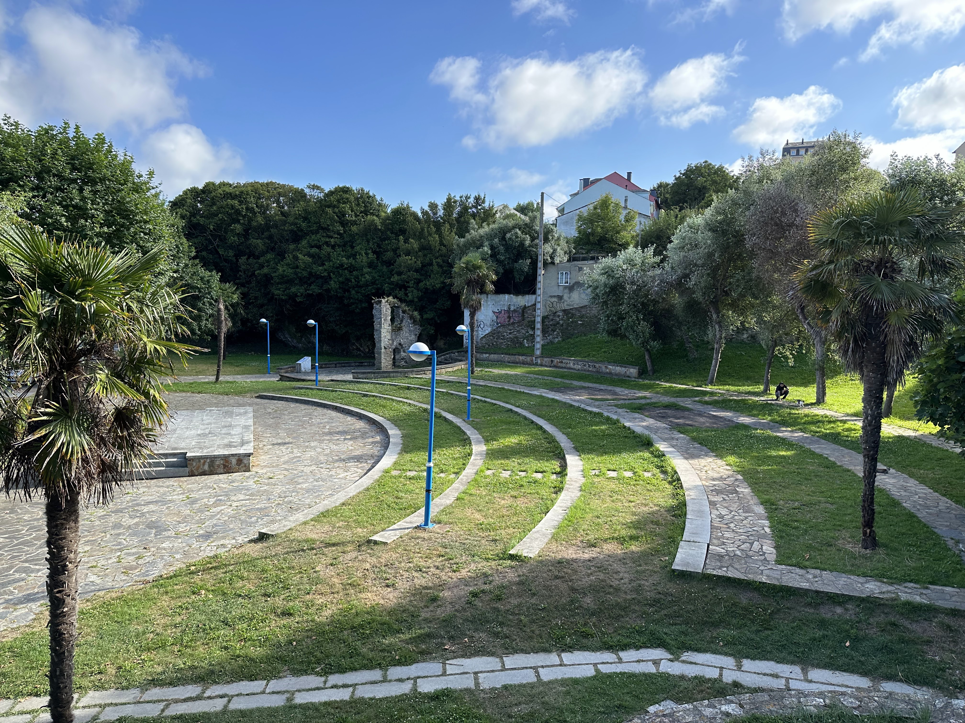 Bajamos andando hasta el Auditorio de Cabanela; un espacio verde que acoge espectáculos al aire libre y construido sobre los restos del pazo del Obispo Paio Cebeira. Algunos amigos y conocidos que han estado este mes de Agosto por allí, han visto algún concierto en ese espacio, parece que sobre todo los miércoles.