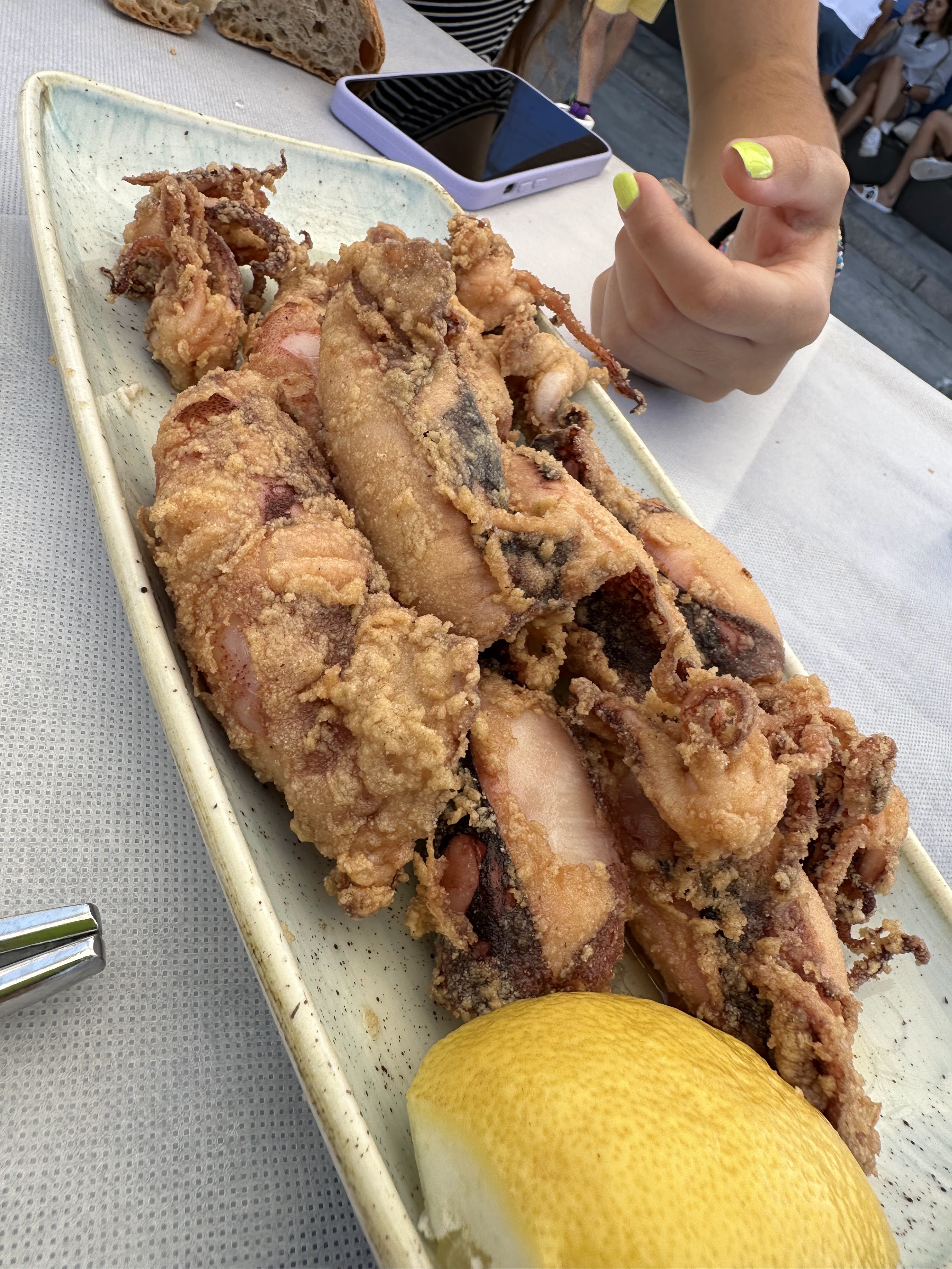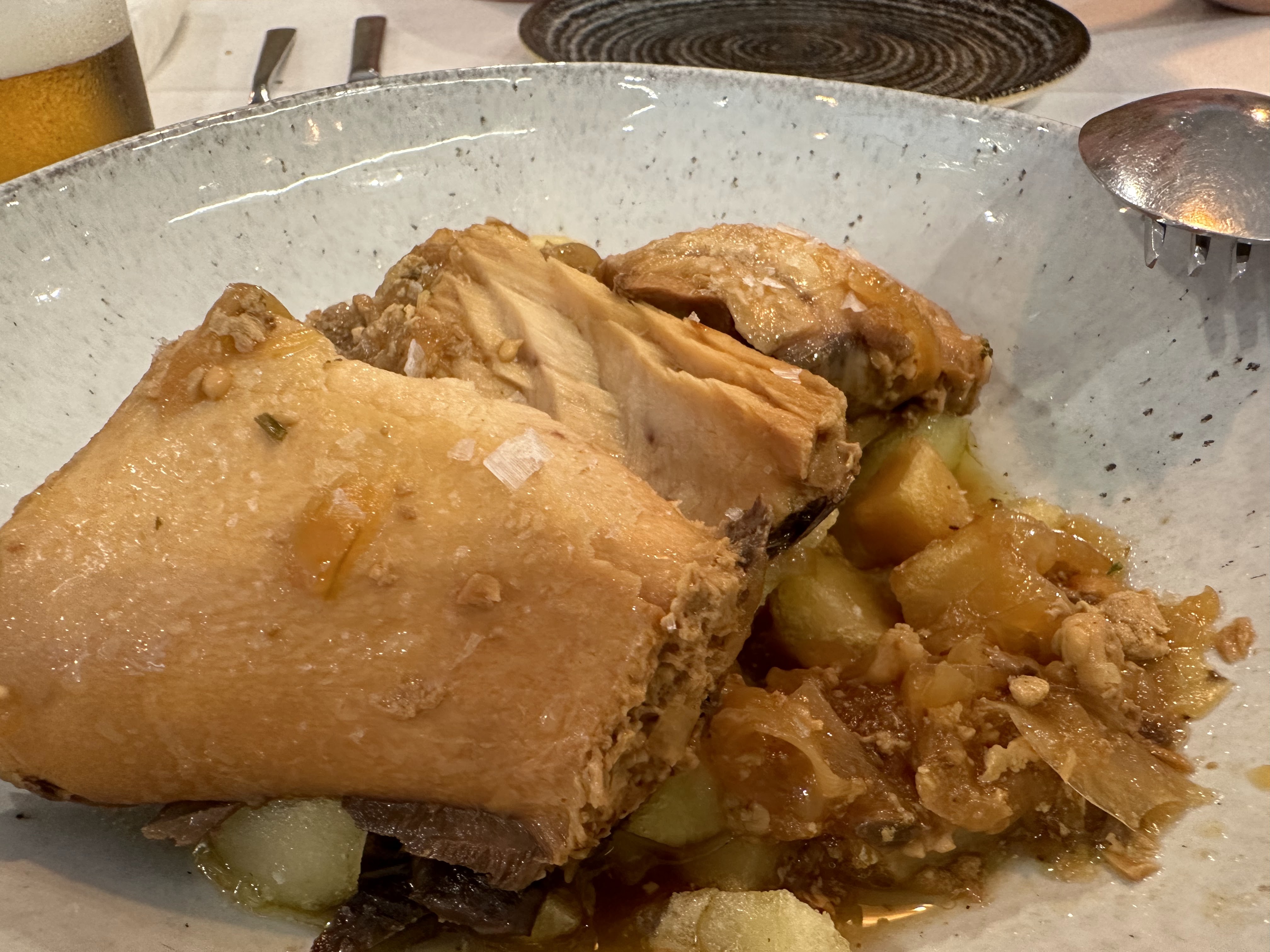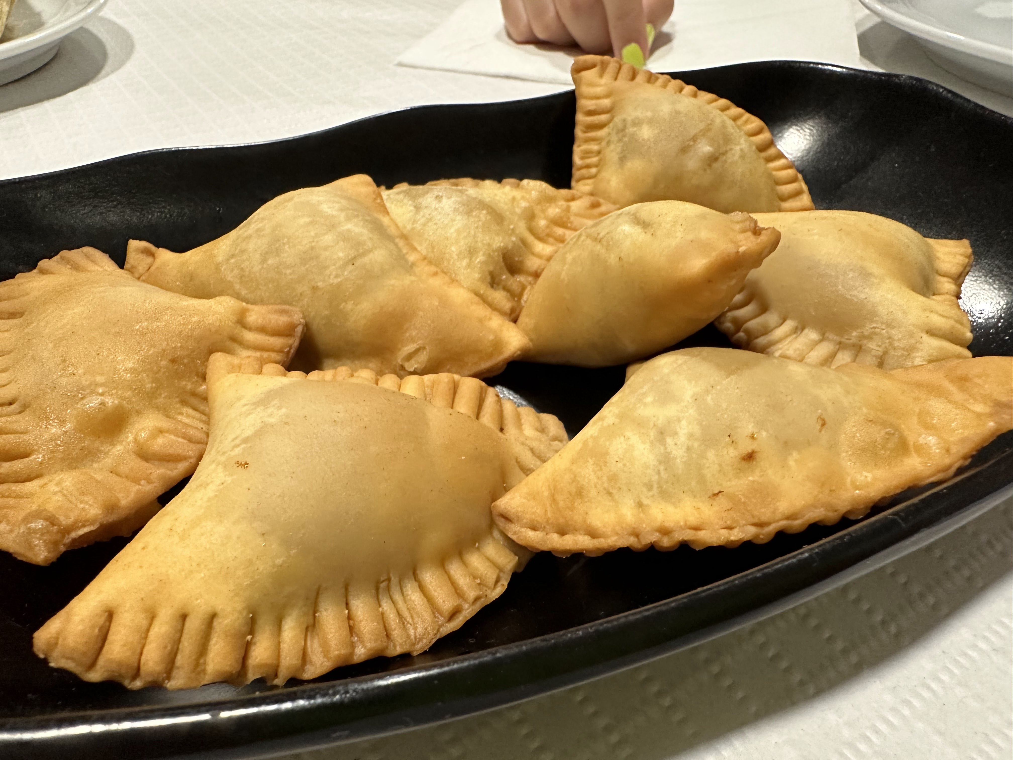 Tomamos unas empanadillas de atún también famosas, como los chipirones encebollados; para finalizar pedimos un platico de lacón cocido.