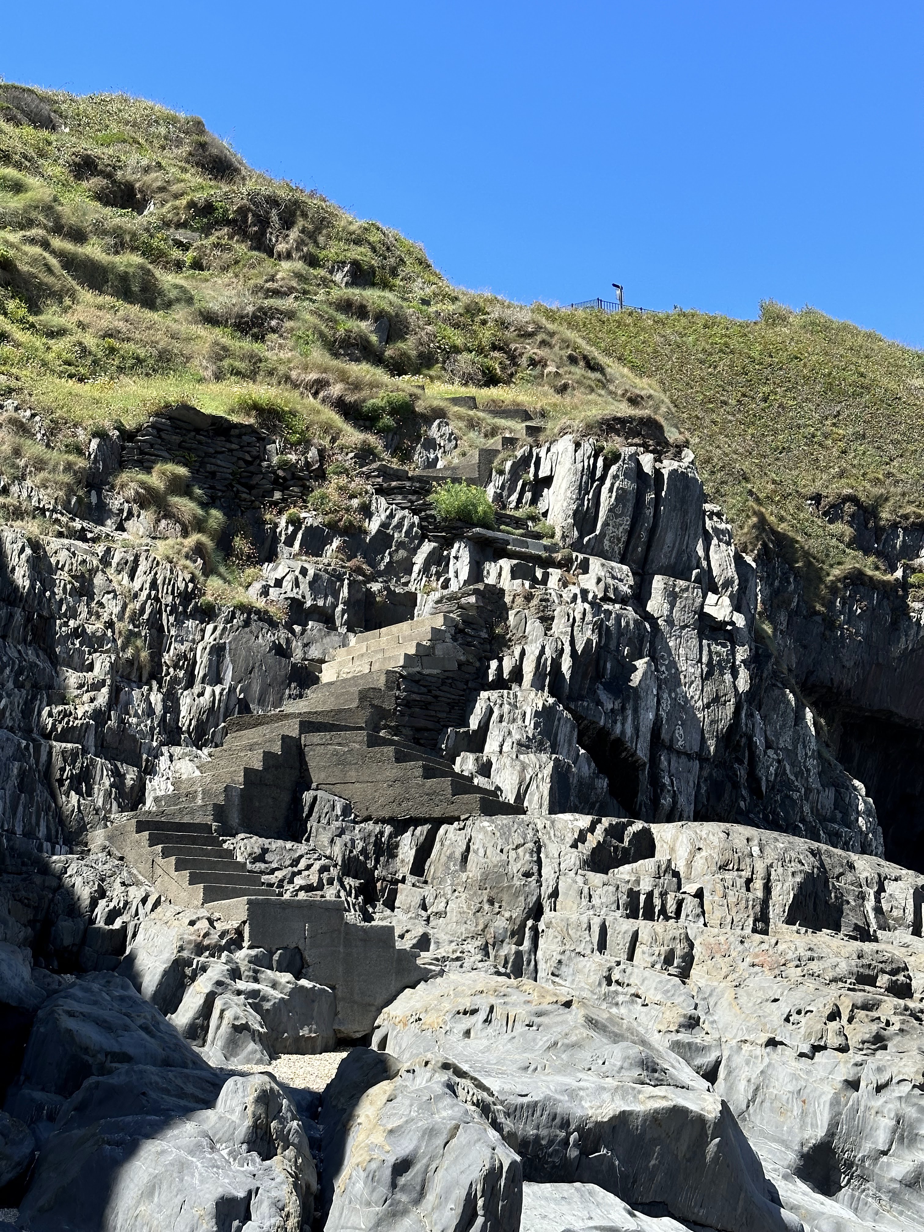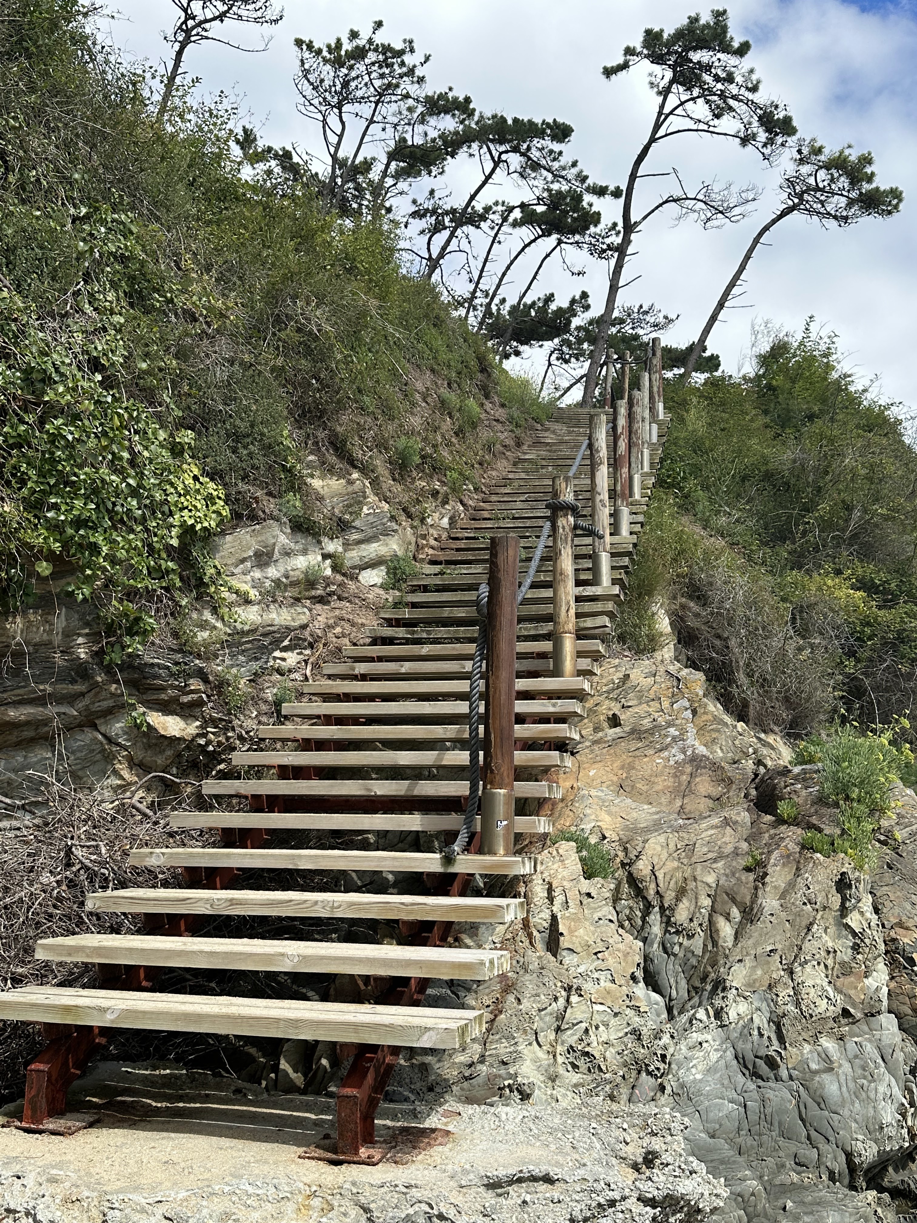 …una escalera desde la misma playa (veréis fotos en el siguiente bloque) lleva a la zona llamada “Aldea Entreplayas”.