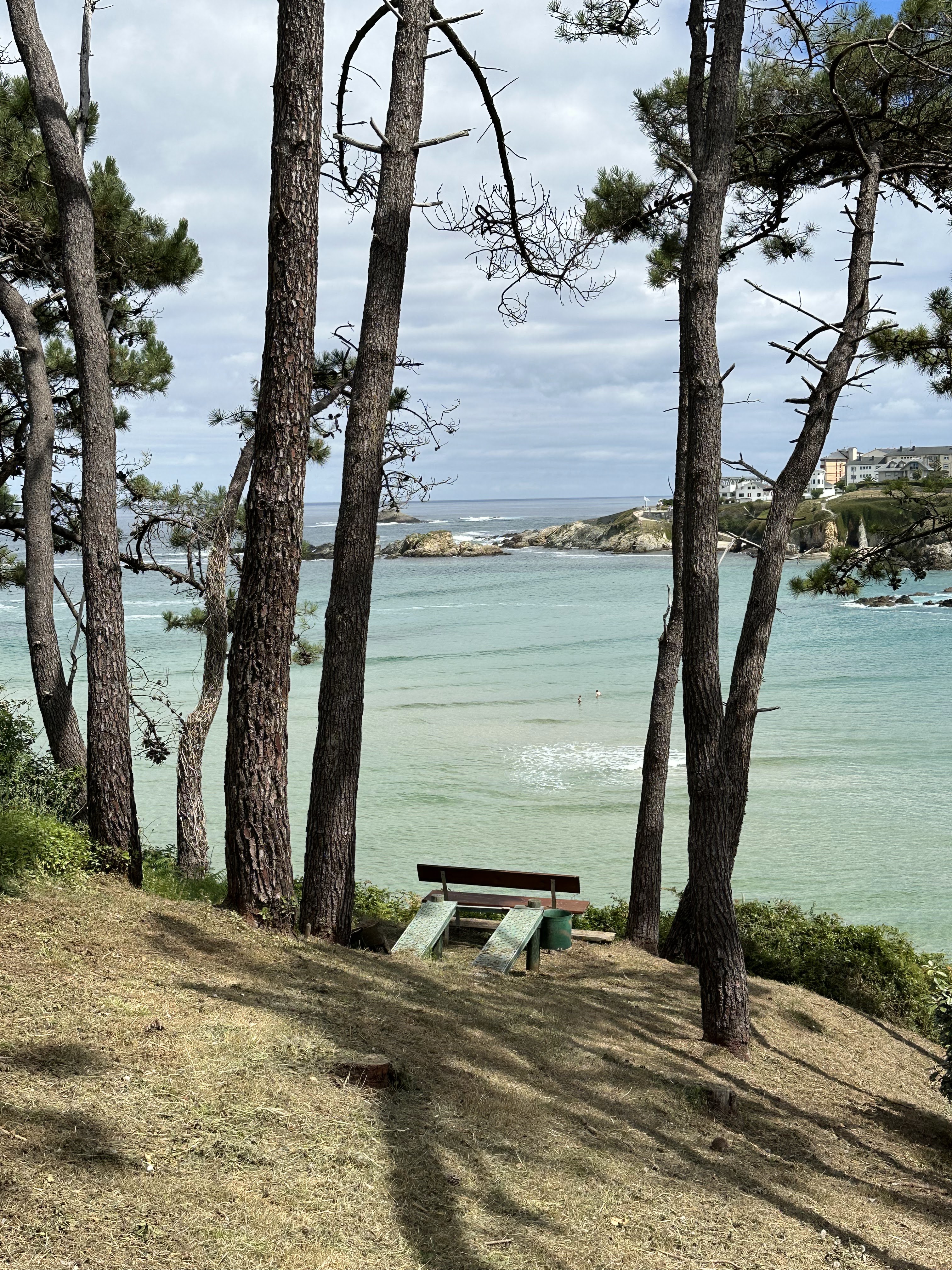 Esa zona como digo, arbolada, tiene un rincón maravilloso para descanso y vistas del mar, y al fondo el pueblo de Tapia de Casariego. Es un banco donde sentarse que denominan y denominé en mi Instagram como “el mejor banco de Tapia”.