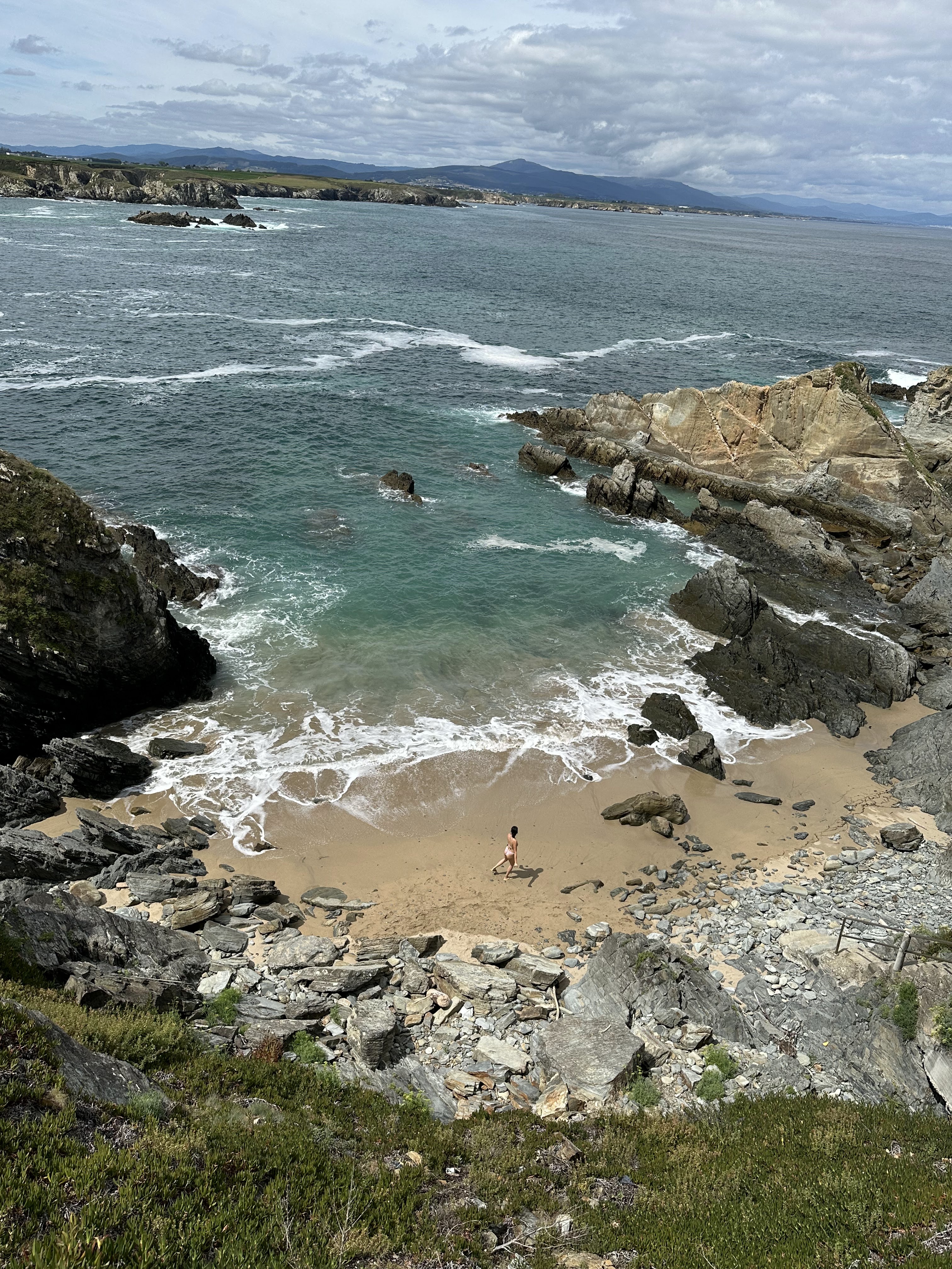 Y entre pequeñas calicas se llega también a la playa del Aguileiro (o Anguileiro); y decidimos bajar a ésta pero volvimos a por el coche porque nos pillaba lejos e íbamos sin toallas, sólo fue un pequeño reconocimiento del sitio.