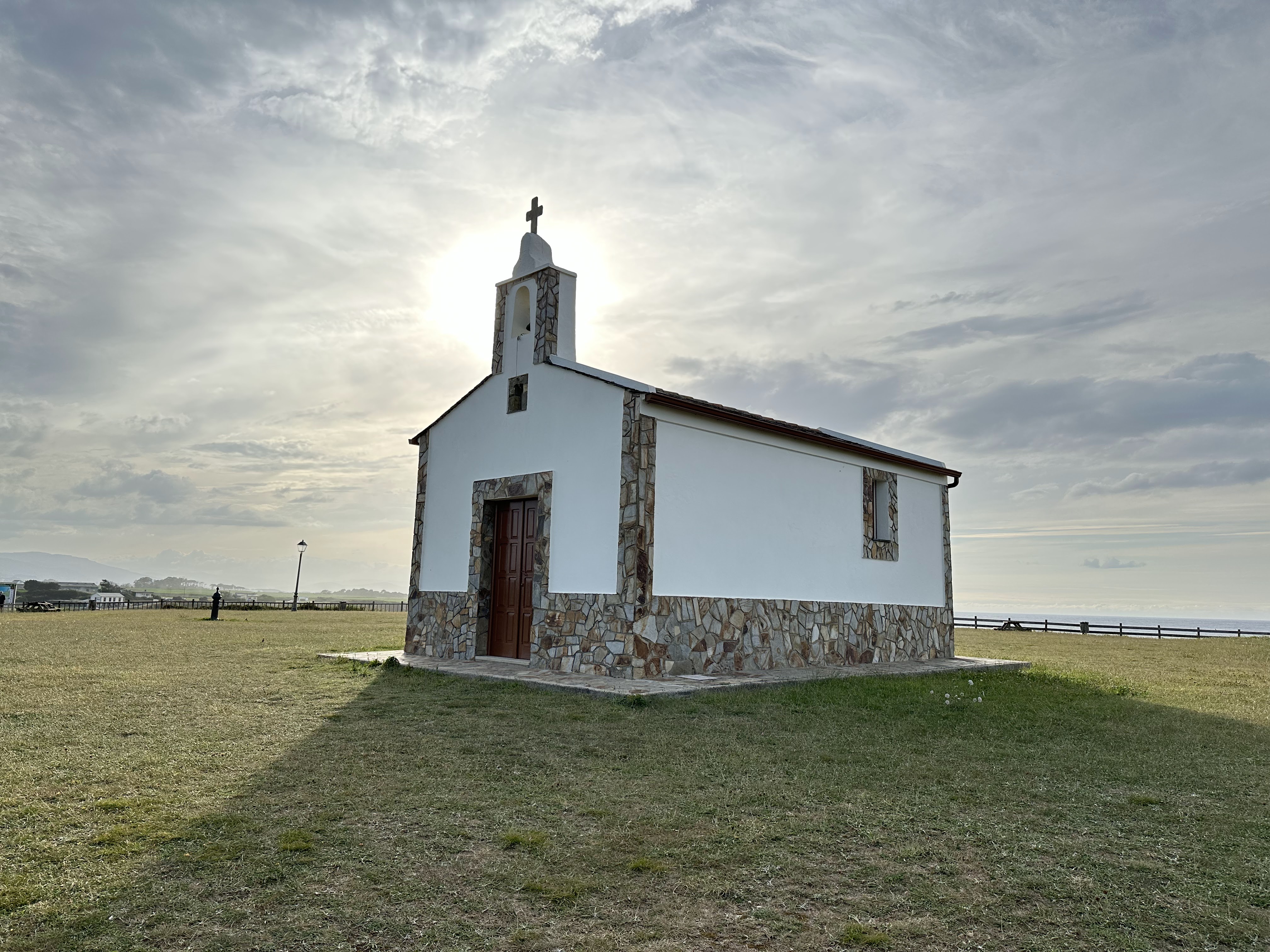 Se puede ver a parte del Faro y bonitas vistas del mar y el verde que lo acompaña aquí en Asturias (también en Galicia y Cantabria), la Capilla de S.Agustín de Ortiguera.