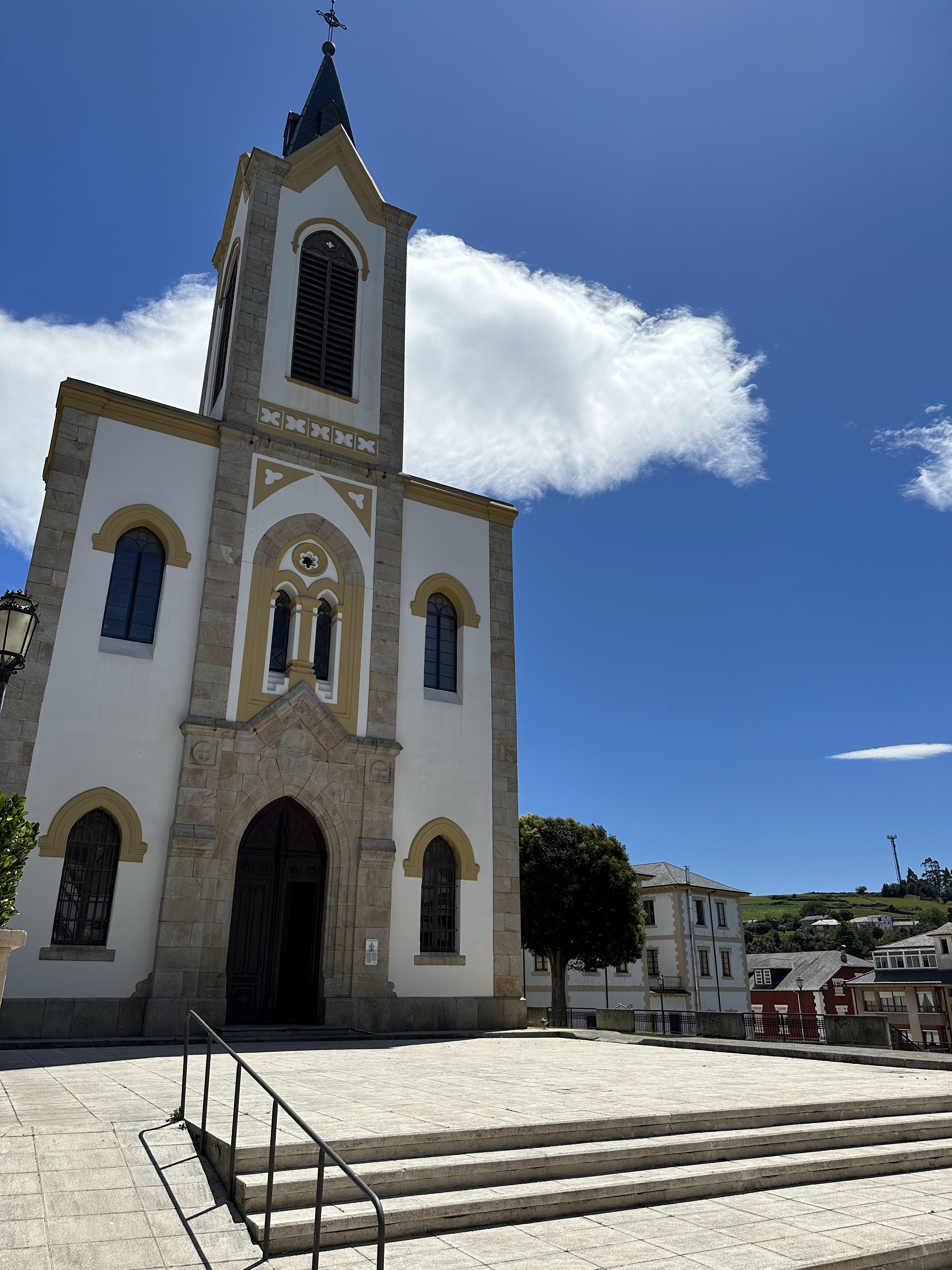 “Parece recién salida de un cuadro. Es tan joven que a sus muros no les ha dado tiempo a guardar la historia de los años, pero no por eso es menos interesante. A juego con el entorno que la protege, Santa María de la Barca demuestra la imponente belleza de Navia. Su cuerpo de una sola nave se confunde entre el blanco inmaculado y el dorado poderoso que la acompañan. Para entender bien cómo es esta iglesia es necesario conocer el entorno. Situada en pleno casco histórico, en la plaza de Abastos, continúa el estilo de las casitas del casco histórico, unas que vistas desde lejos parecen de juguete. Un estilo que nos recuerda al holandés, a los pueblos con encanto como Brujas. Sin embargo, aunque similar, Navia se crece ante el suyo propio, también colorido y al que el ayuntamiento contribuye con su fachada en rojos y grises, típicamente indianos. Aunque es complicado encajarla a simple vista en una corriente artística, Santa María de la Barca respira neogótico por los cuatro costados, lo que le confiere un matiz de imponencia en las tres naves que forman la cruz latina y el amplísimo crucero. Un estilo que además no es casual ya que ella es la sustituta de la iglesia medieval gótica que se encontraba antes instalada en su lugar.”