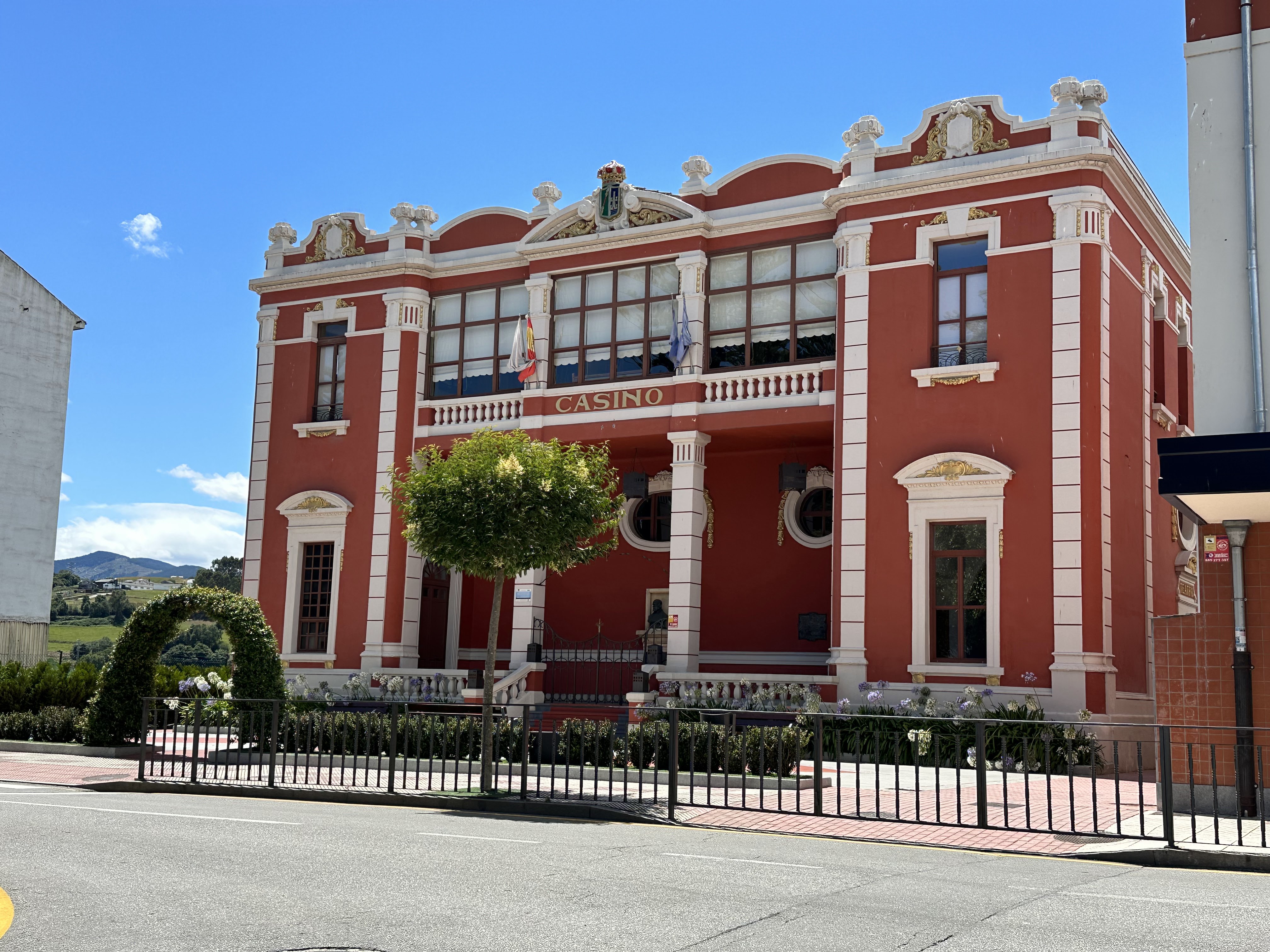 Desde allí hay unos 2,5km.en poco menos de 5/6 min.aparcamos en la calle Prolong. Calvo Sotelo, junto al Palacio Arias Hotel y Aptos. (indiano) y frente al Casino y Cine Fantasio que están juntos; os pongo fotos de éstos en el siguiente bloque más abajo.