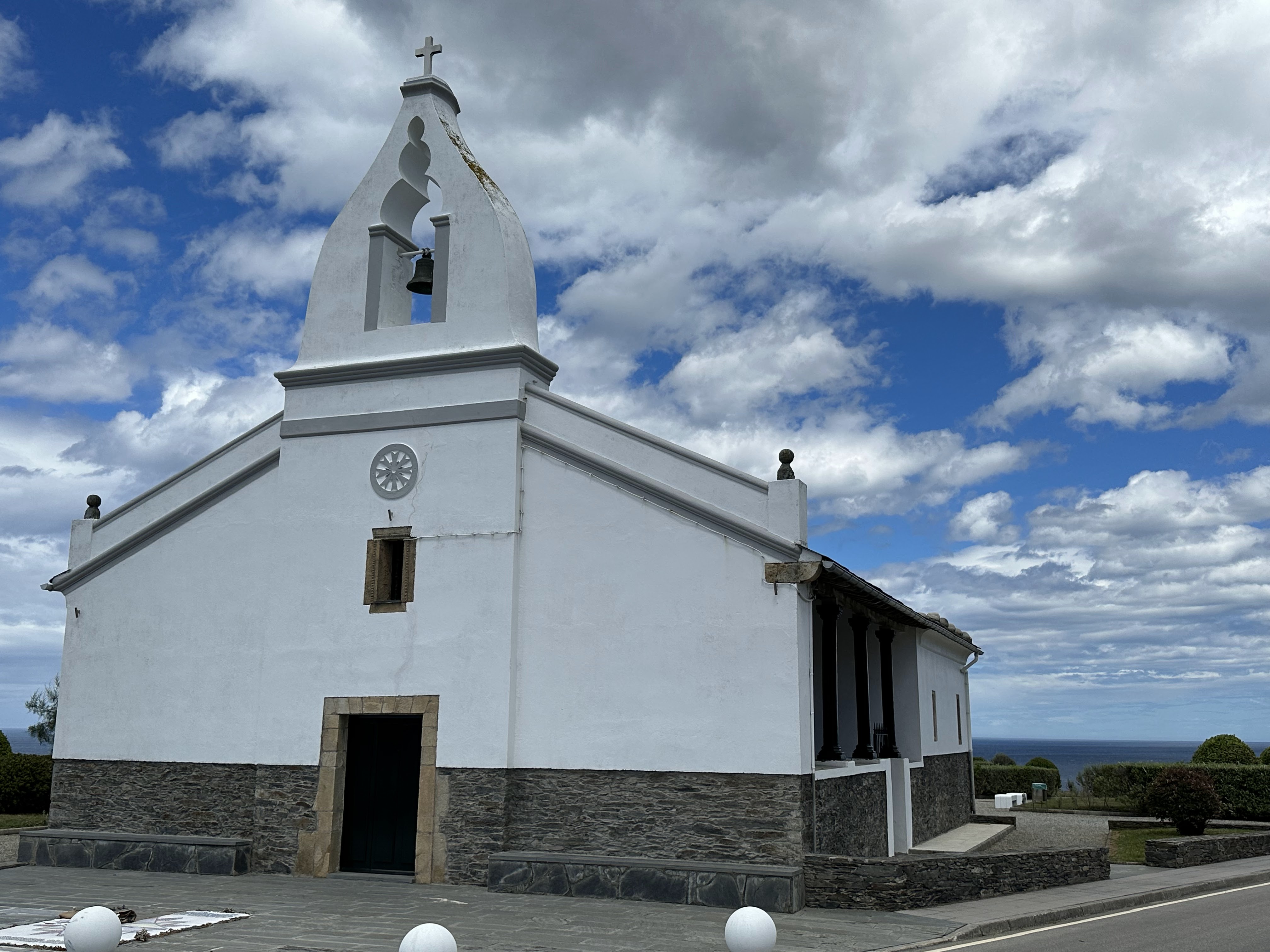 “Es una pequeña ermita situada en el Cabo de San Agustín, junto al faro, fue fundada por el gremio de pescadores del puerto de Ortiguera para dar cobijo a la Virgen de la Caridad, patrona de su cofradía.