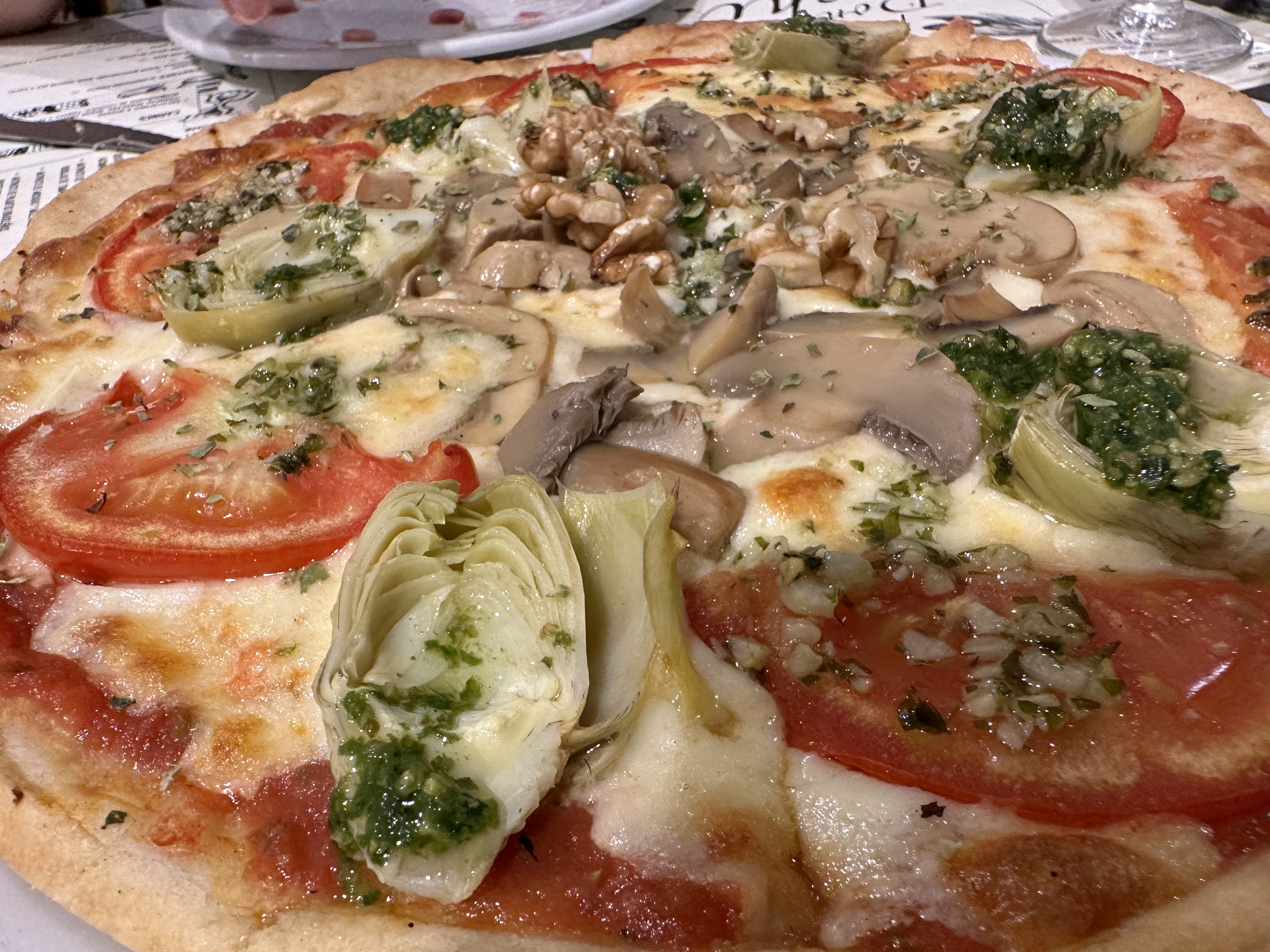 Las 2 pizzas medianas (Porteña y Mediterránea; 12,80 eur c.u.) pedidas no estaban malas; el tiramisú (4,80 eur), más normal.