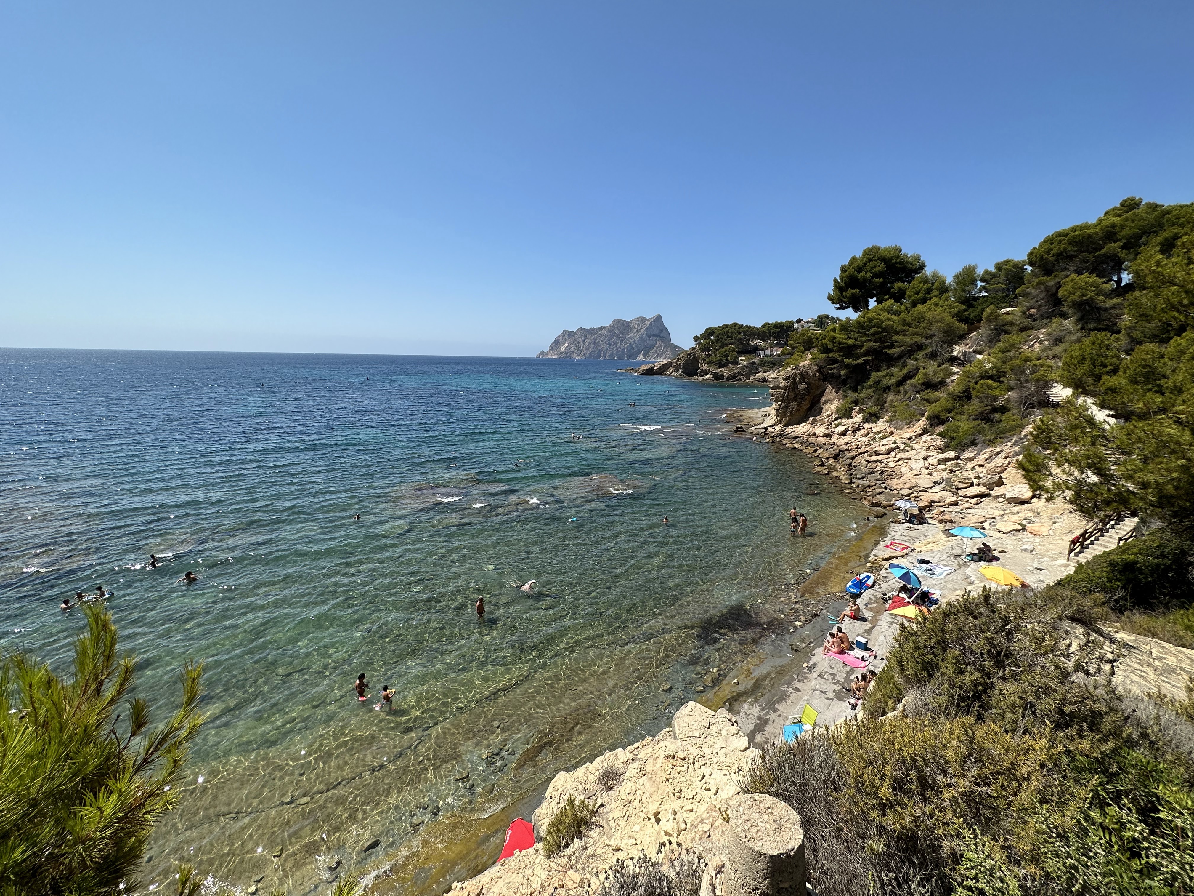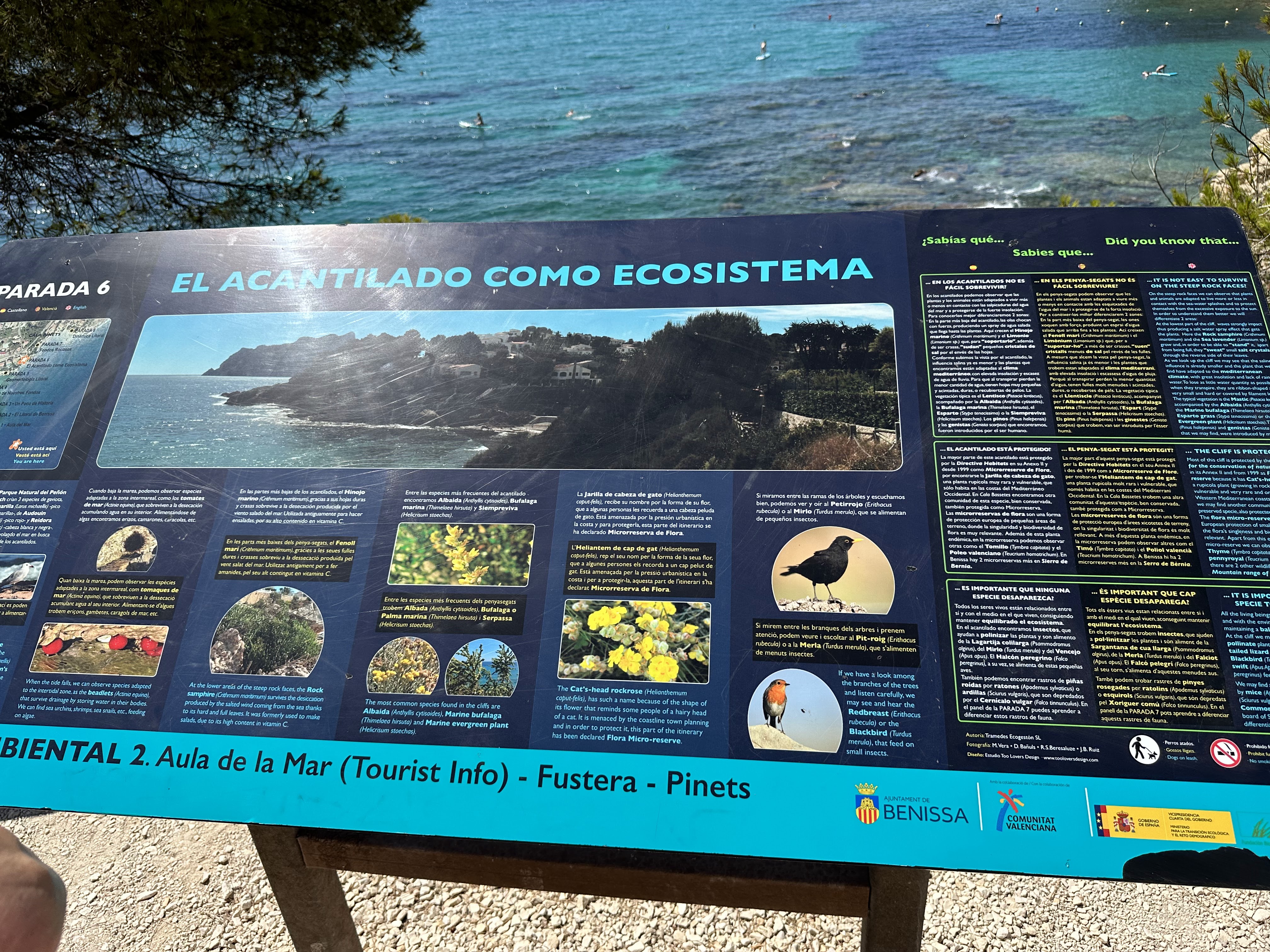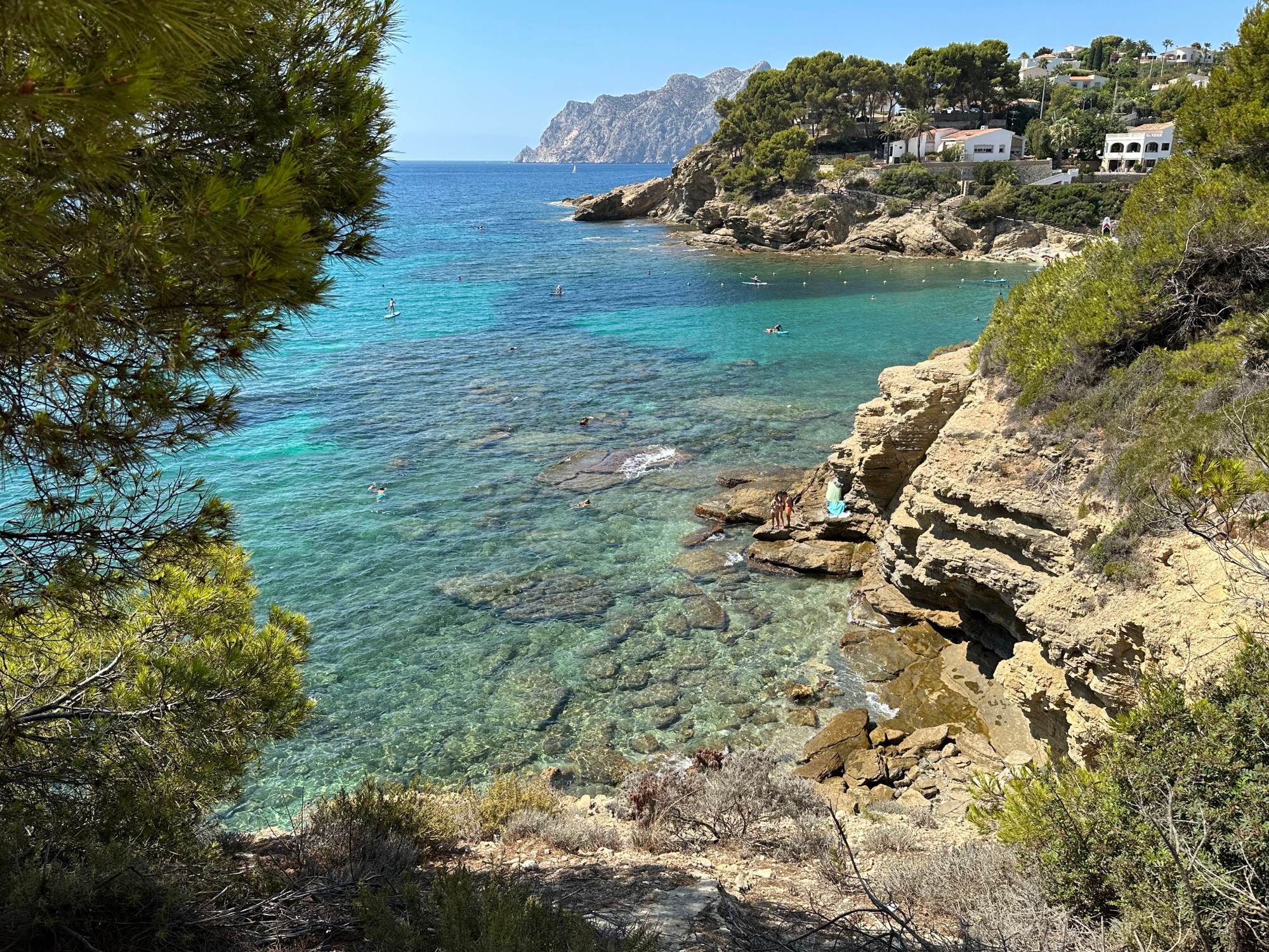 De vuelta en la Tourist Info Benissa Playa, recorremos el tramo hasta Cala Pinets (más recóndita y tranquila), pasando por la Cala de la Fustera ―la más accesible y cómoda del recorrido con todos los servicios, parking y restaurante―.