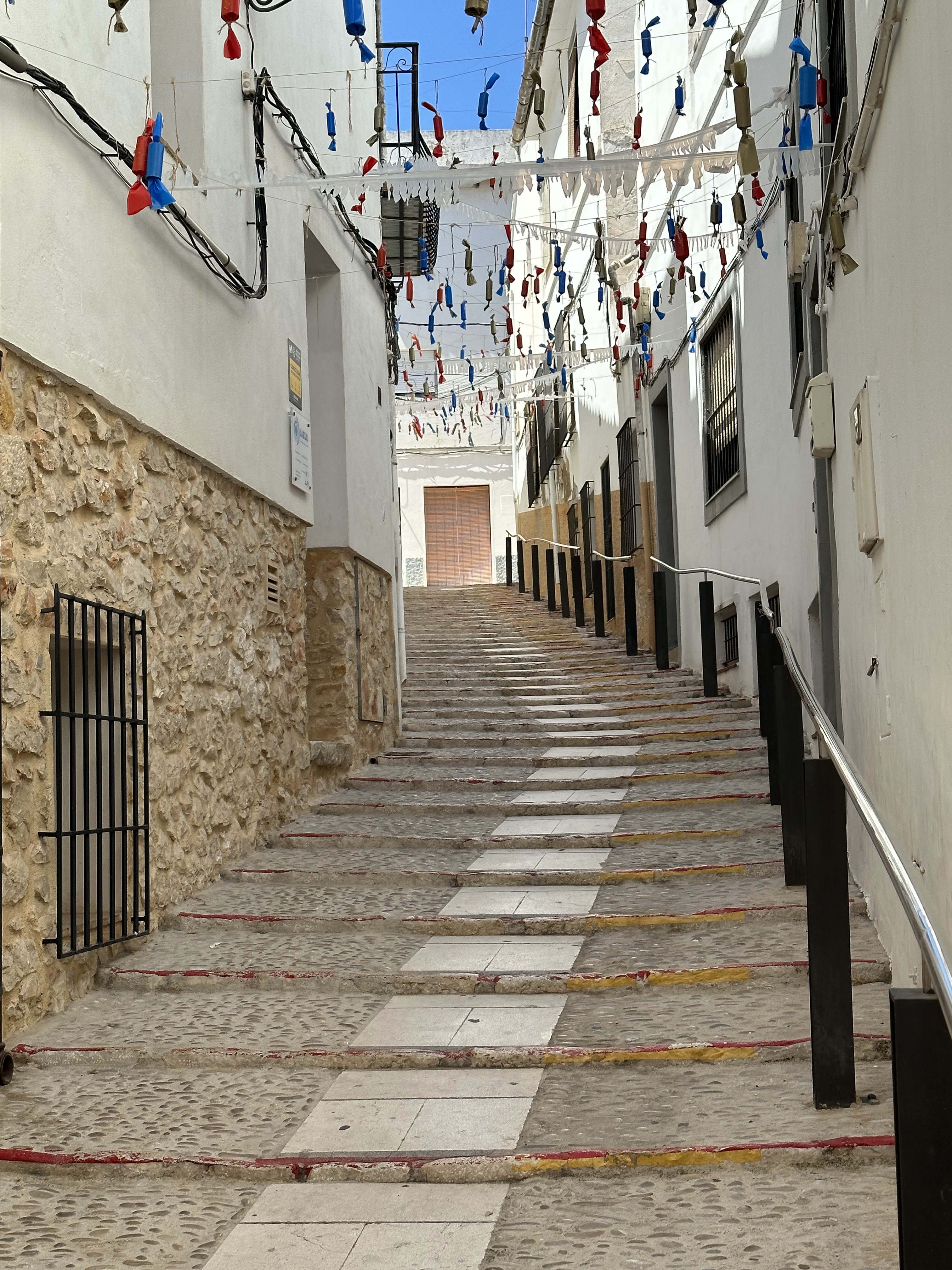 Nosotros paseamos por el Casco Antiguo y parece estaban o habían estado en fiestas, al menos en esa primera calle (Martir Padre Pedro -escalinatas-), con petardos en lo alto ???