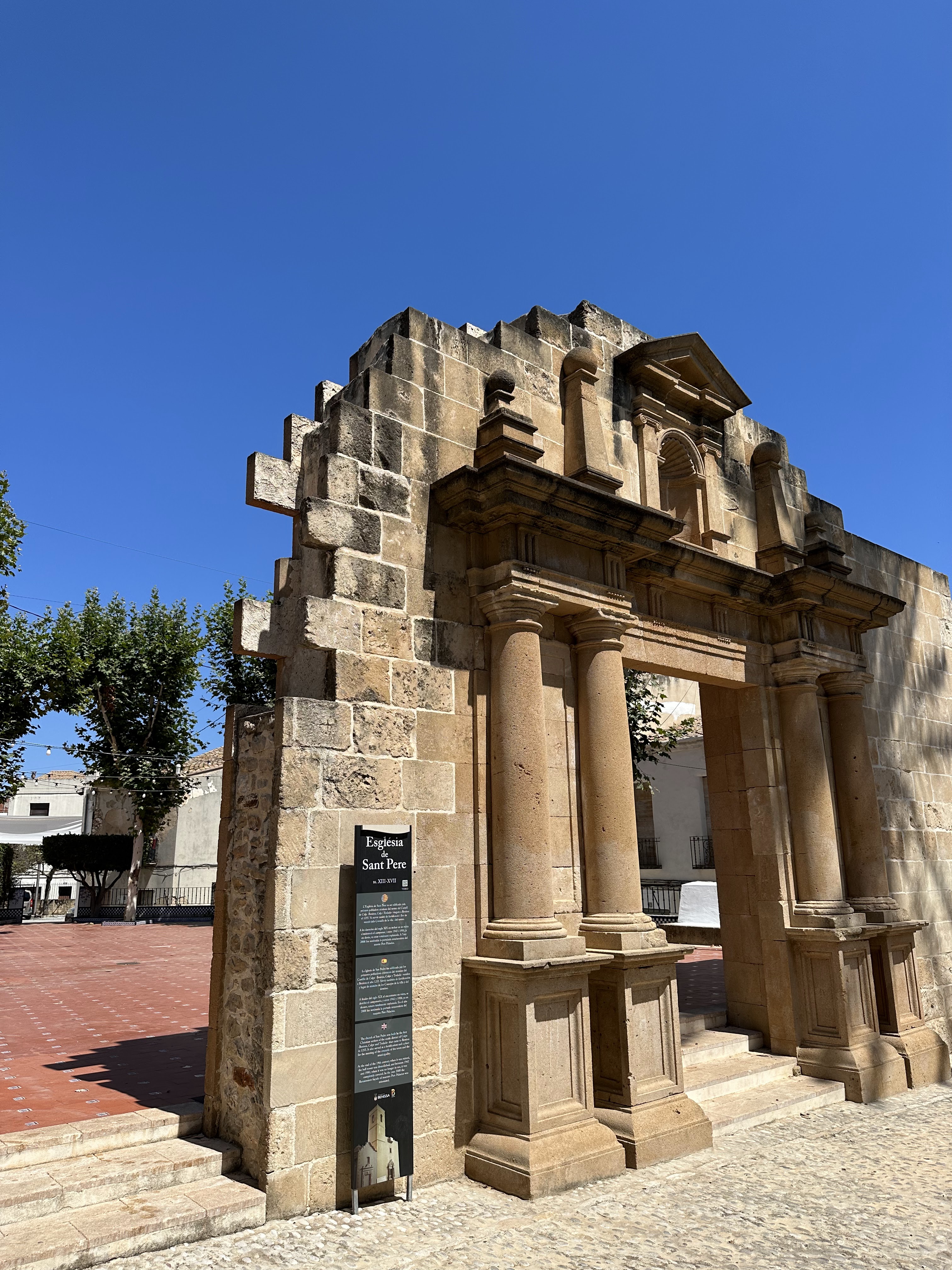 «Es uno de los rincones más bellos e importantes de Benissa: una plaza recoleta cuyo uso está destinado a la realización de actos culturales. Antiguamente, aquí se encontraba la iglesia-fortaleza de San Pedro. Fue construida en el S. XVI para la celebración del culto cristiano, pero con funciones claramente defensivas debido a las frecuentes incursiones piratas que se producían durante ese período en todo el litoral mediterráneo.