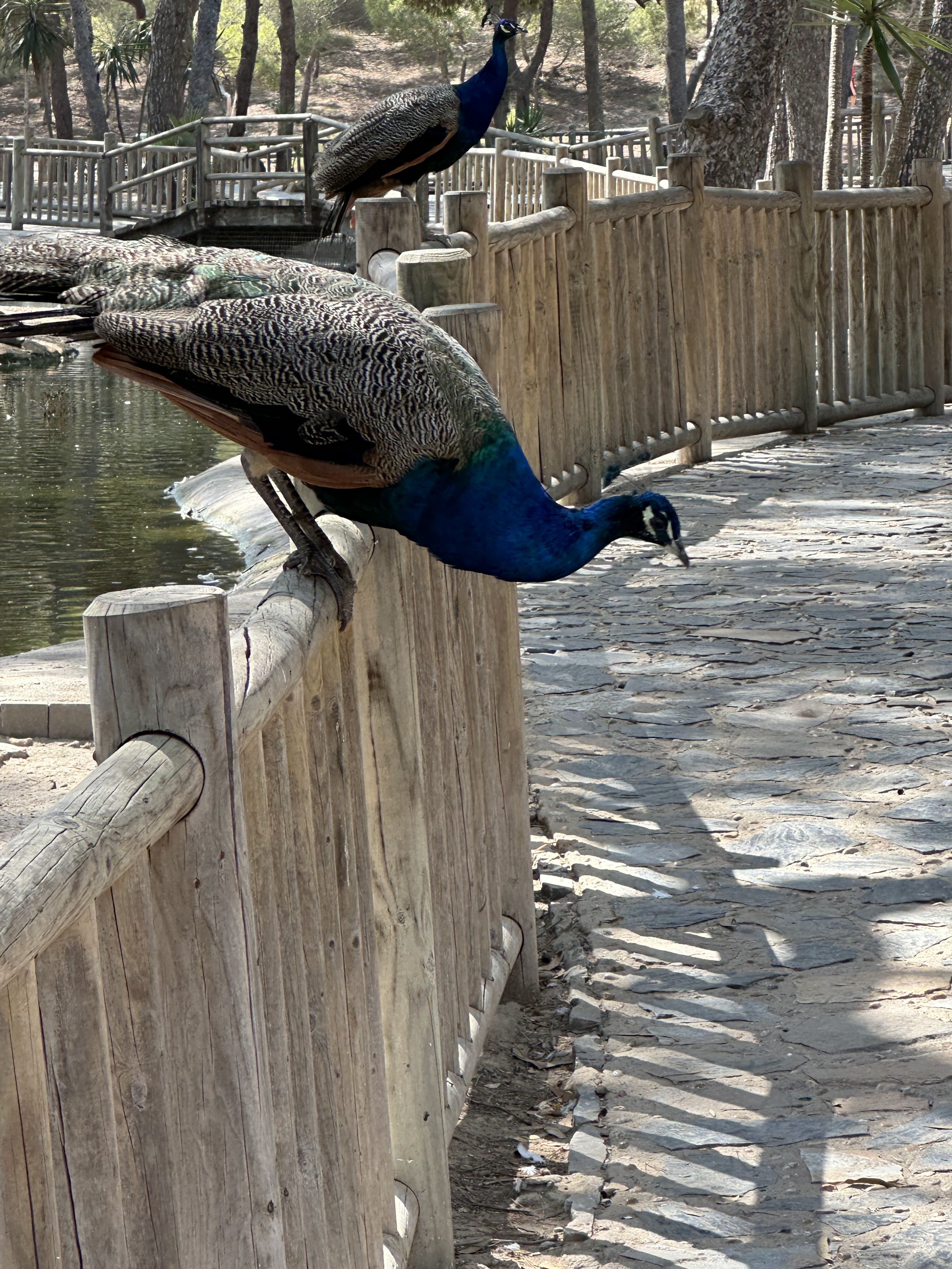 Pero en este rincón del parque sin duda lo que más llama la atención son los pavos reales. Hay unos cuantos y cuando expanden su cola es una auténtica belleza. ¿Sabías que lo hacen los machos para atraer a las hembras y proteger su territorio, amenazando con ello a los otros machos? Un precioso espectáculo que siempre sorprende.