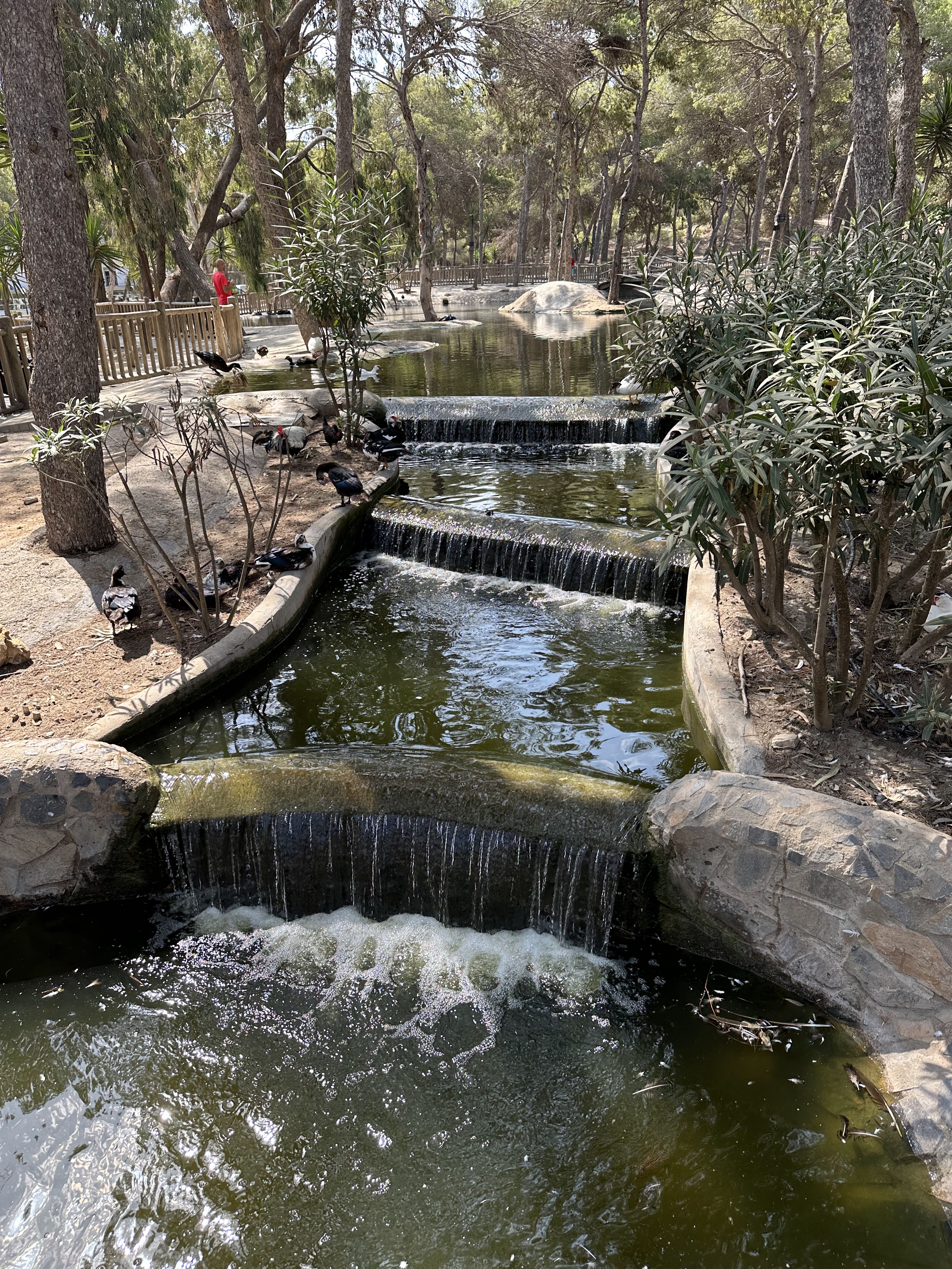 Otra de las cosas que ver en este parque es la cascada que termina en uno de los estanques. Pequeños saltos de agua que forman breves pozas donde los patos se refrescan.