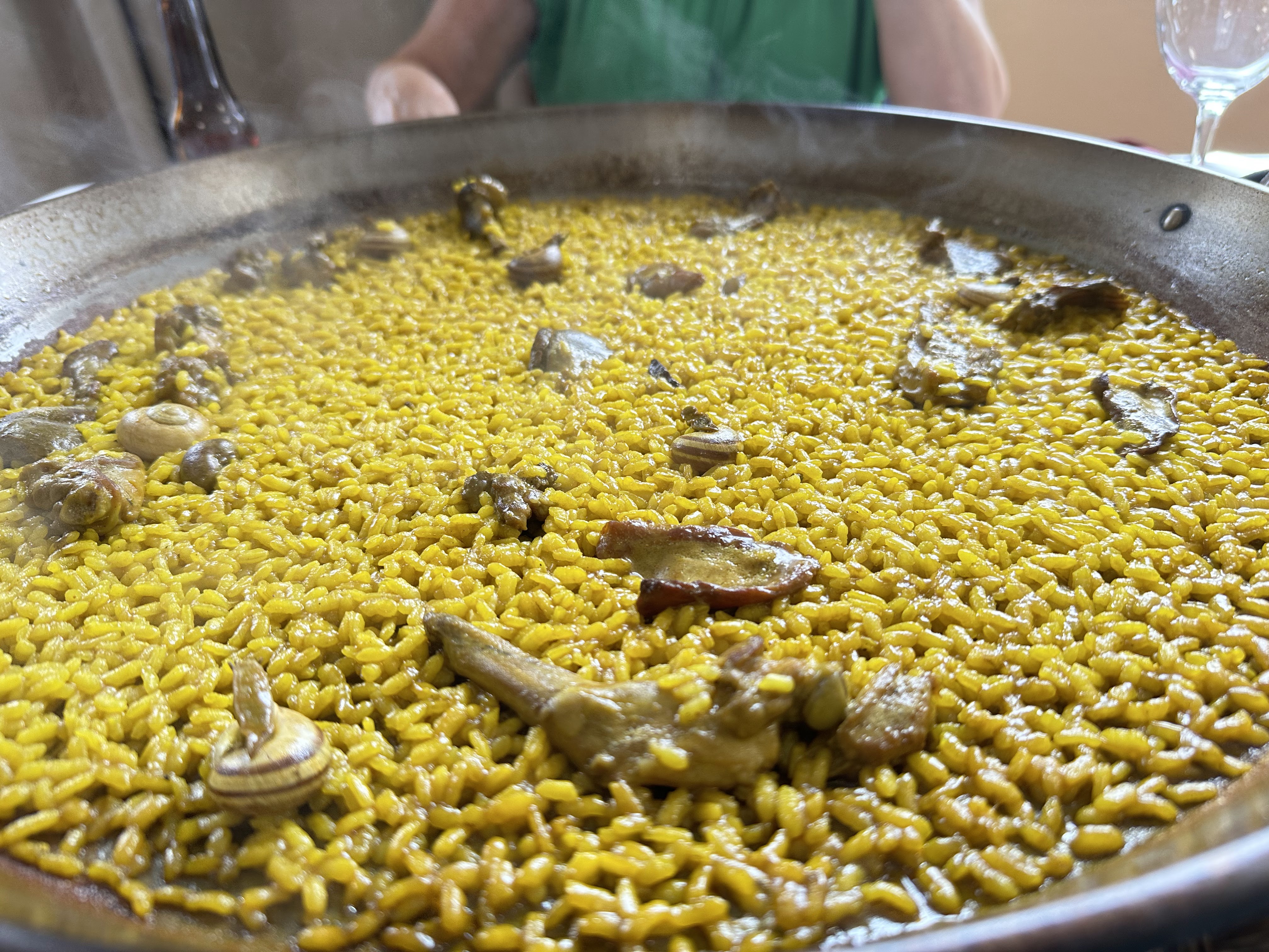 Puntuales ya estábamos en el sitio de la comida; como pone el enlace, tienen menú fijo y como principal un arroz con conejo y serranas (caracoles).