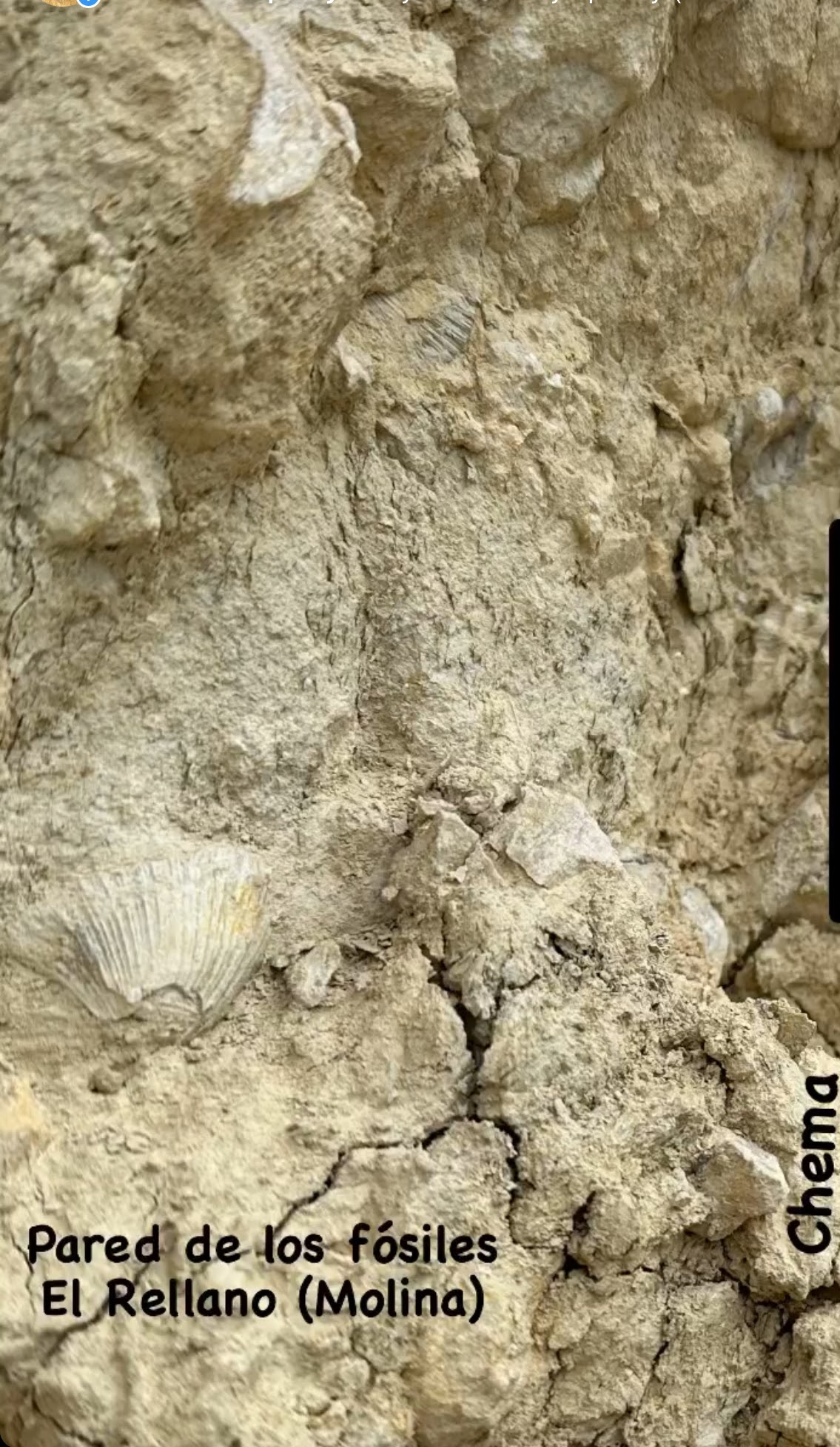Llegamos al citado Diseminado de El Rellano, que pertenece ya a Molina de Segura, y allí mismo se puede ver el Mirador del Rellano. Junto a éste y a la carretera se puede observar también la «pared de fósiles«. Es nuestra 2a. parada.