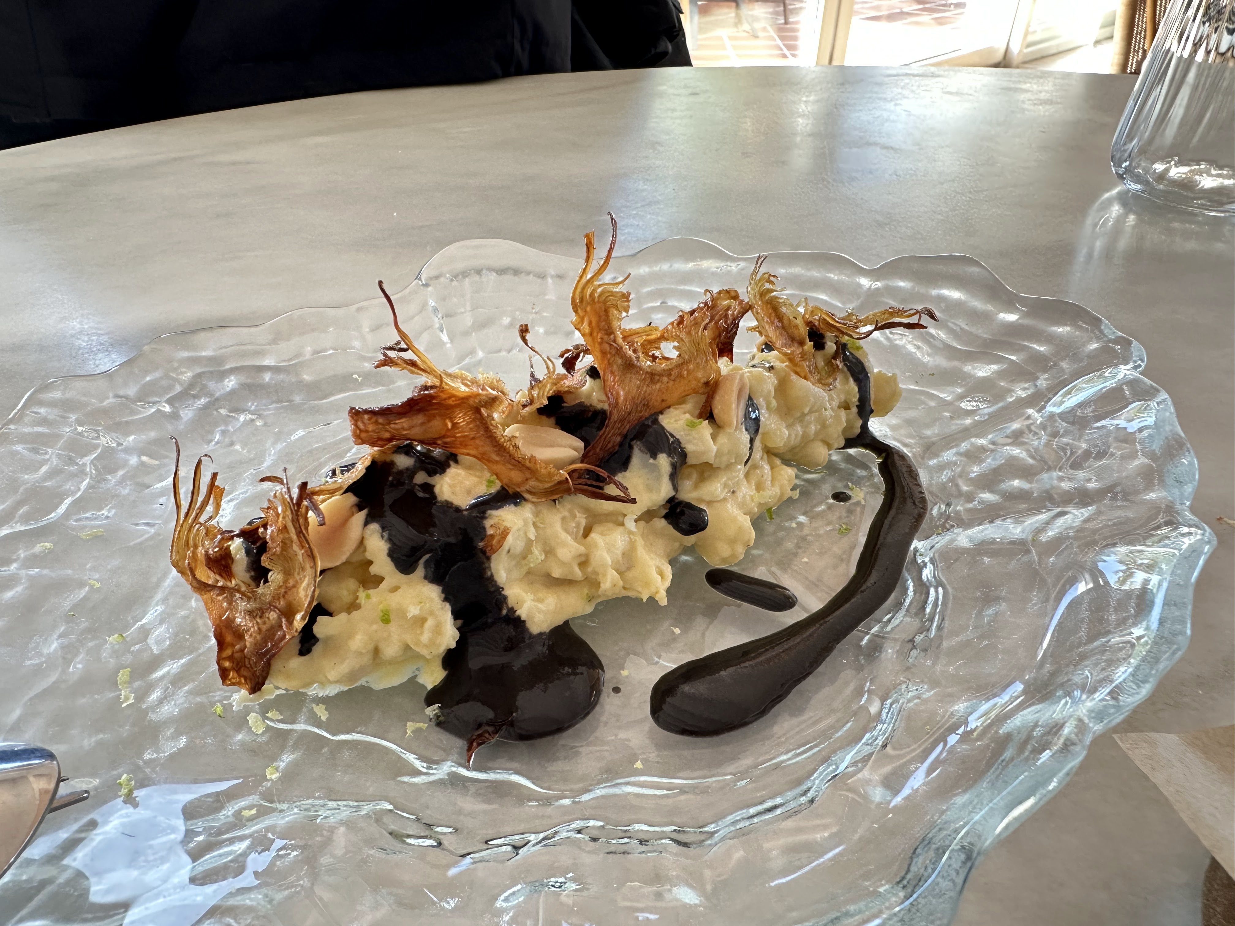 -Guacamole con gambita de Jávea al ajillo en suquet (con maicena)