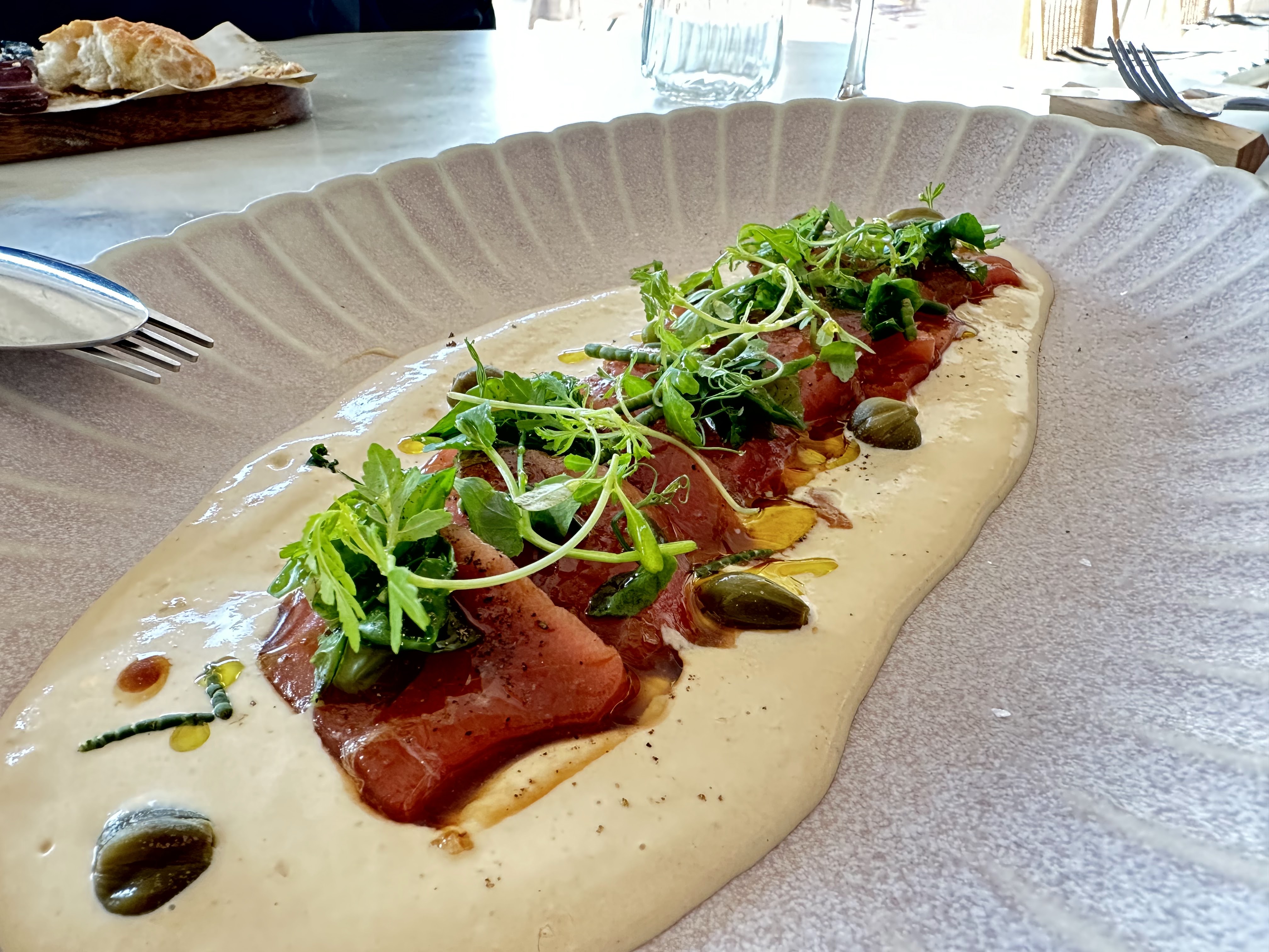 -Atún rojo marinado en salsa teriyaki y salsa tonnatta (de vitelo tonnatto)