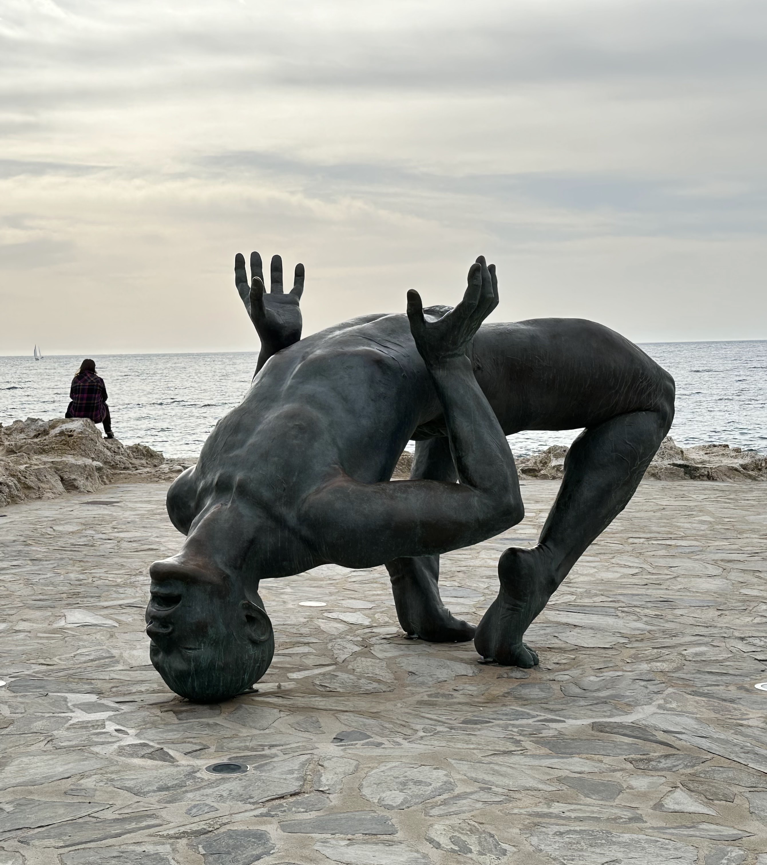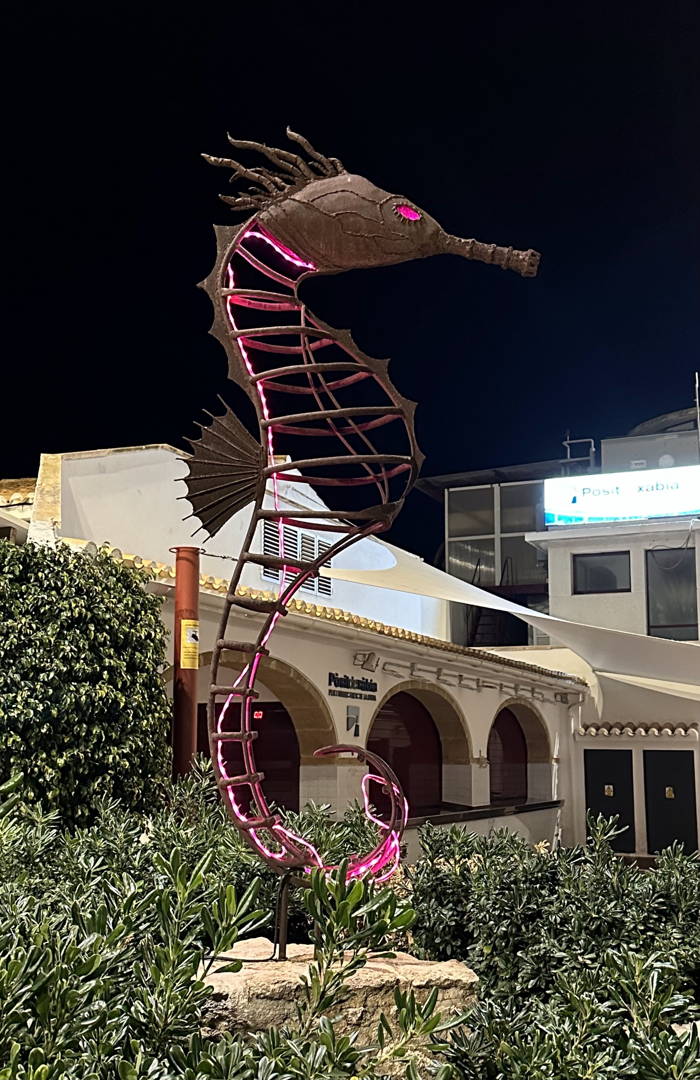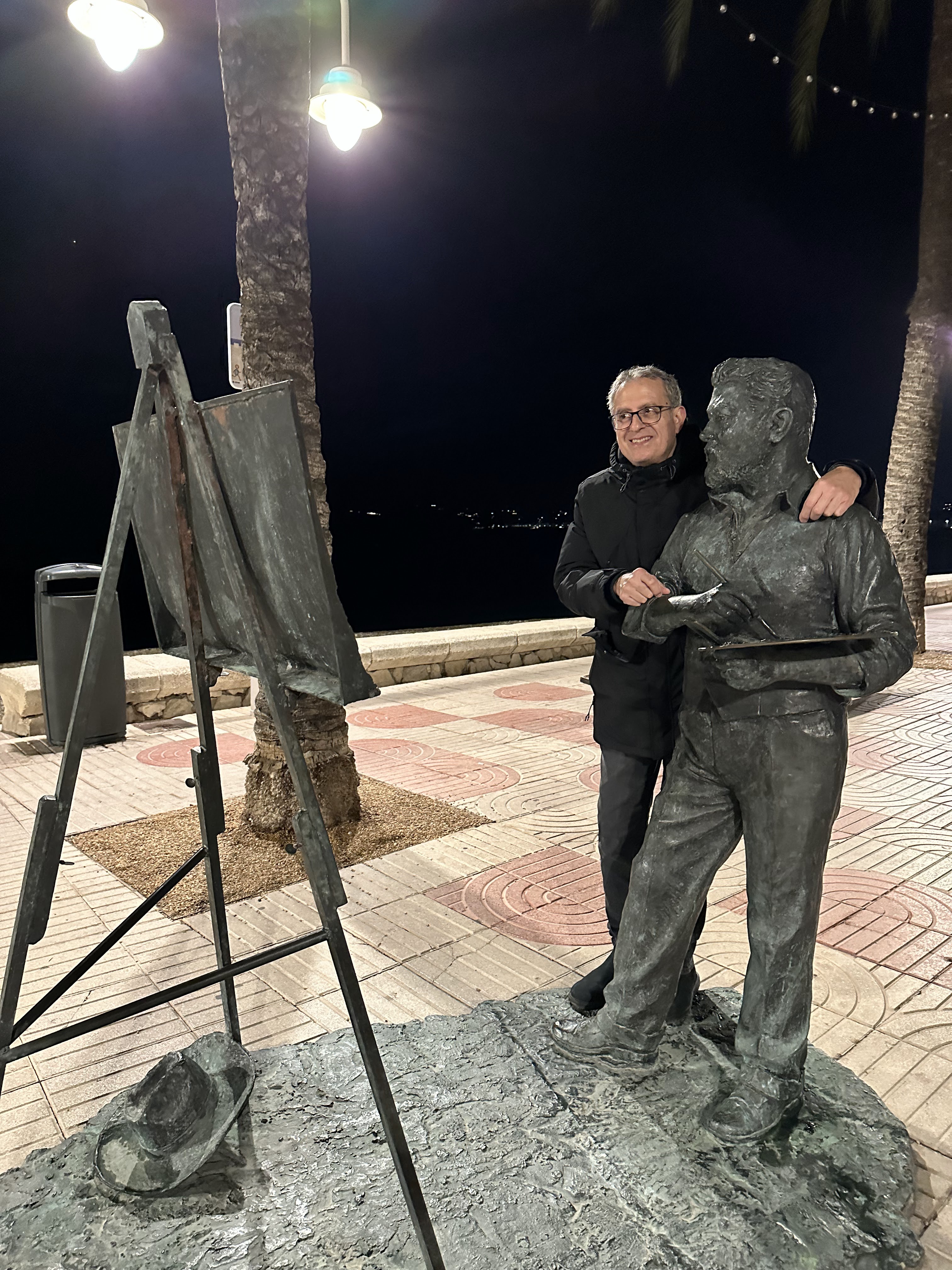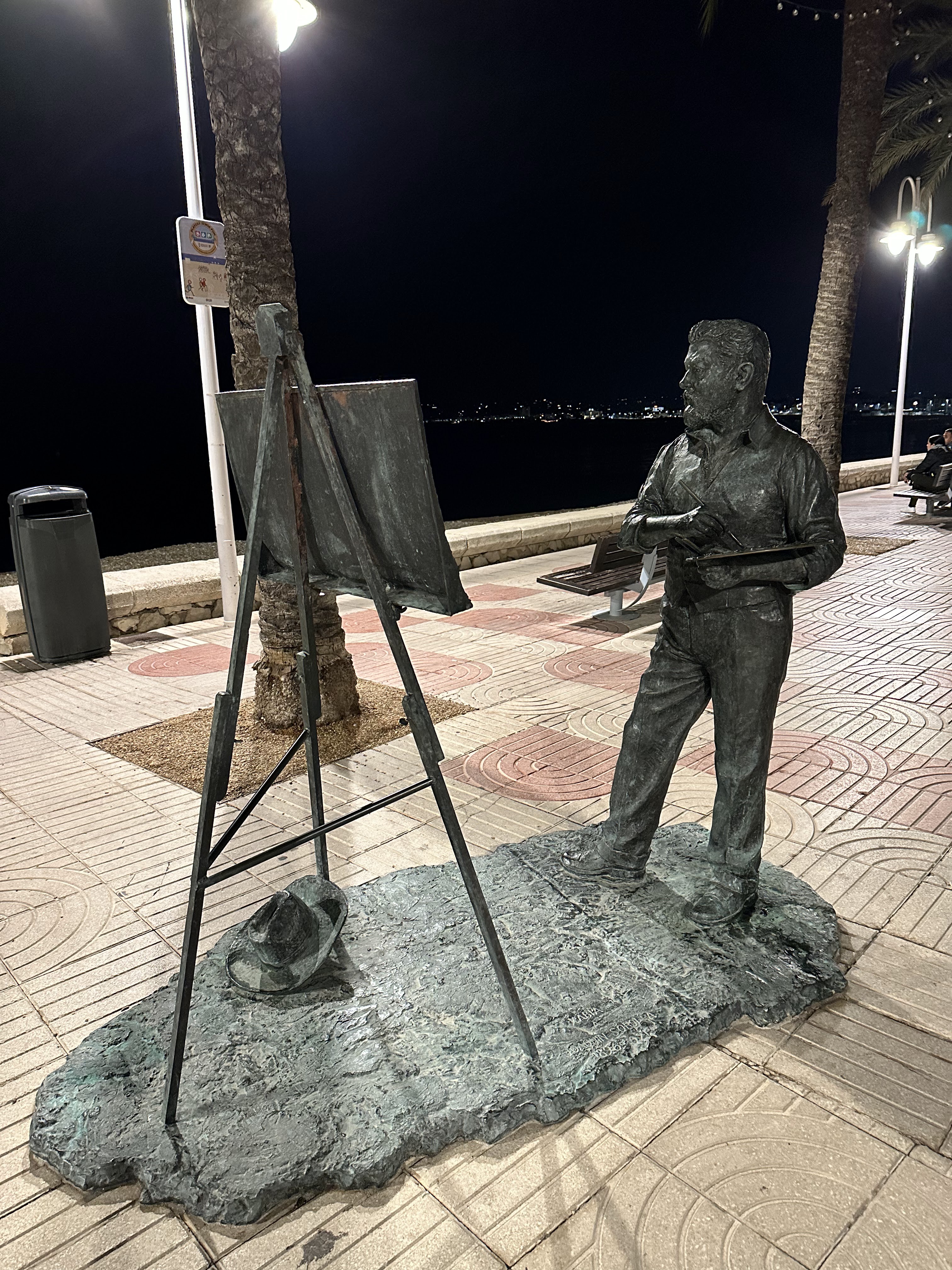 No obstante, alguna fotico pongo, como esos reflejos/colores sobre el mar de la playa de la Grava, la escultura de Joaquín Sorolla en el paseo playa, cerca de la Oficina de Turismo, pero no llegamos a las esculturas de Toni Mari (Fish Art…) que se encuentran más adelante.