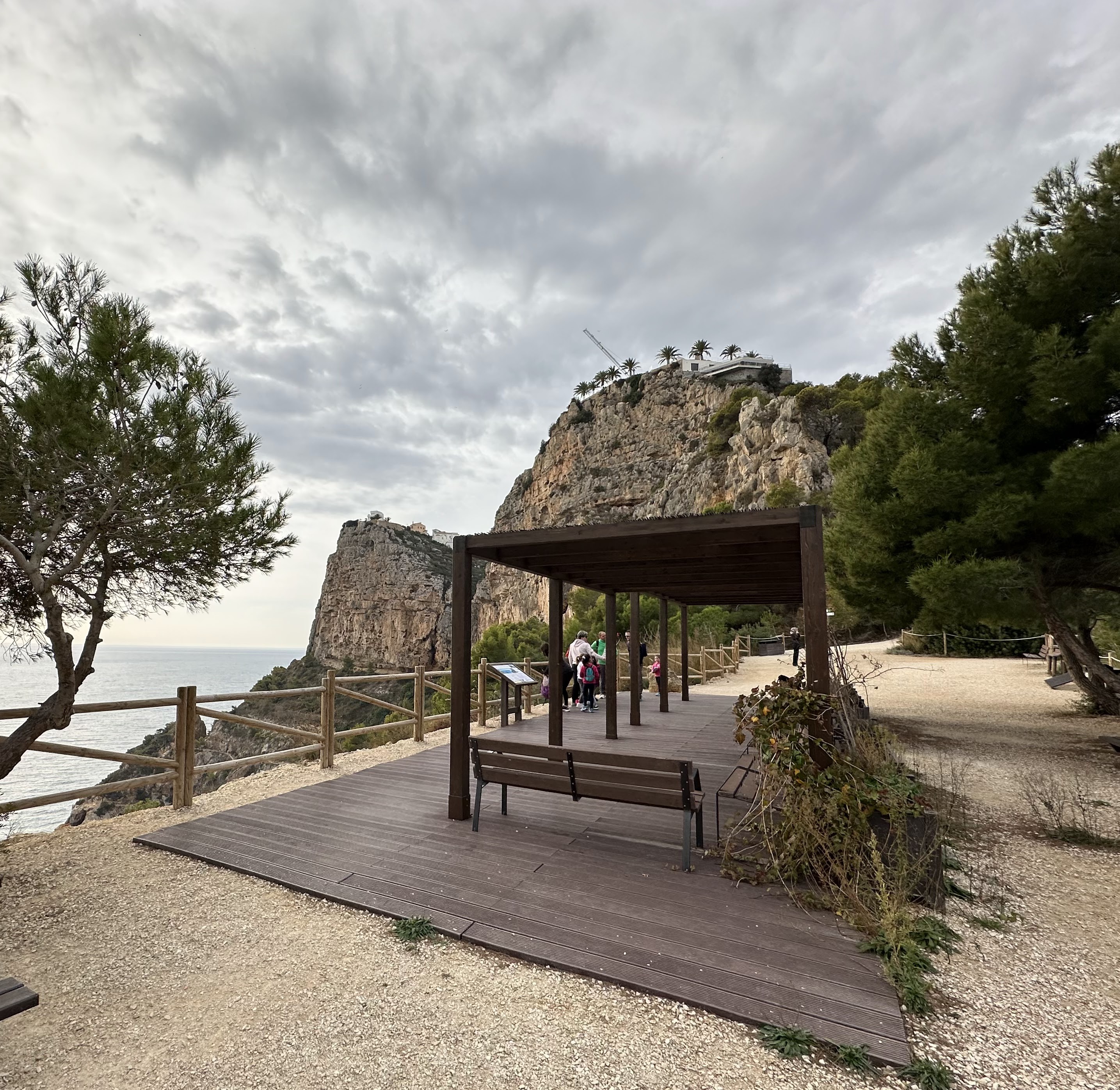 Queríamos hacer la ruta de los Acantilados allí mismo, en Benitachell también, pero mi cadera no está para muchos trotes así que fuimos en coche hasta el Nuevo Mirador Cala Moraig.