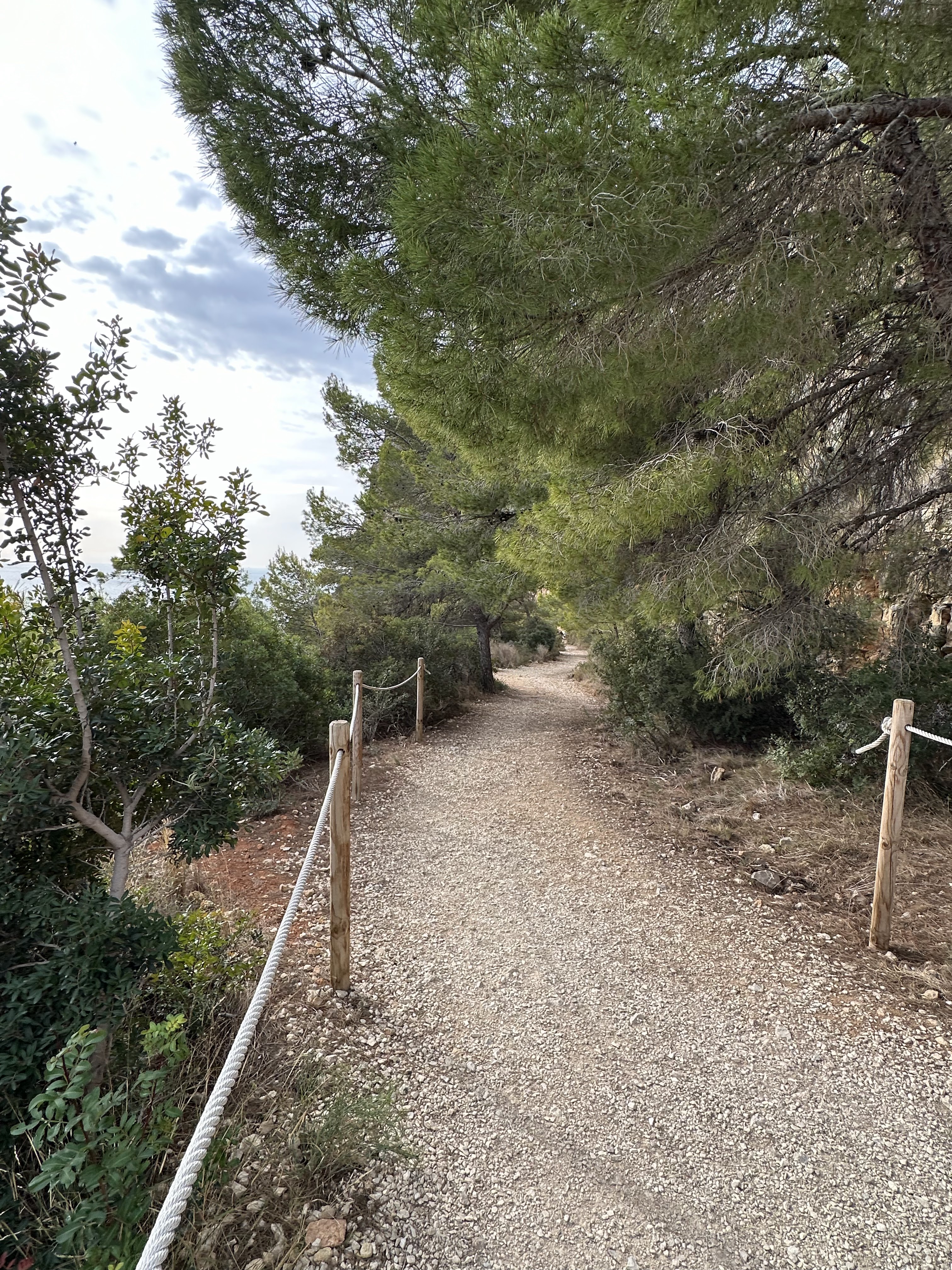 Aparcamos cerca del la escalera que sube al mencionado Nuevo Mirador Cala de Moraig, desde donde parte un camino de bajada a esa cala y ruta.