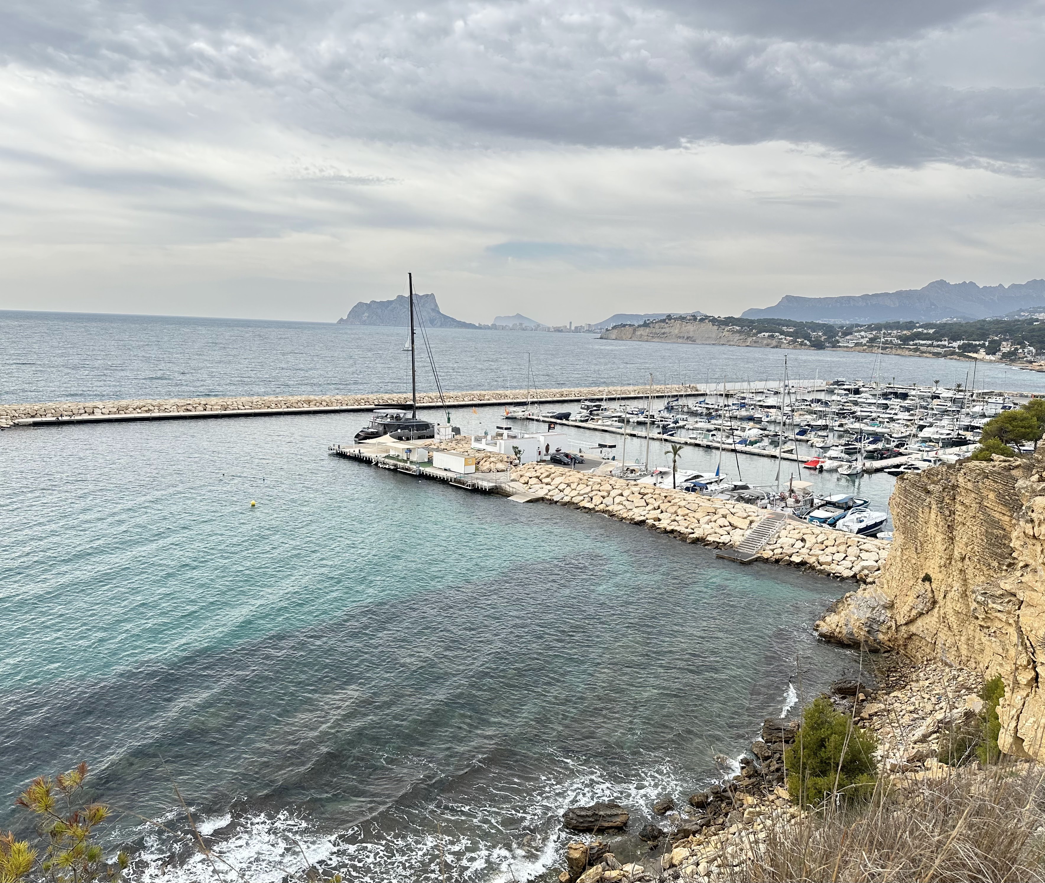 Desde este mirador podrás contemplar el Peñón d’Ifach y el Club Náutico. Un buen momento para tomar un trago de agua y bajar por las escaleras para ver la Cala del Portitxolet.