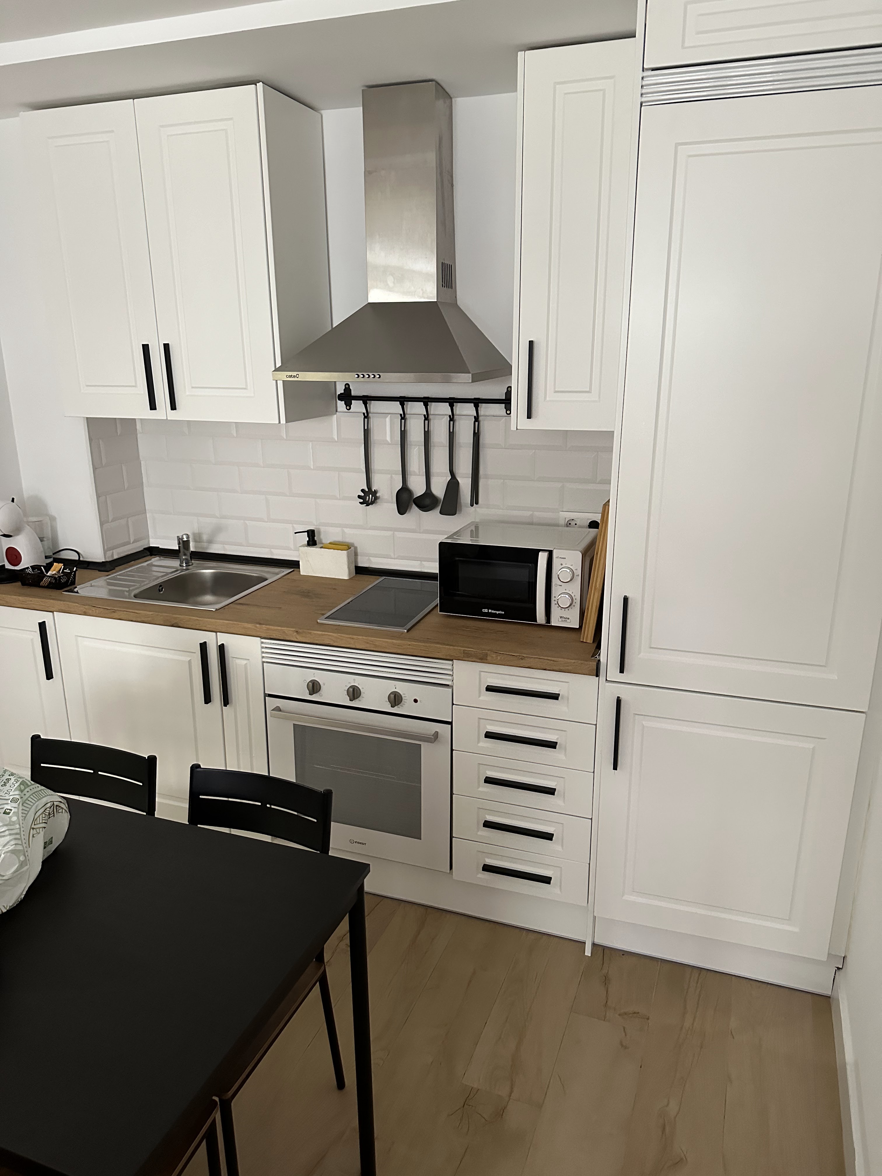 – El sofá no era cómodo. Sábanas cama matrimonio aunque estaban limpias, tenían alguna mancha. Falta de perchas para colgar toallas. Aunque no supuso un gran inconveniente, no había copas para el vino, sólo vasos.