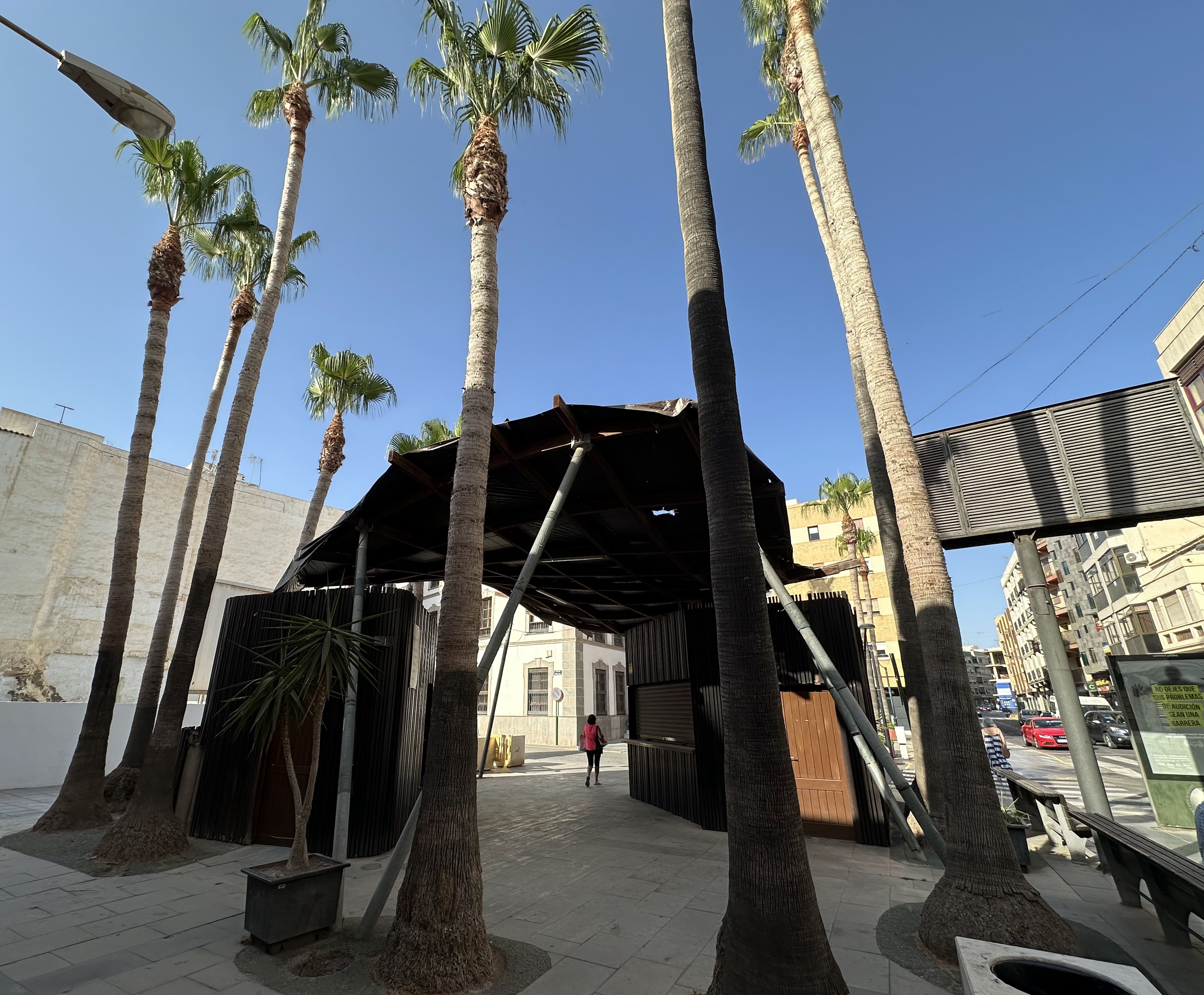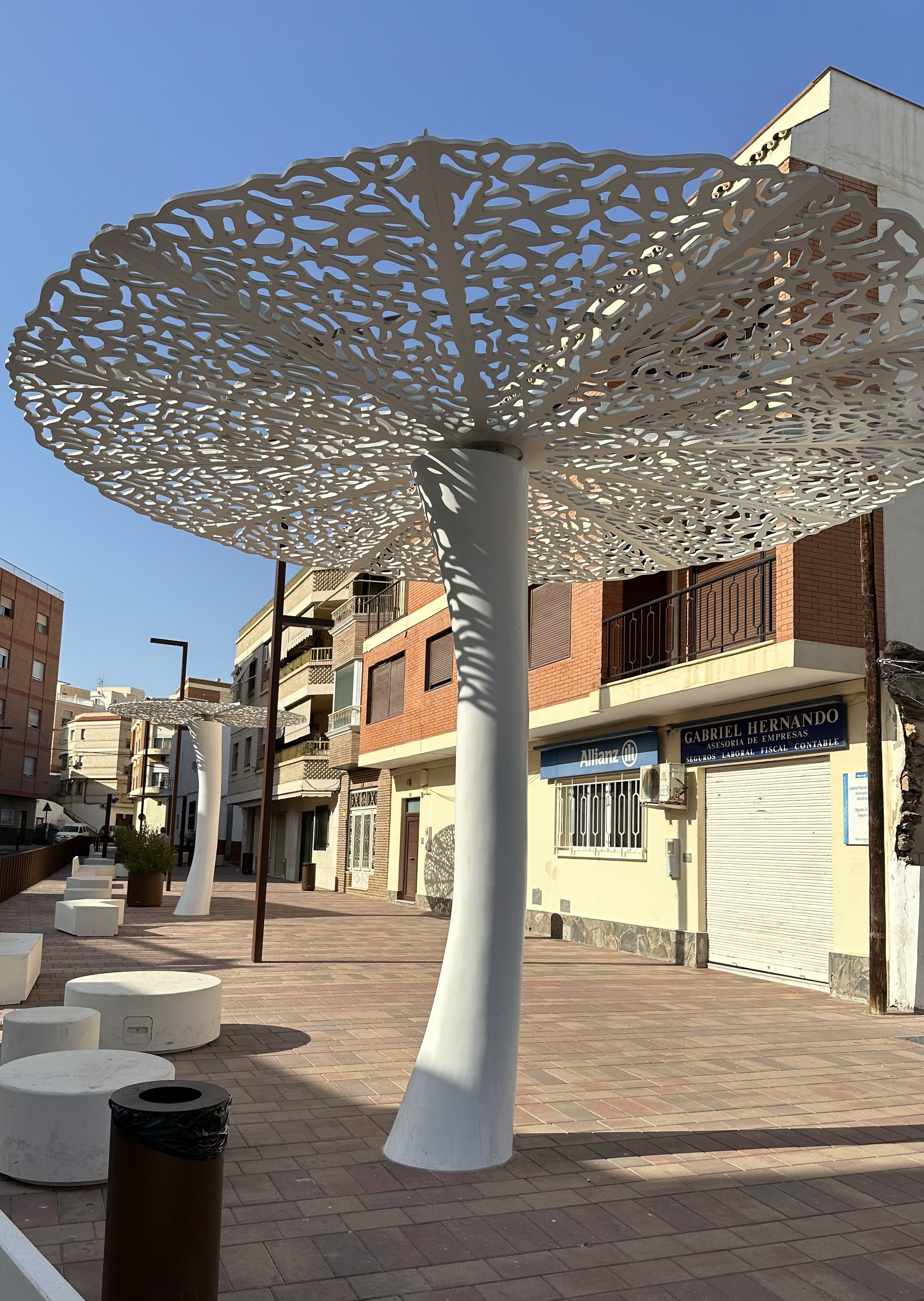 Curiosos «parasoles/sombrillas» en la Rambla de las Cruces, parece que recién inaugurada en abril/2024 tras una remodelación.