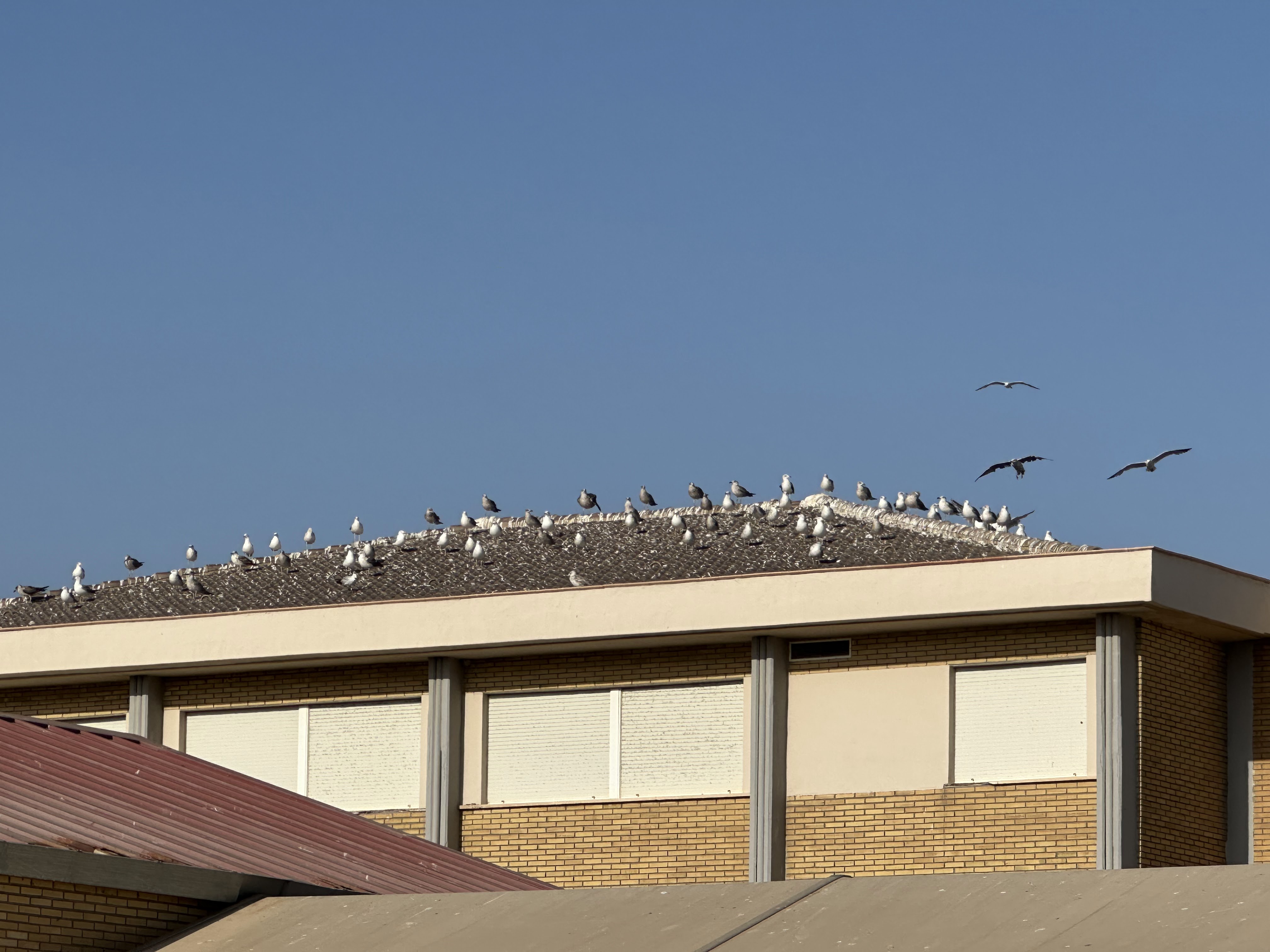 Ya en el paseo, revuelo de gaviotas sobre nuestras cabezas; impresionante el mogollón que había…no he podido subir el video pero si la última foto que visteis de las cuatro anteriores, donde se posaron algunas (había muchas más) en un tejado de un edificio.