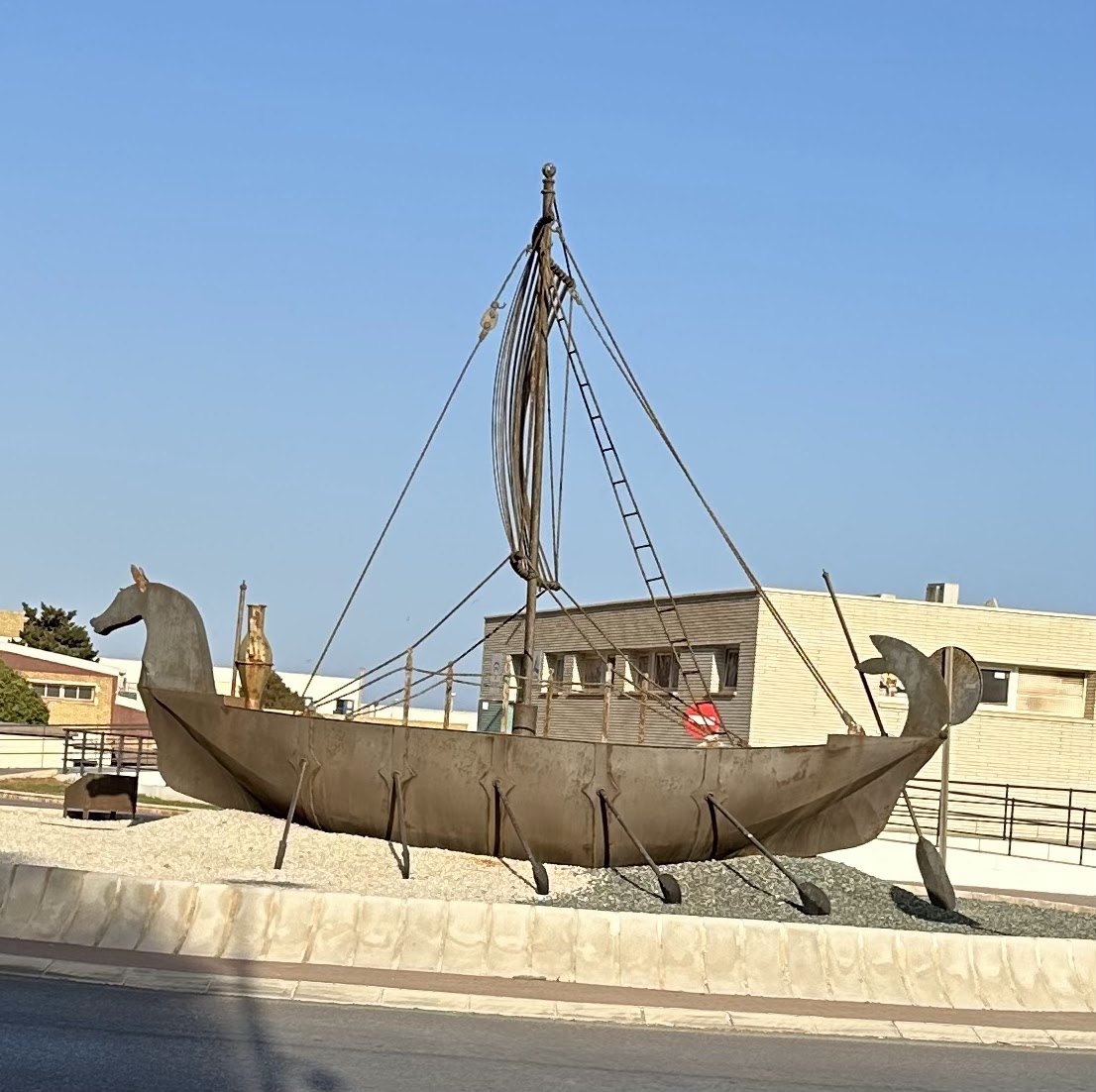 El barco fenicio en la primera rotonda que nos encontramos.