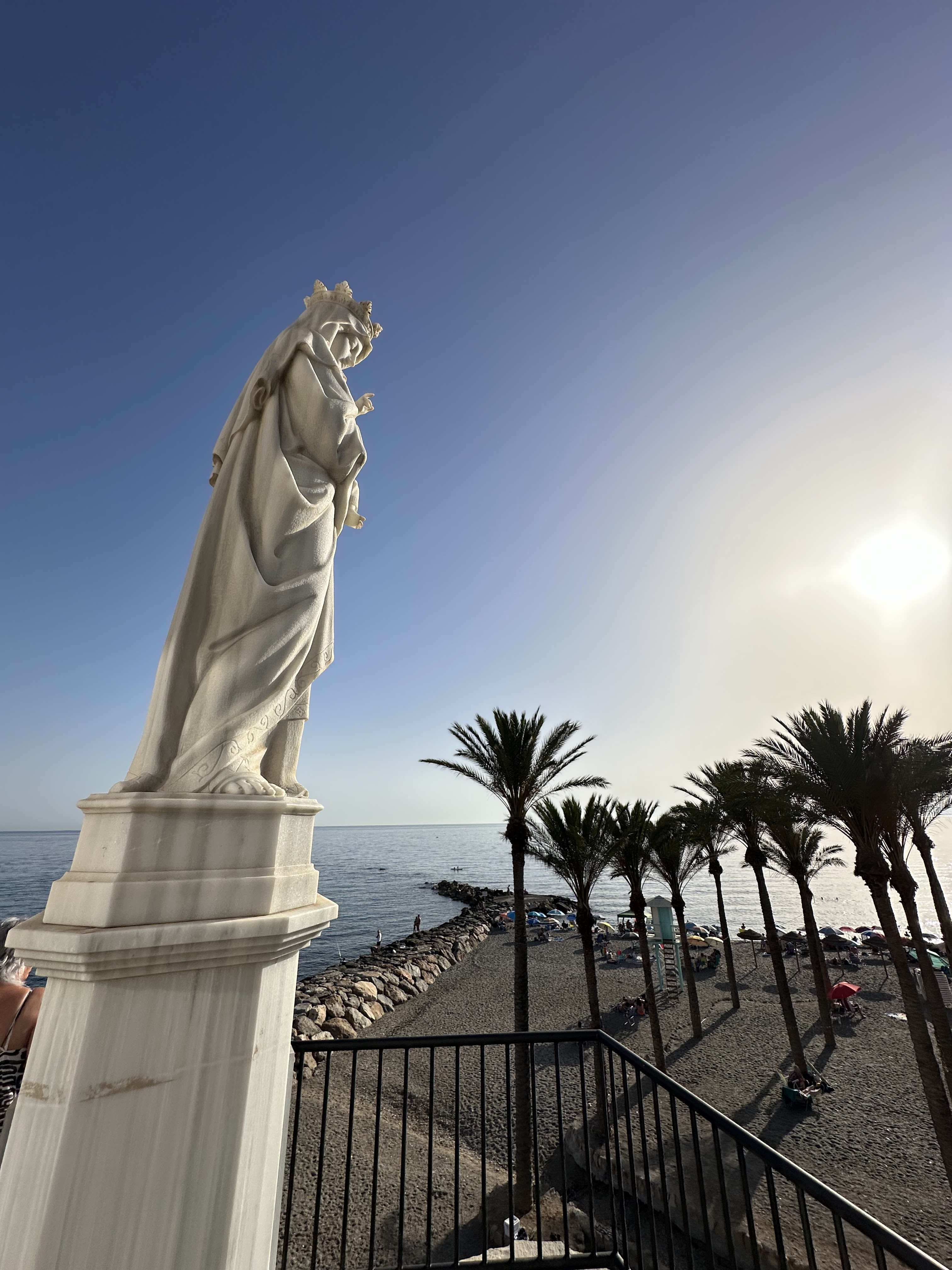 Desde aquí, se pueden admirar las impresionantes vistas de la costa, el Mar Mediterráneo y los alrededores. La escultura de la Virgen del Carmen, patrona de los marineros, añade un toque espiritual y cultural a este mirador con su minucioso tallado en mármol blanco que se ha convertido en uno de los rincones más especiales donde los fervientes rinden su devoción con ofrendas florales.»