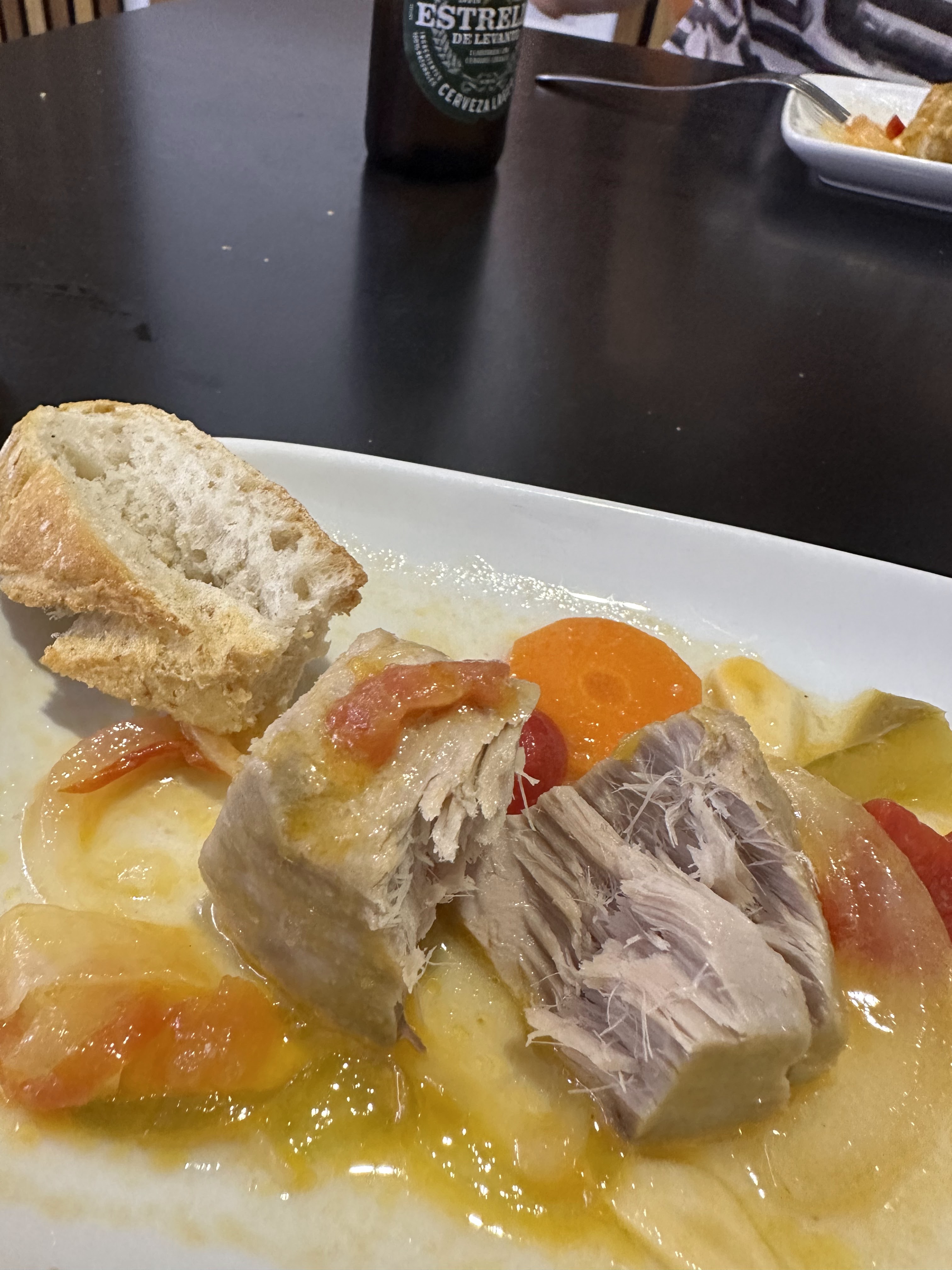 Comimos en el comedor interior pero en la parte de fuera para poder pedir también alguna tapa, a parte de platos/raciones de la carta; por ejemplo las tapas fueron, secreto con verduras, erizo de rape y gambas, tosta de caballa y de la ensalada especial del día.