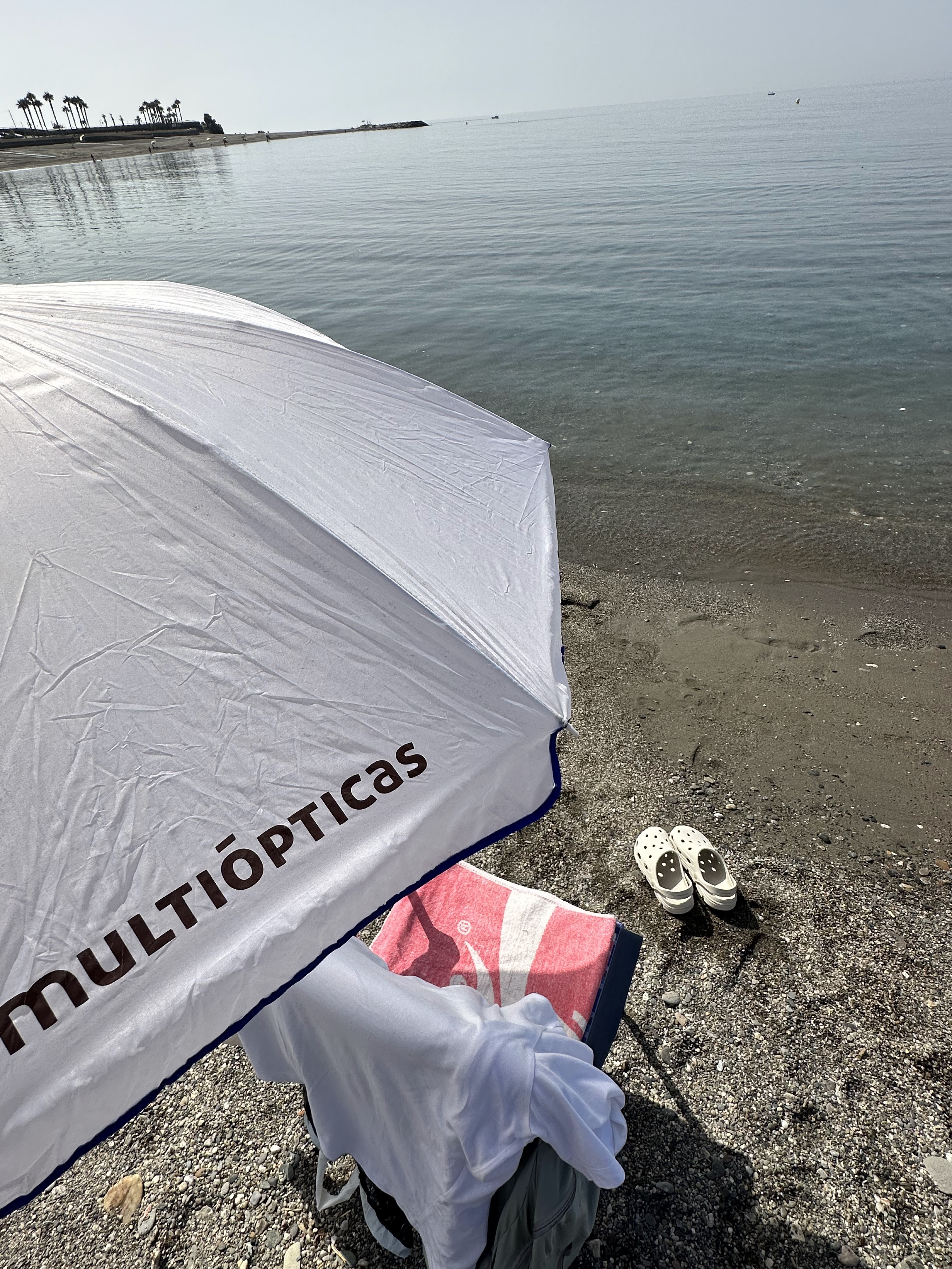 Desayunando en apto. (que no lo dije)…comprábamos plan para tostadas la tarde antes y café, etc. suficiente. Después a la playa de nuevo (del Censo, ya sabéis, extensión de la S.Nicolás)