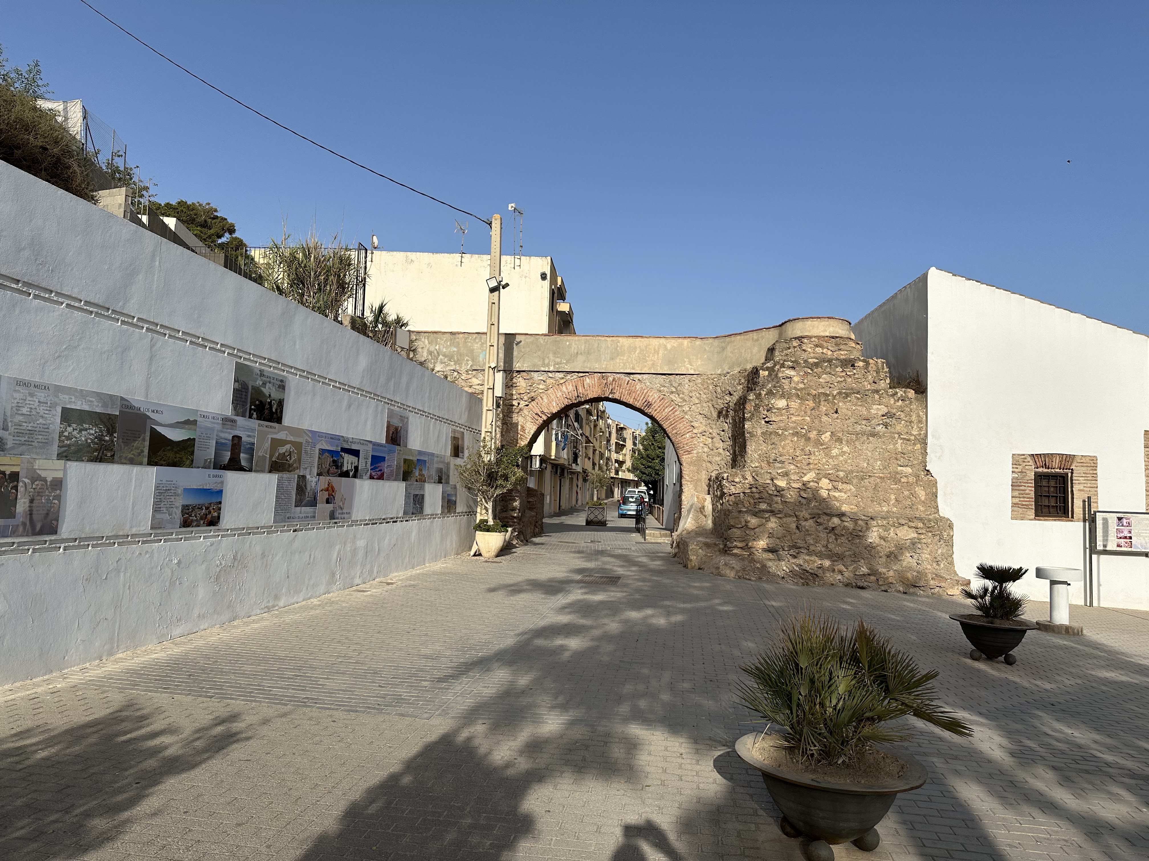 Ya en la zona del puerto, andamos por la prolongación de la calle/paseo de los Tristes; igual que el de Granada, si pero éste junto al mar. Zona «gatuna» y que te lleva hasta un pequeño faro desde donde apreciar el puerto en gral. y otro pequeño faro al otro lado, junto a las playas del Carboncillo y del Poniente.