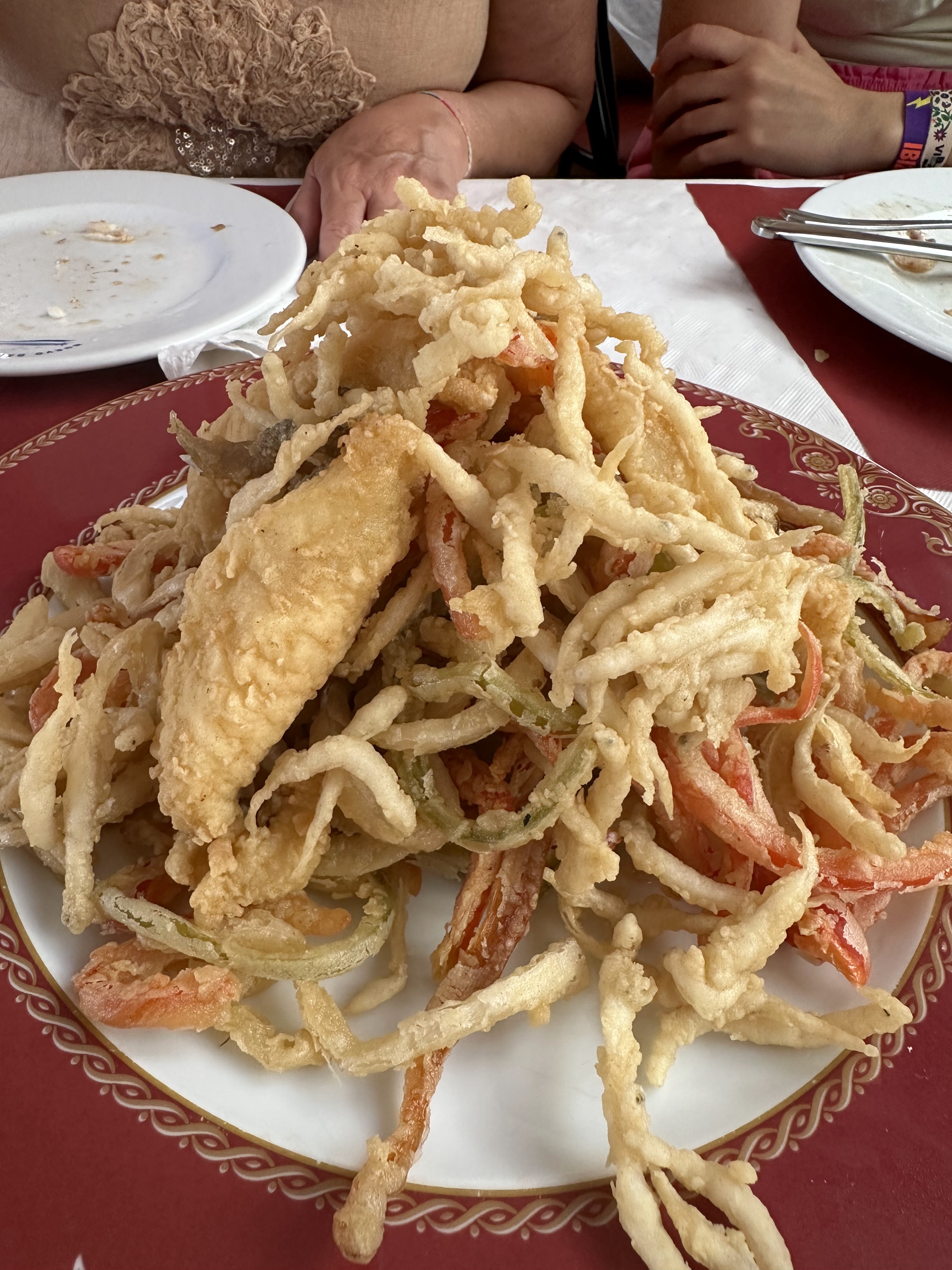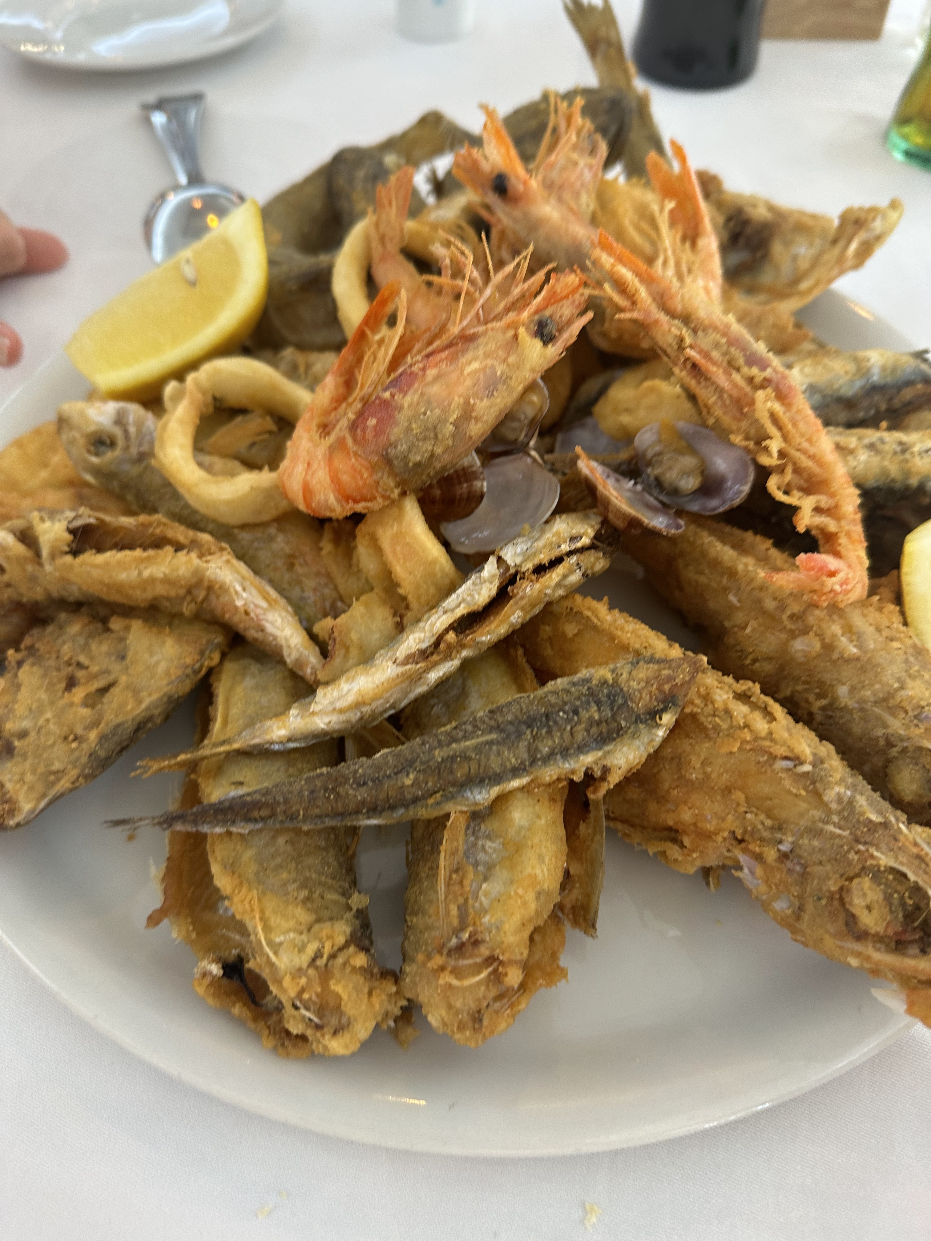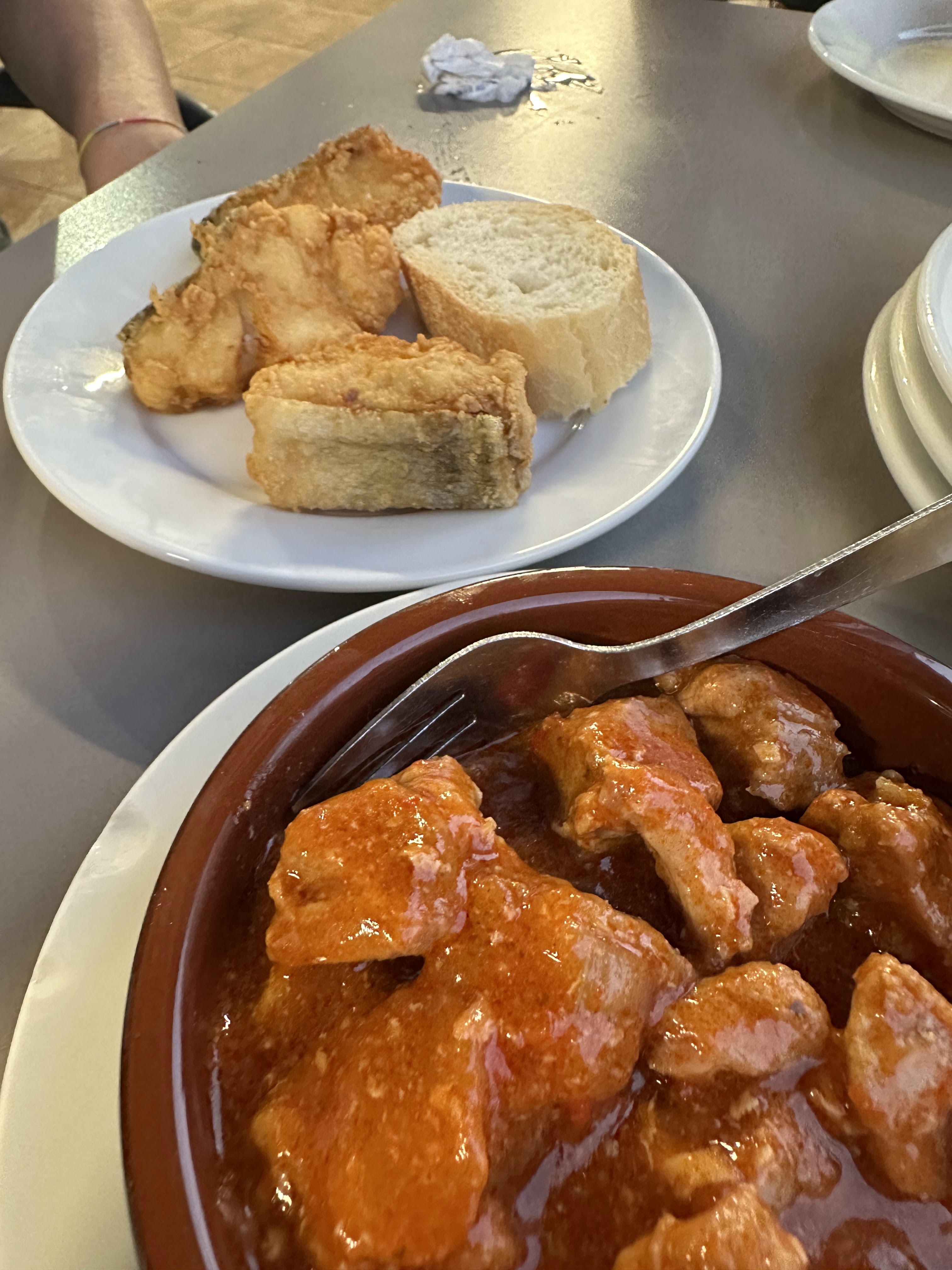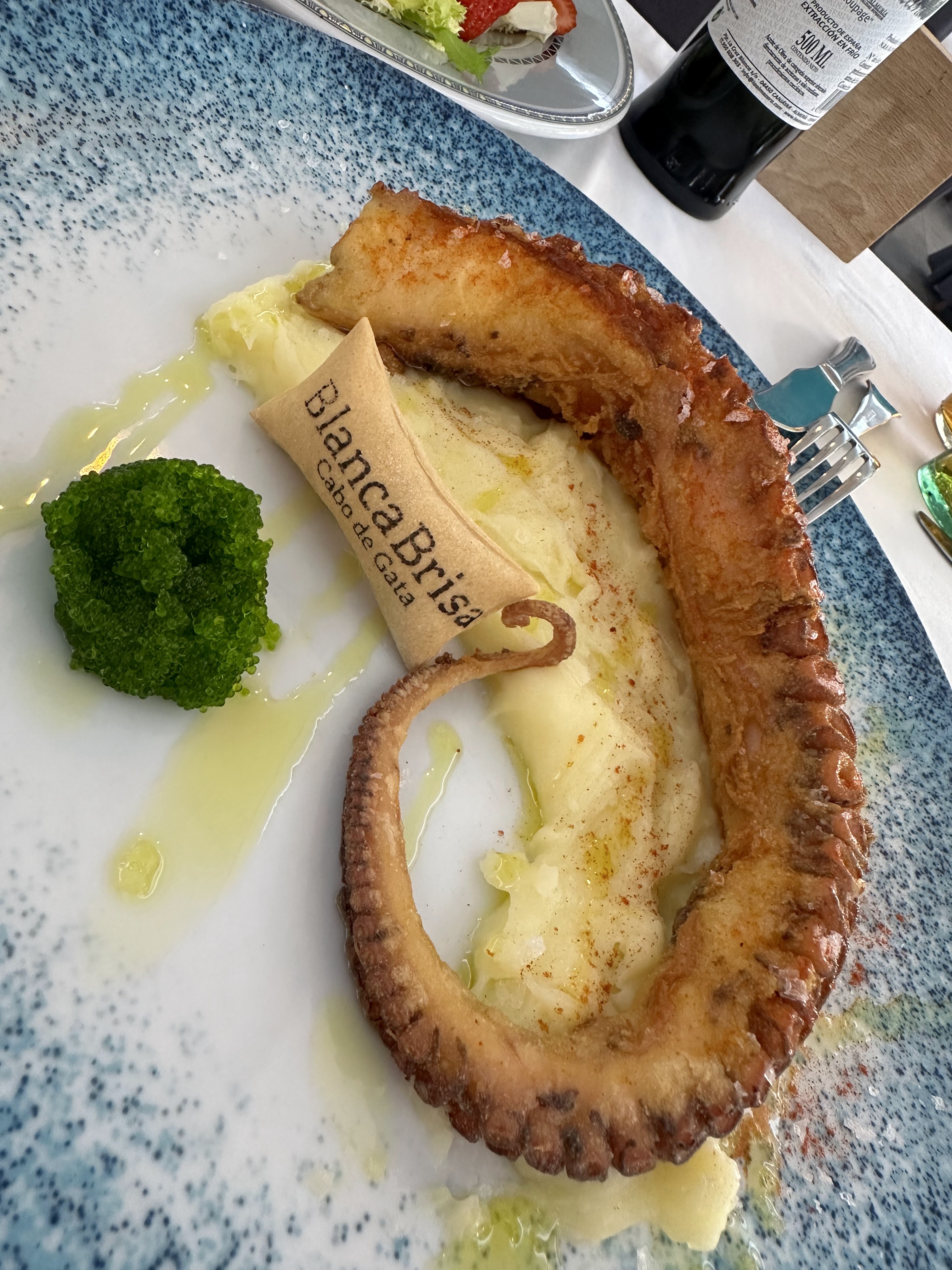 Restaurante el Barquero/Ctra.Cabo de Gata pblo./Pujaire. Comimos un menú (16 eur: Gazpacho, cordero y tarta de queso) y 1/2 de jibia, 1/2 de salmonetes y unos «bastoncitos» de Gallopedro (14 eur).
