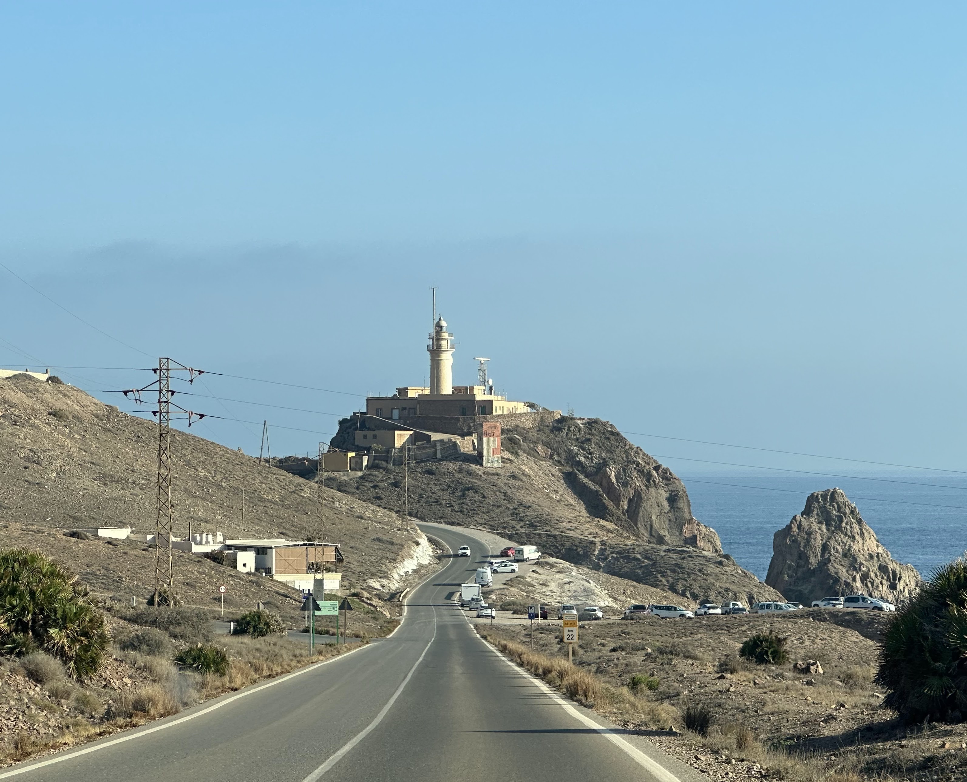 «Una vez nos encontremos junto al faro de Cabo de Gata ya podemos decir que hemos estado donde termina el sur oriental de la península, porque este faro, y el mirador de las Sirenas que está a su lado, fueron construidos en el morrón del cabo, el punto geográfico exacto donde se emplaza el cabo, ya conocido en época de griegos y fenicios y utilizado durante toda la historia como punto de referencia para navegantes.