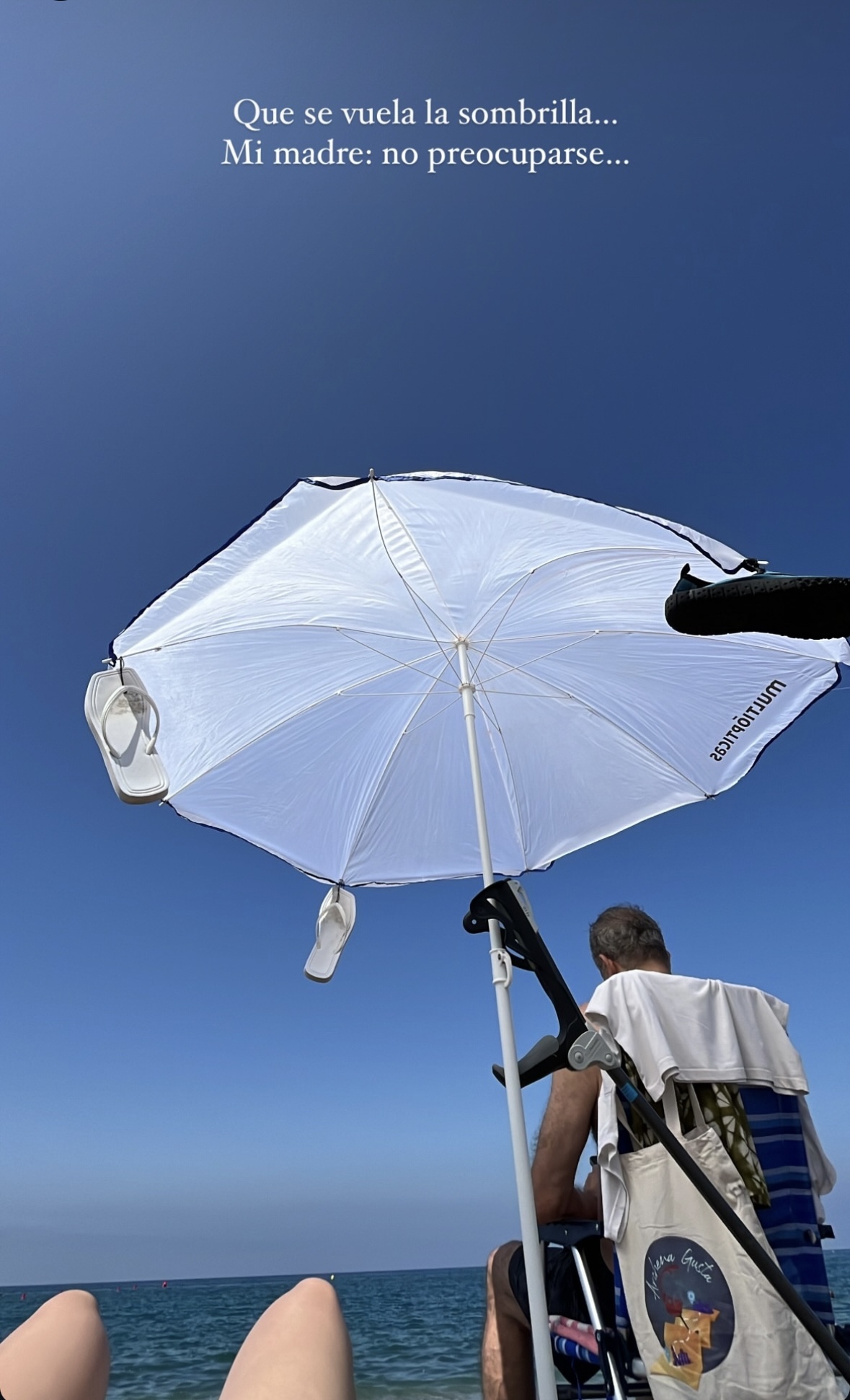 Sigo de paseíto para fortalecimiento pierna/cadera y un detalle publicado en redes por mi hija; el tenderete para que no se volara la sombrilla. Foto a continuación.