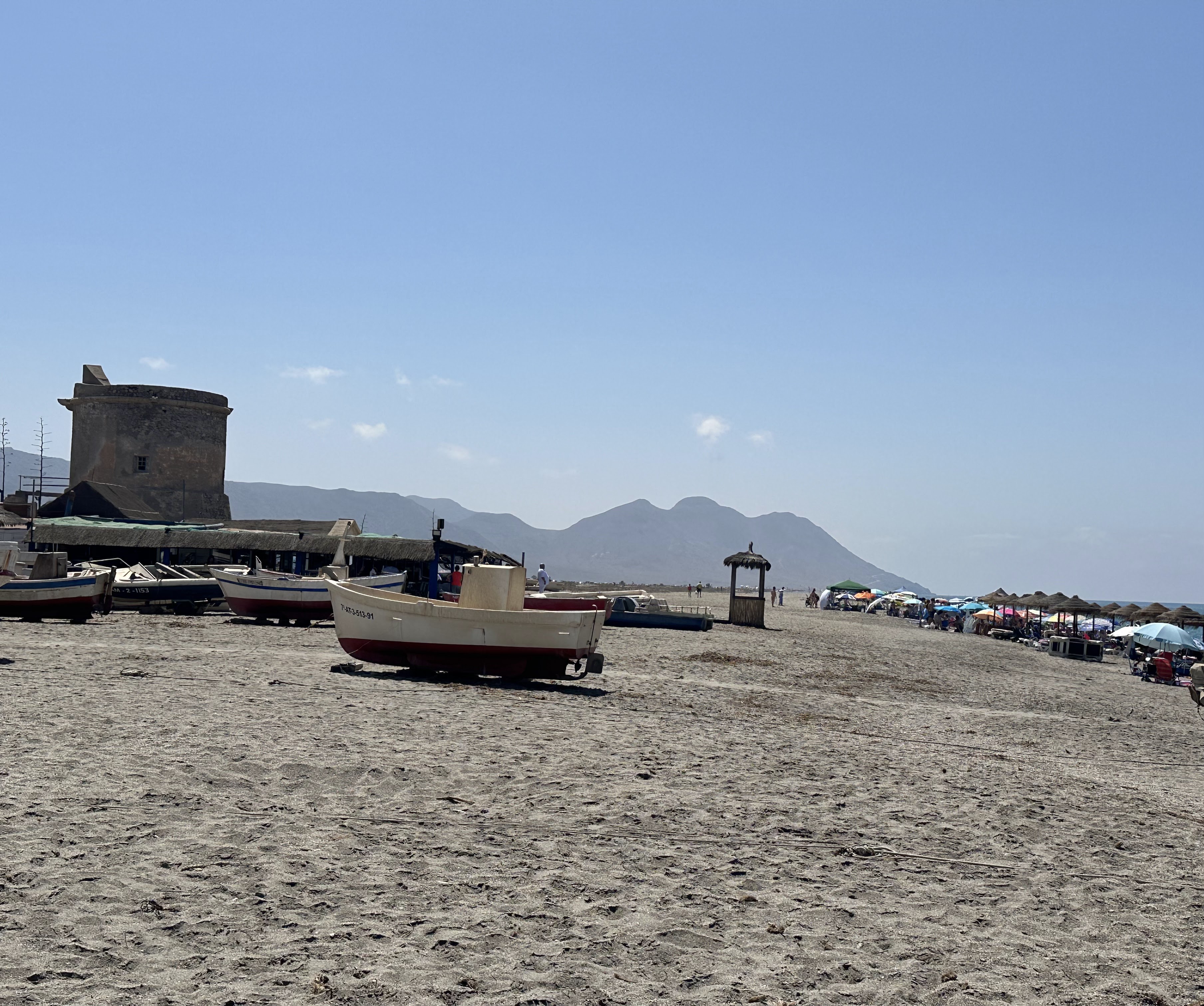 Es también zona de salida de piraguas para visitas a la zona volcánica de Cabo de Gata y el arrecife de las sirenas.»