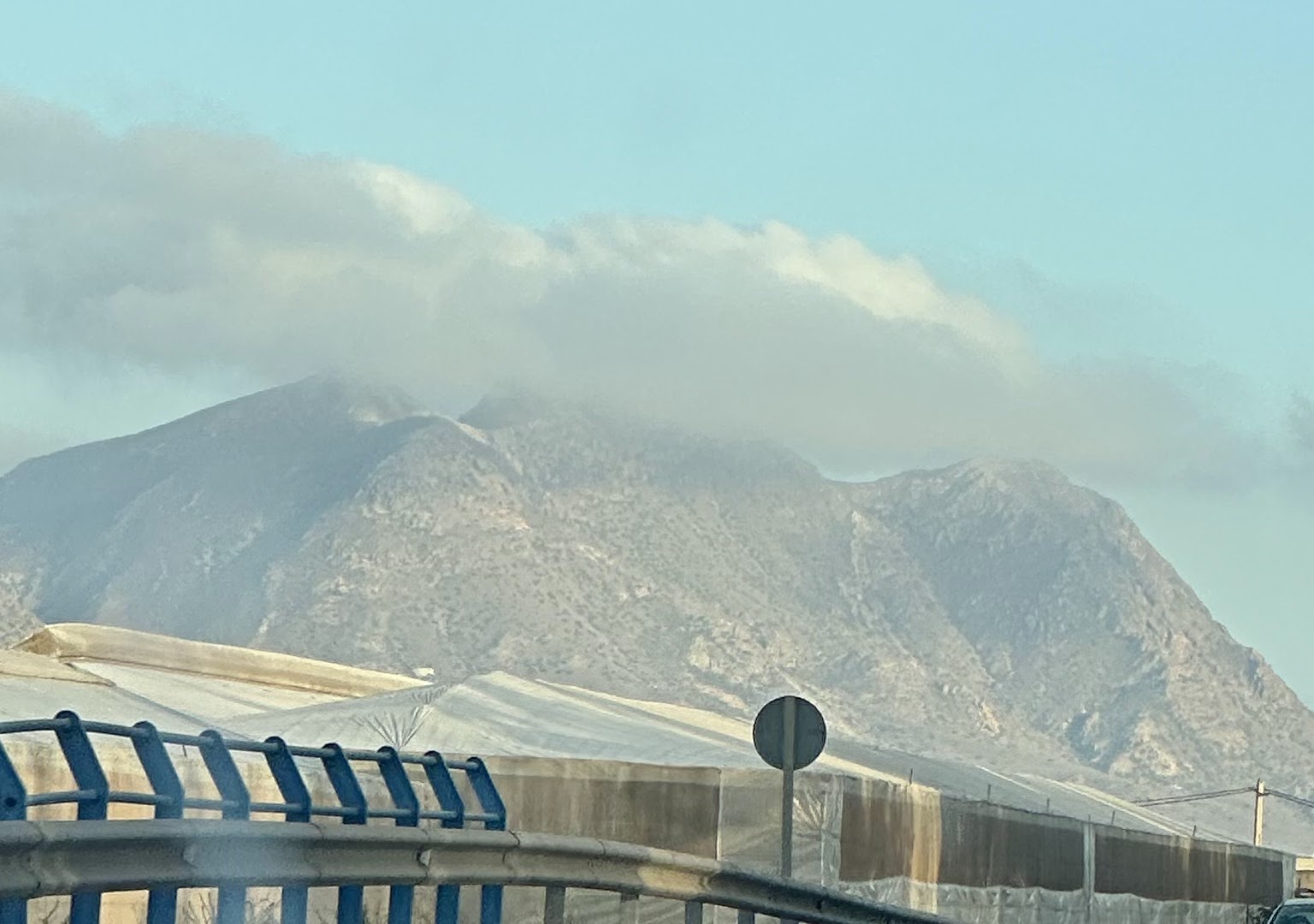 A la vuelta en coche se puede observar las montañas de sal de la Unión Salinera, S.A. de las Salinas de Cabo de Gata.