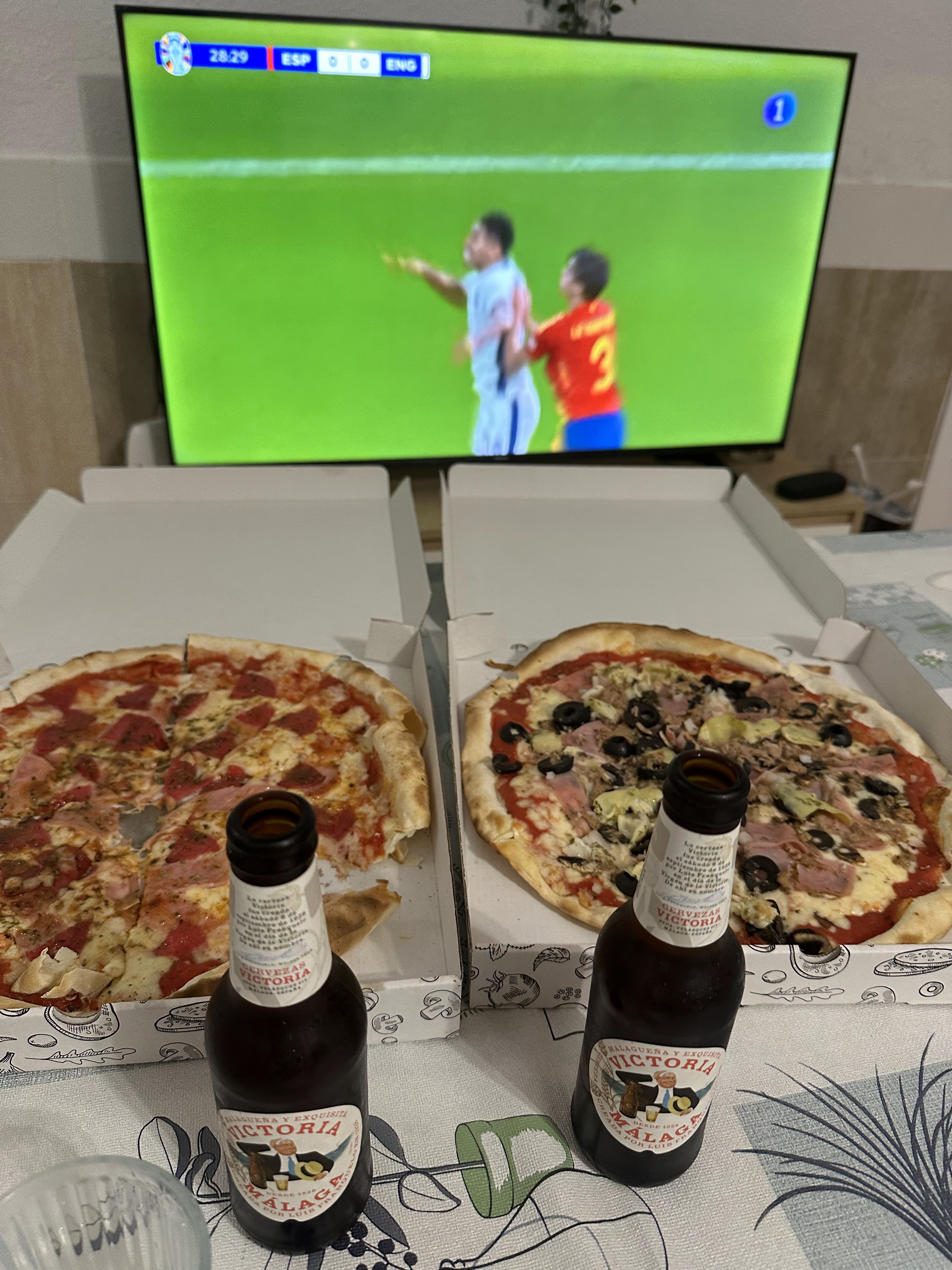 Y de paso encargamos también allí, unas pizzas para ver el España-Inglaterra final de la Eurocopa a la noche. Ya sabéis, ganamos 2-1; cuelgo foto también en la cena.