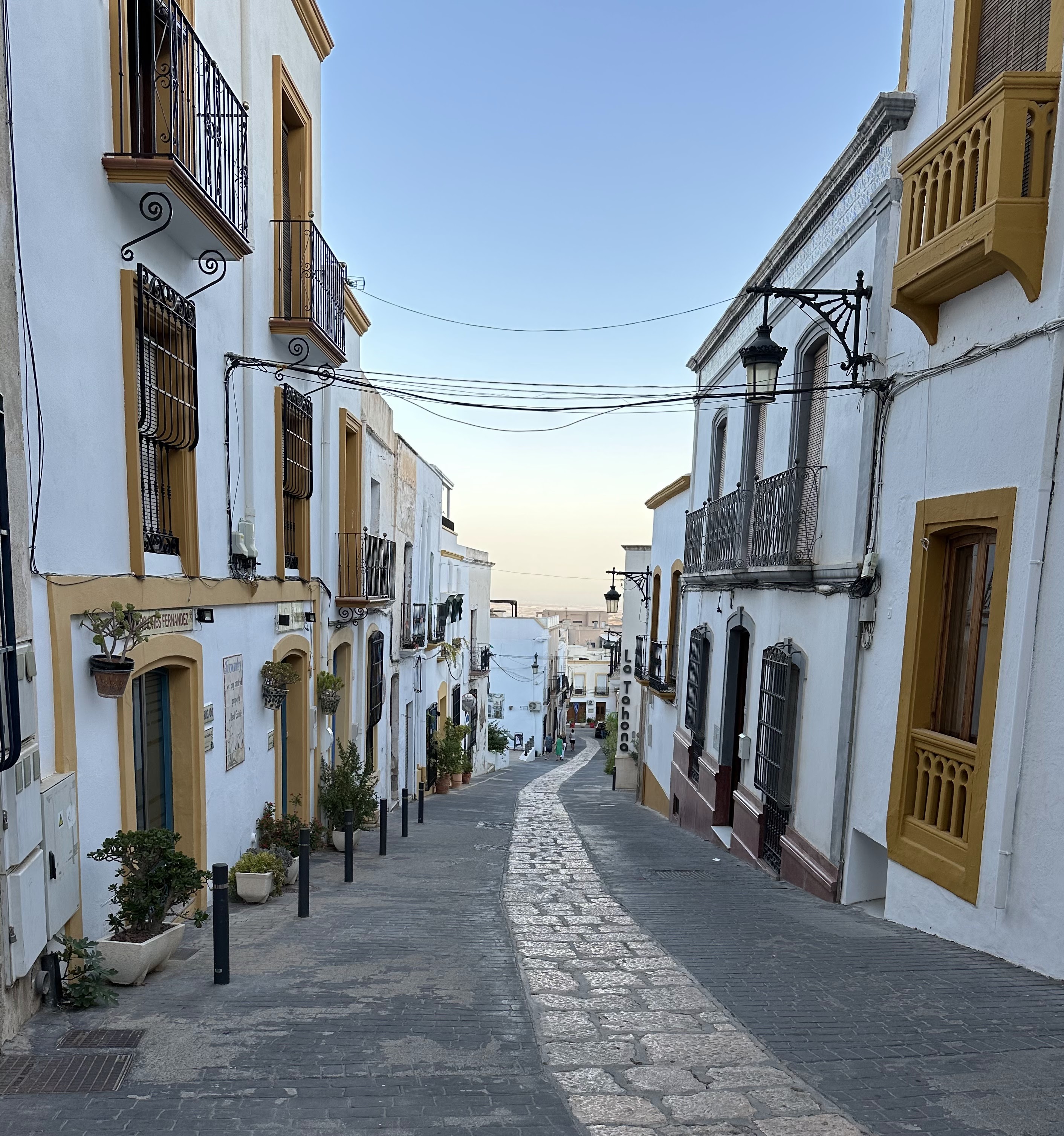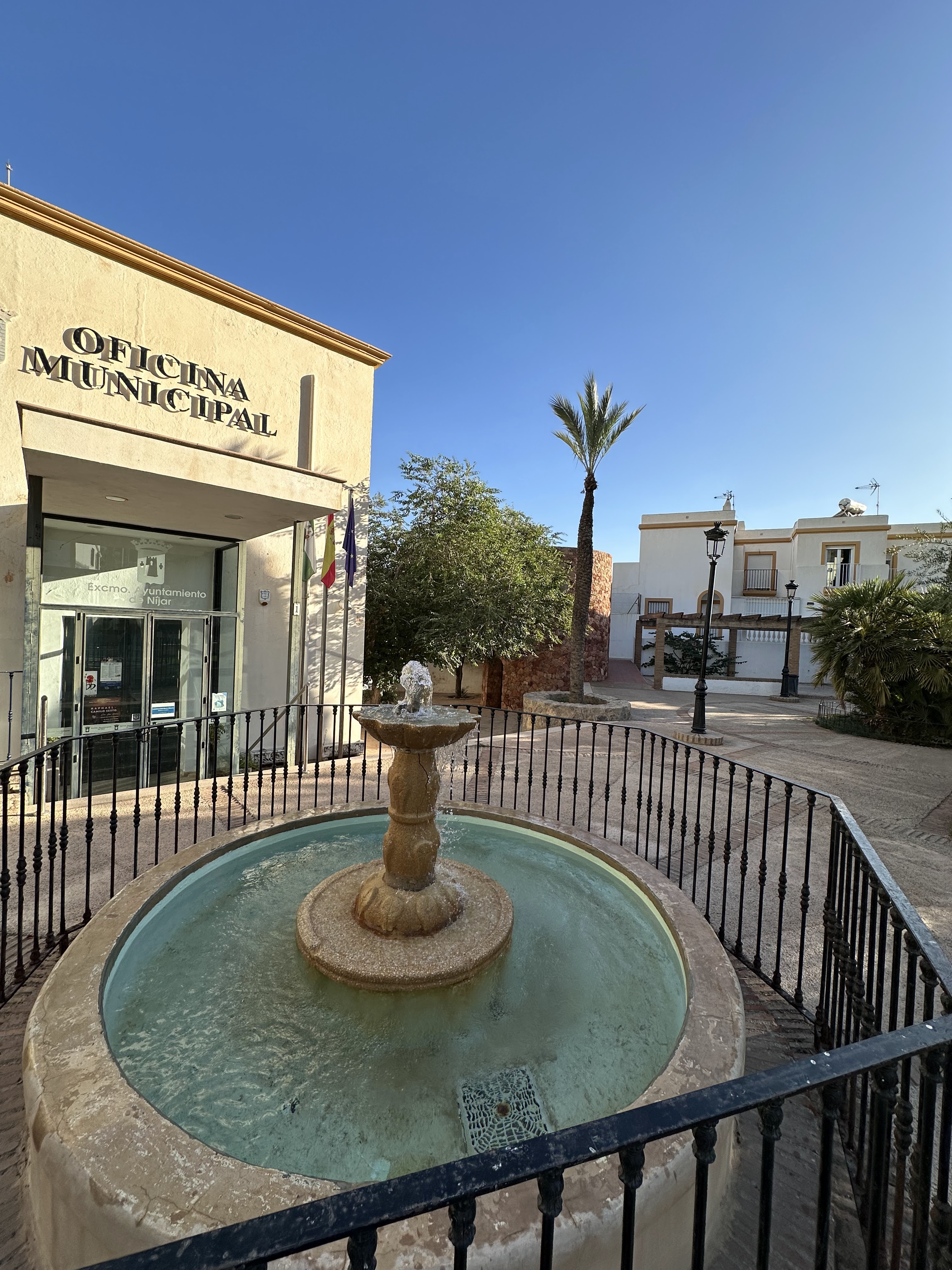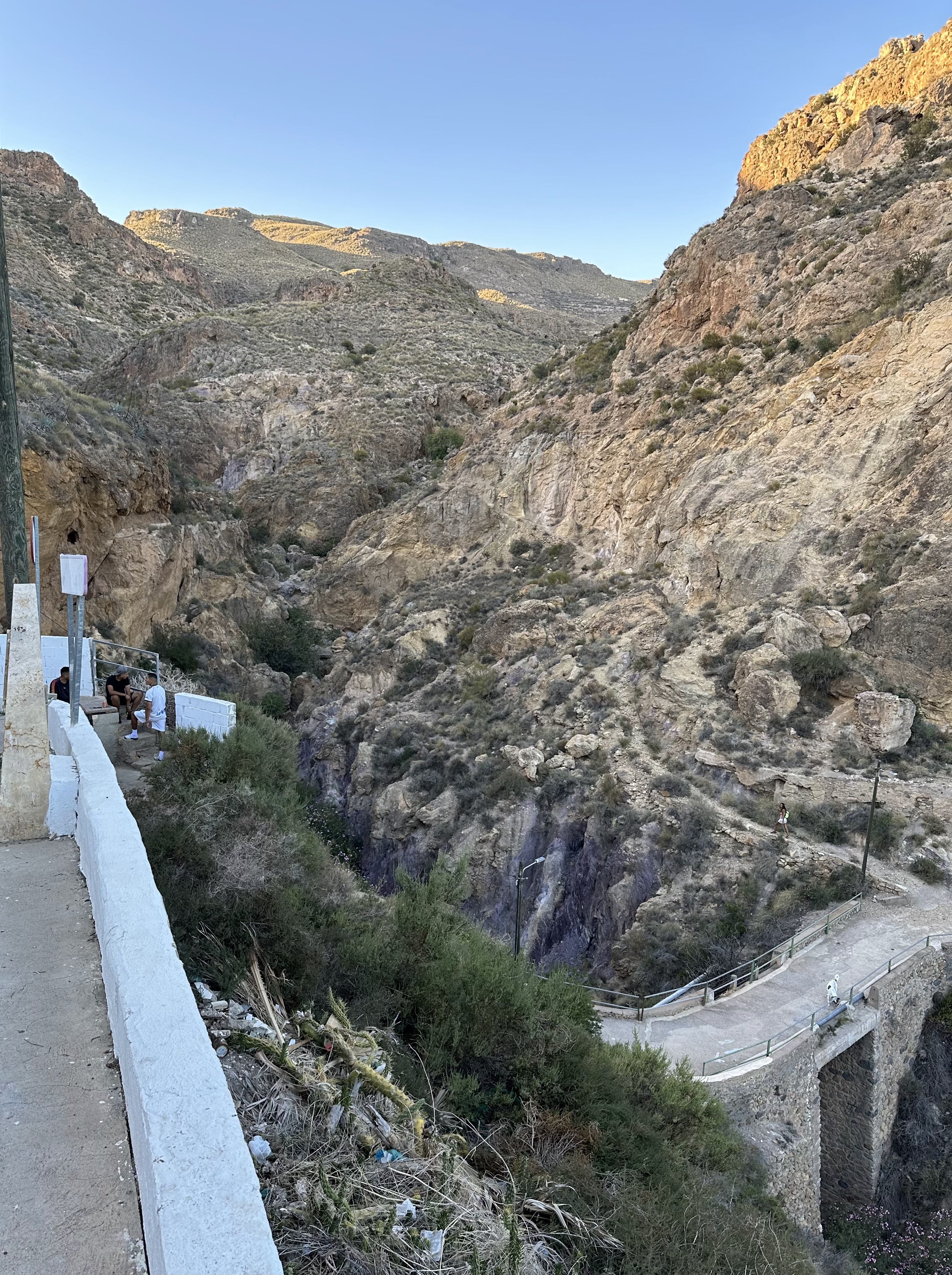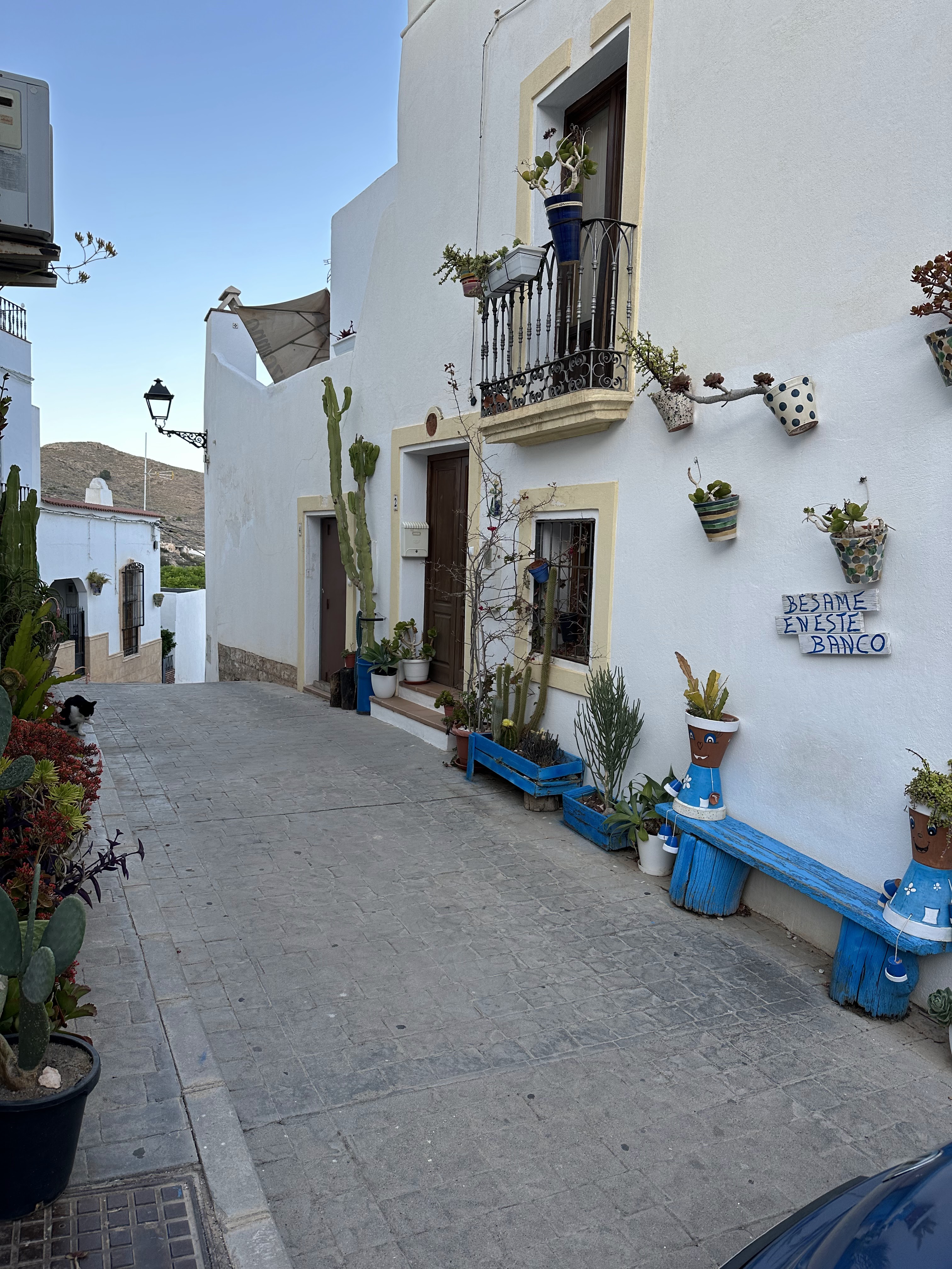 A mitad de camino de ambas calles antedichas, podéis coger la calle Atalaya que os llevará primero al mirador del Cerro de la Atalaya y luego a la propia atalaya de Níjar. Mis chicas si lo intentaron aunque no llegaron arriba y yo me quedé con un parroquiano hablando de lo bonito que era el pueblo, etc.
