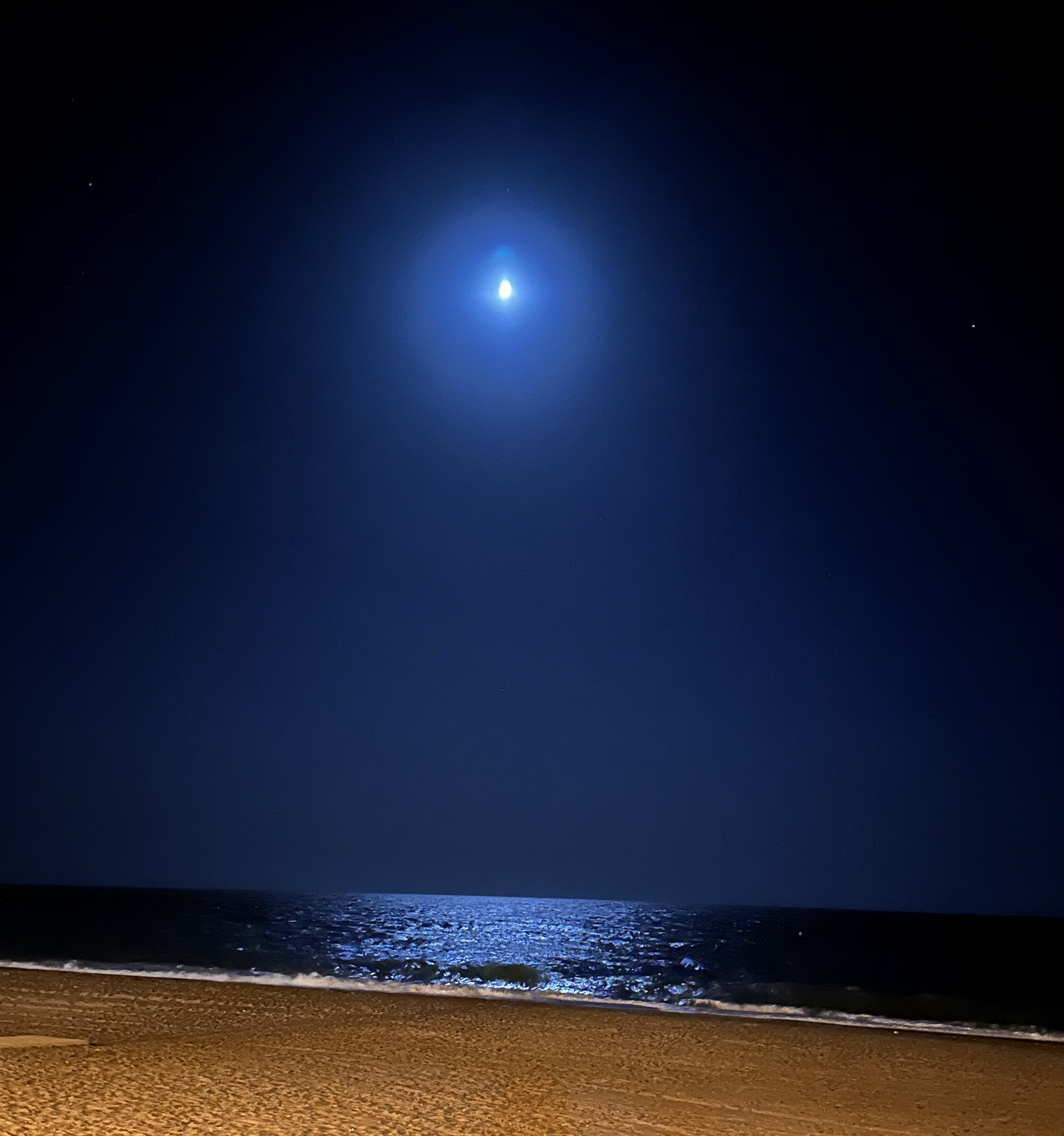 Tras la fallida puesta de sol, la luna y su reflejo sobre el mar llamaba la atención; cierro día con esa foto.