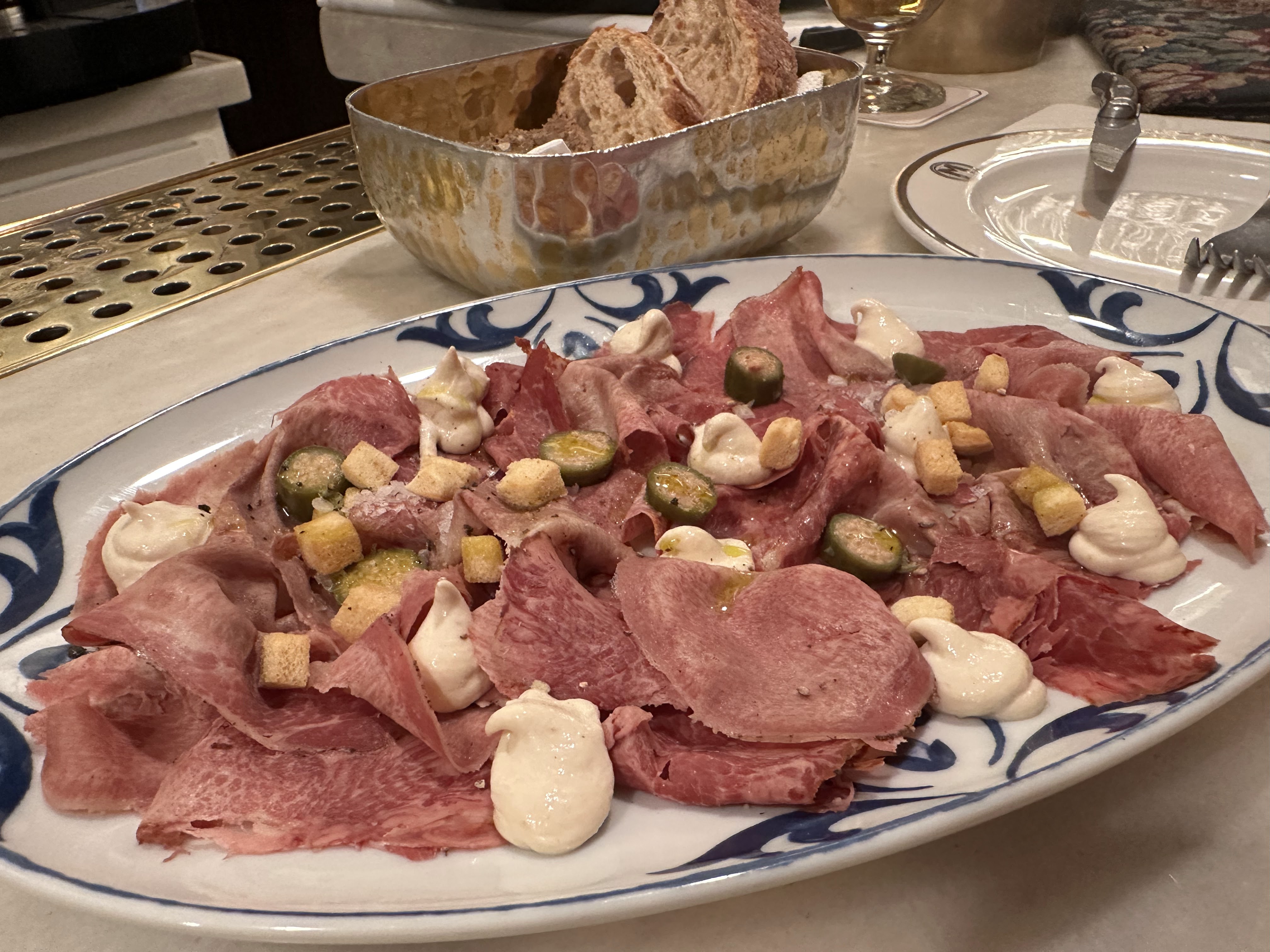No había mucha hambre y con media tabla de embutidos alicantinos (de Xaló/9 eur) y con un Sandwich de pastrami con mayonesa con toque a hierbabuena (16 eur) pensamos sería suficiente; el sandwich bastante más grande que lo esperado.