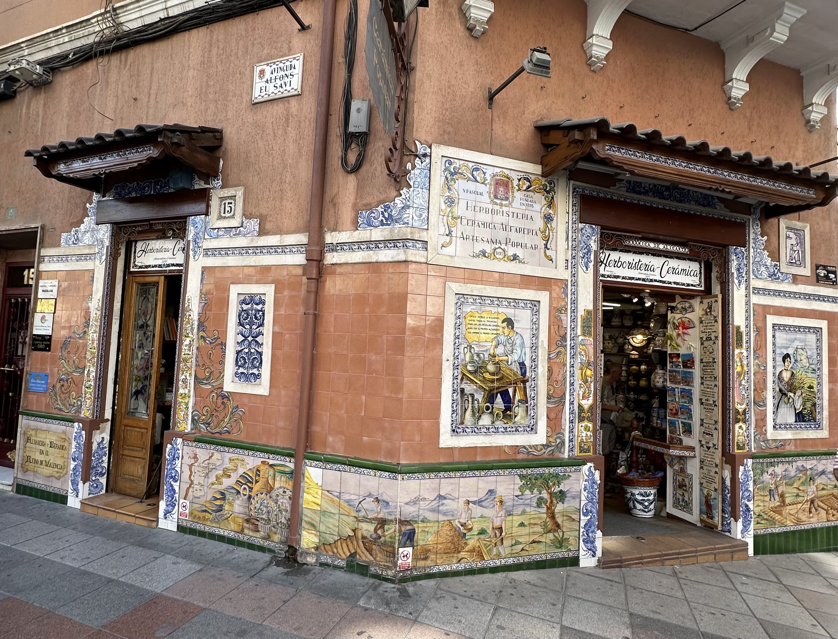 También de la fachada de azulejos, de la tienda Herboristería/Cerámica Pascual en la propia Av.Alfonso X El Sabio; se encuentra aprox.enfrente.