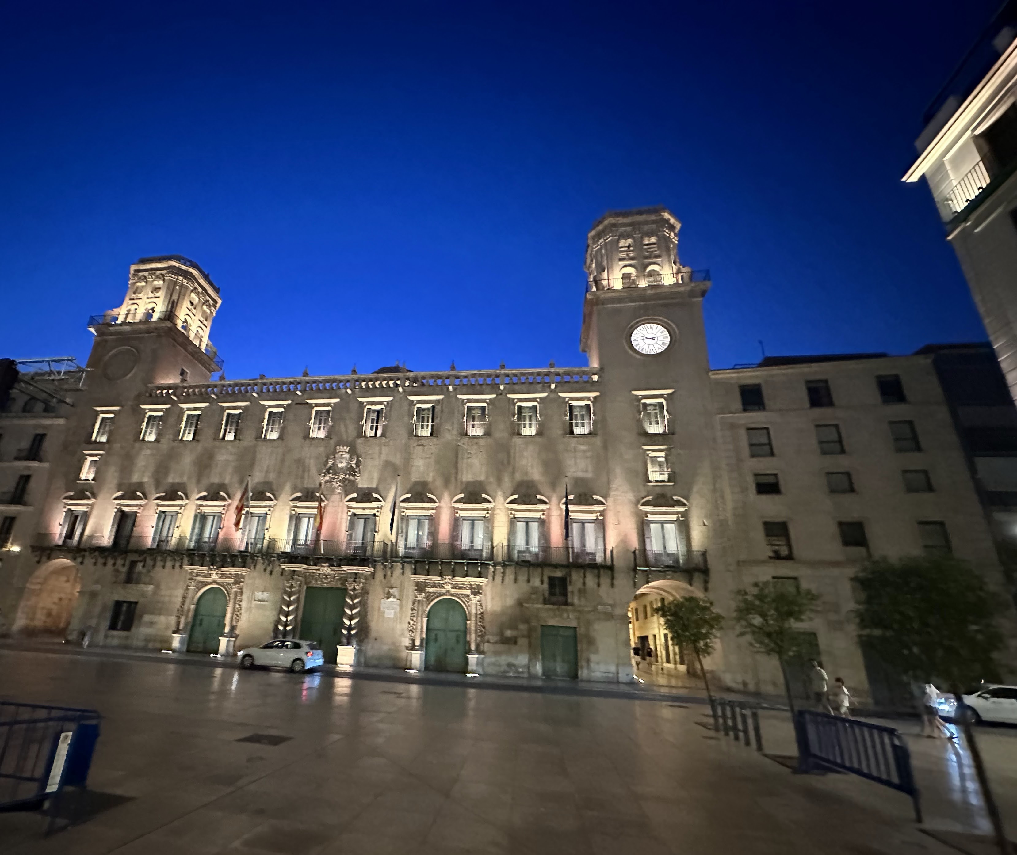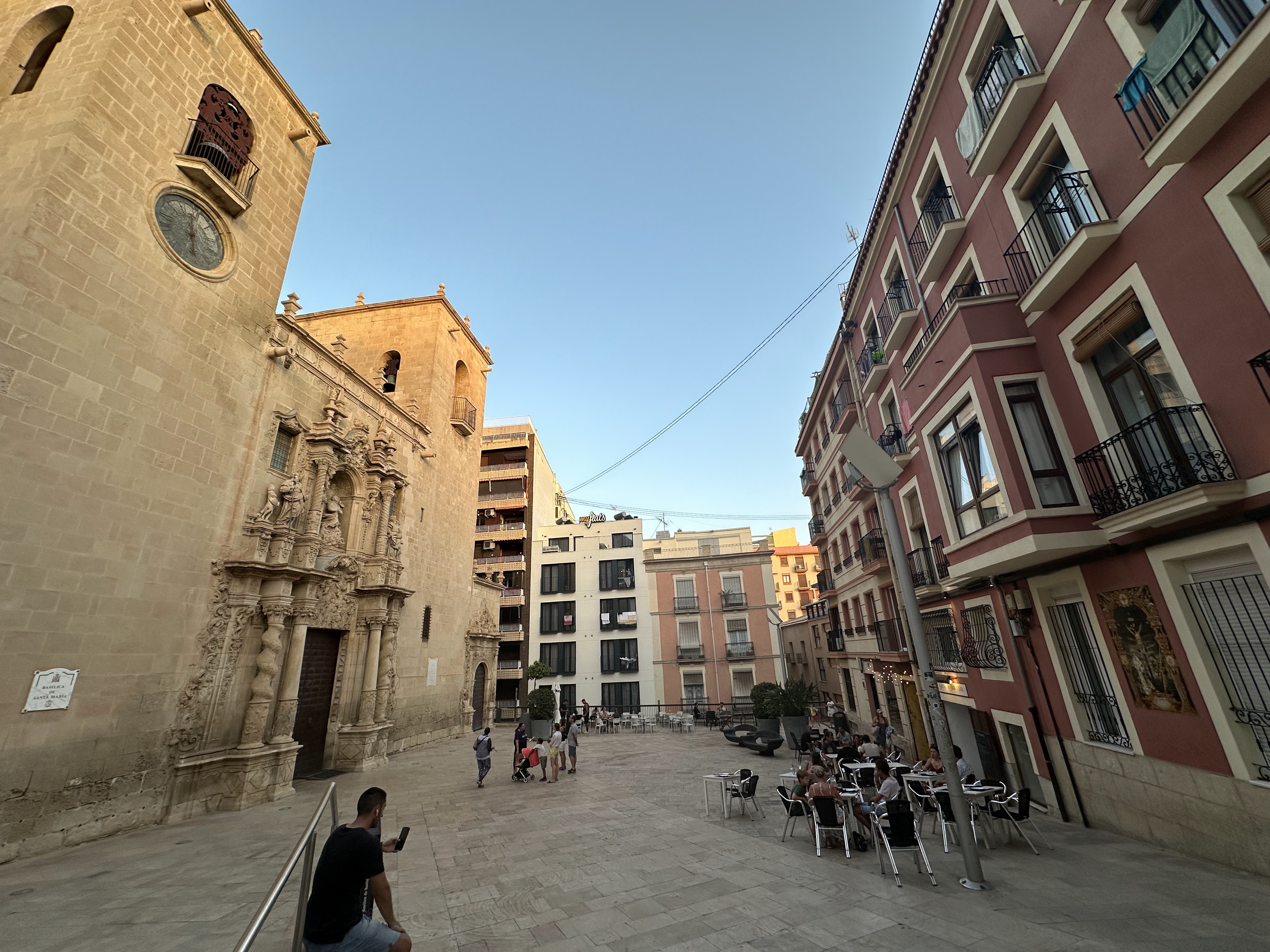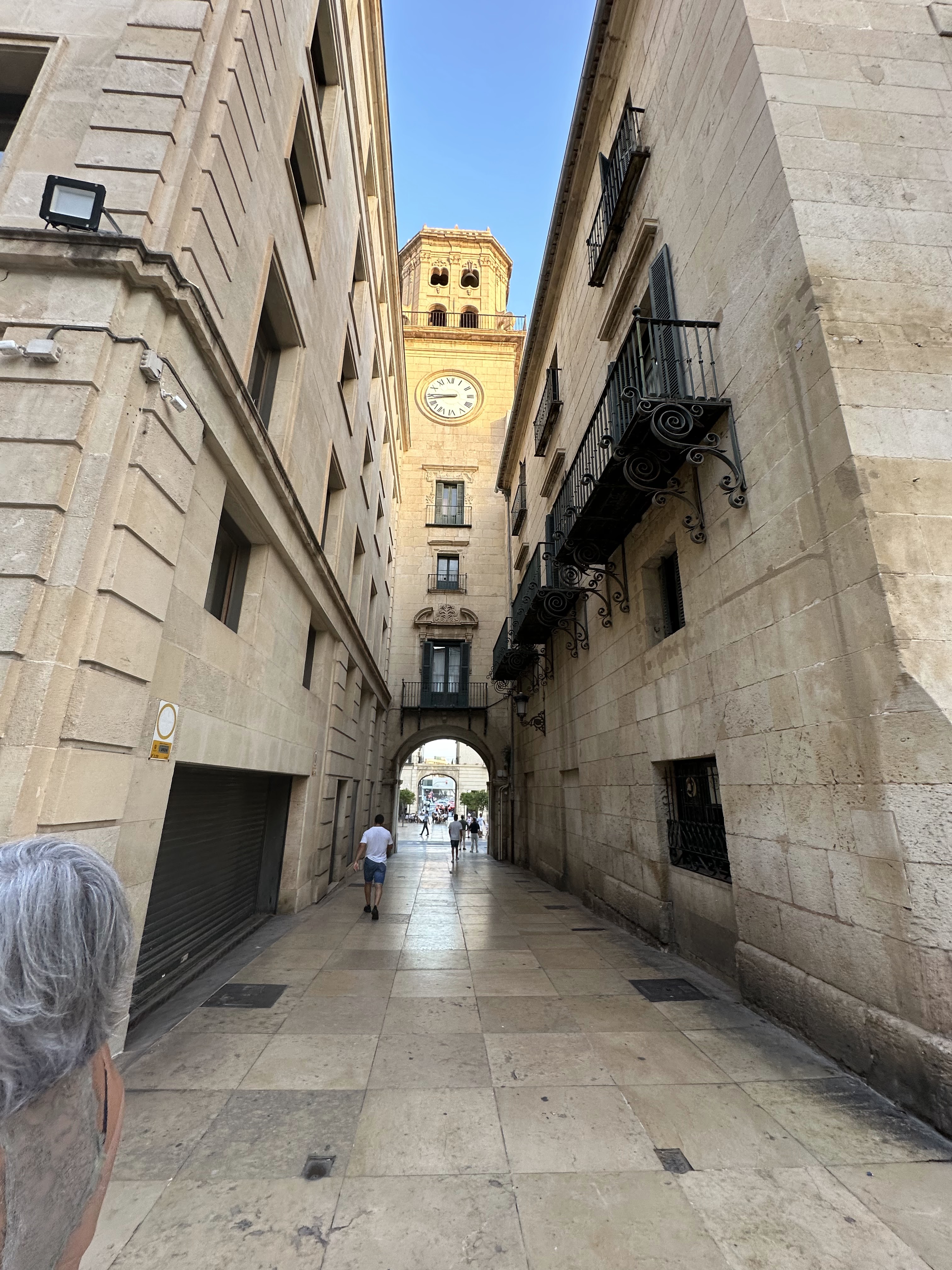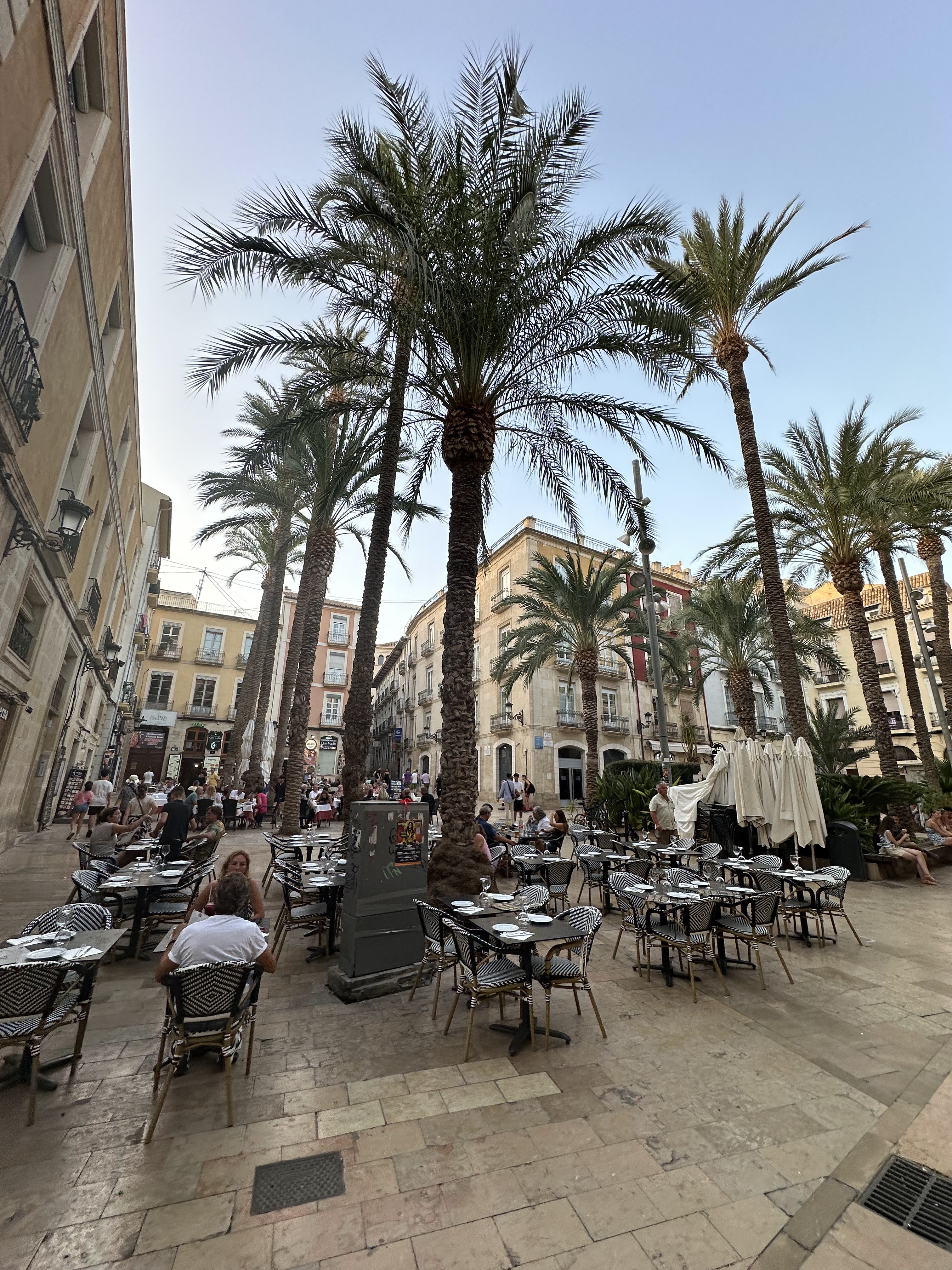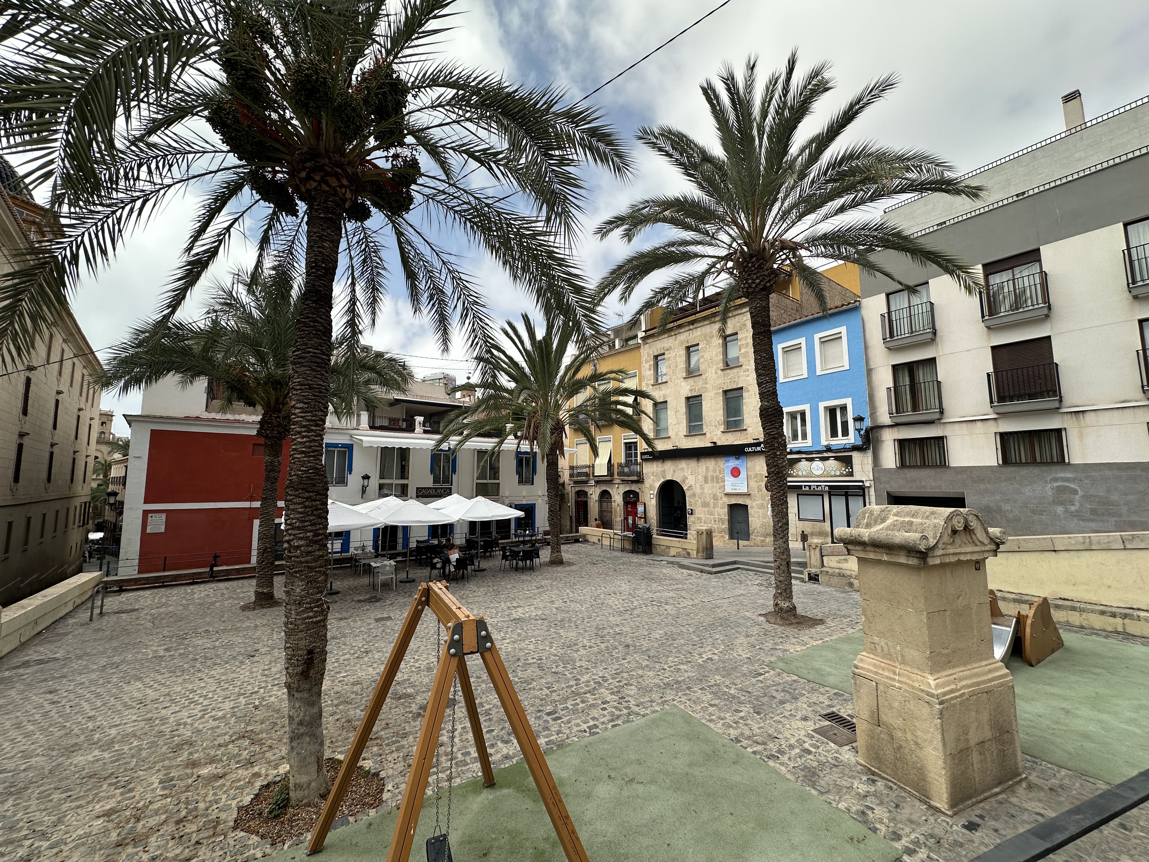 Por la tarde salimos a seguir nuestro paseo; a parte de nuestro paso por el Portal de Elche con esos ficus centenarios rodeando ese quiosco, y el carrito que se ha puesto de moda para llevar las cosas de la playa, y como vimos en Adra, hasta para llevar a los peques, fuimos por la siempre concurrida calle Mayor, hasta la Plaza de la Santísima Faz.»Es una de las plazas más pintorescas de la ciudad. Situada a espaldas del Ayuntamiento, es una de las puertas de entrada al barrio antiguo. La plaza está flanqueada por altas palmeras que la circundan.»