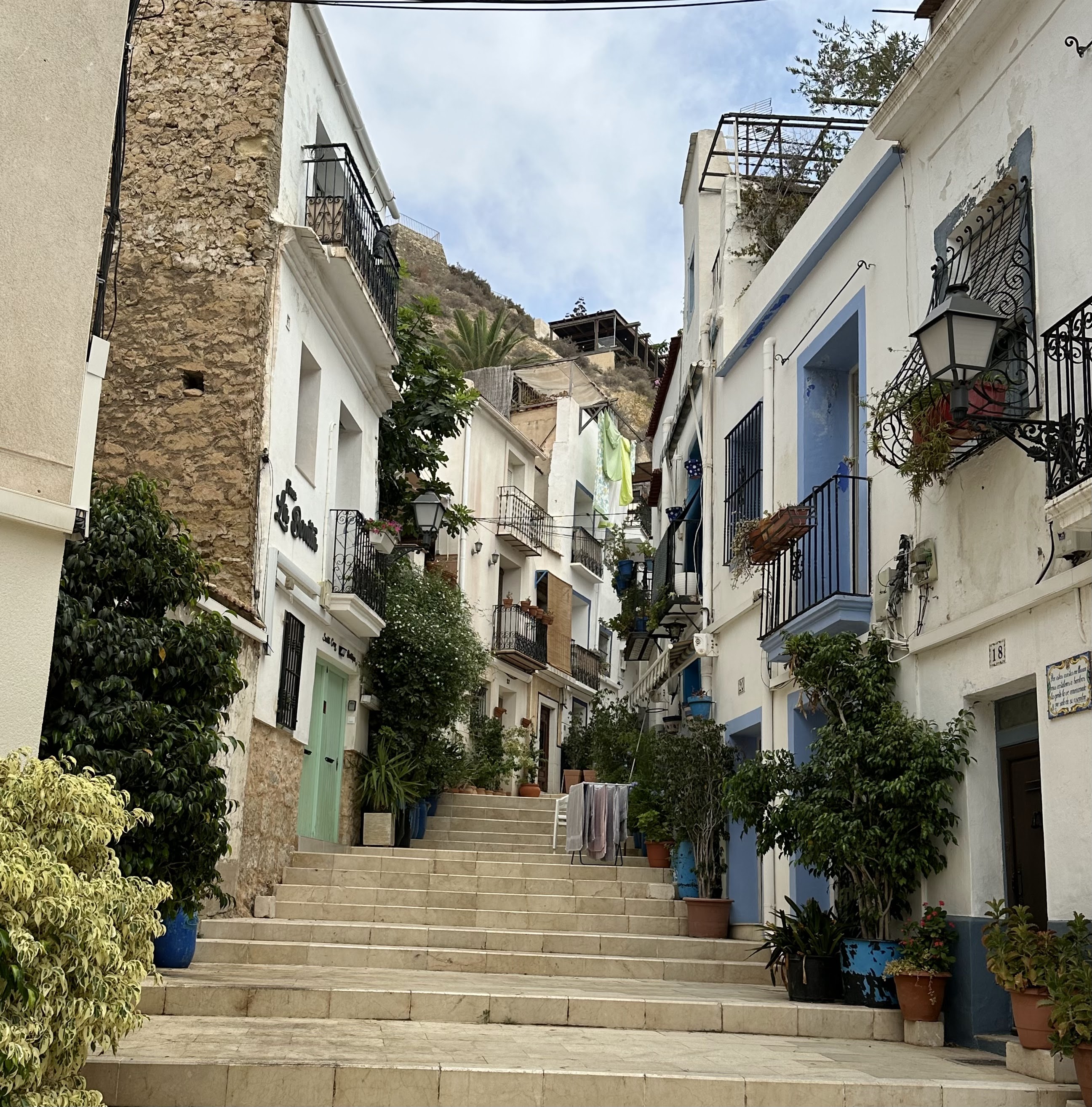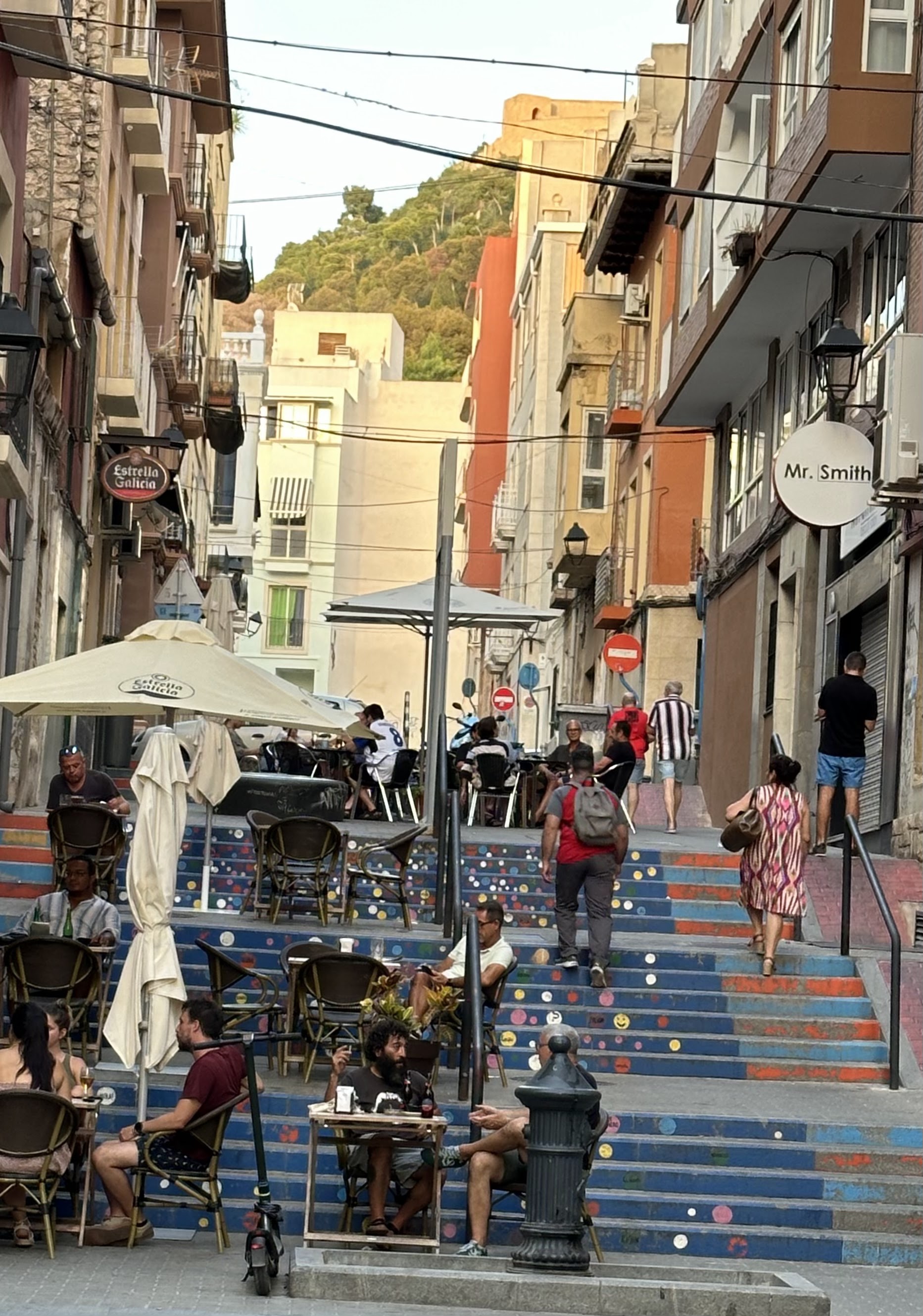 «Las escaleras de esa calle, en San Antón (barrio), se han convertido en unas de las más alegres de la ciudad tras ser pintadas con intensos colores dentro de la iniciativa Alacant Public Art de la Concejalía de Imagen Urbana. El diseño es de la artista Ester García quien ha incluido círculos de colores que dedicará a los enfermos de alzhéimer.»