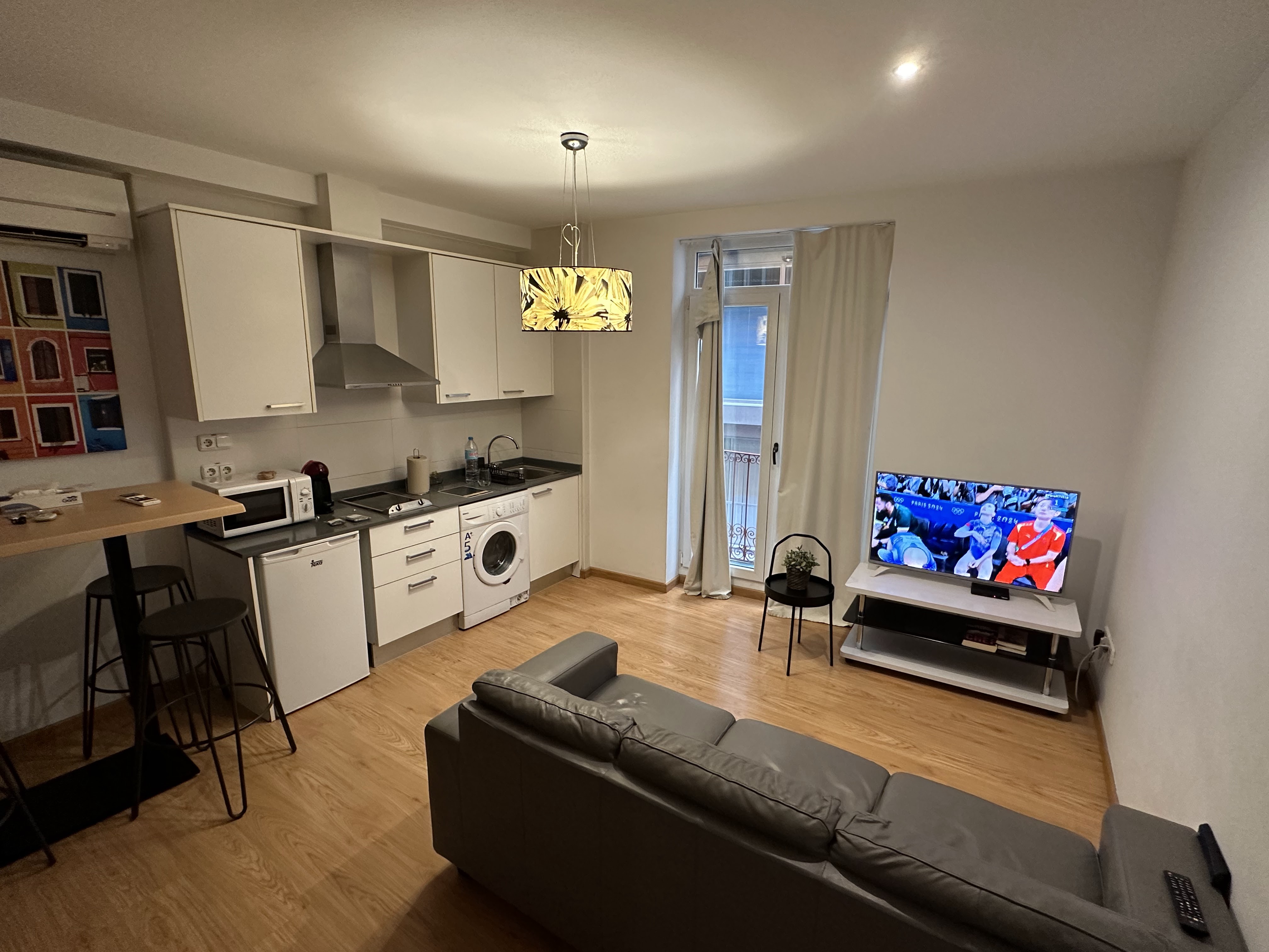 El sitio la verdad que está en una zona muy buena para visitar Alicante, ir de tapas, restaurantes, compras, etc. pero las fotos del alojamiento no la asociamos mucho a éste, ni siquiera la incómoda mesa alta que tiene para desayunar/comer; vas viendo que aunque está limpio, tiene cosas de estar «baqueteado» (muy usado).