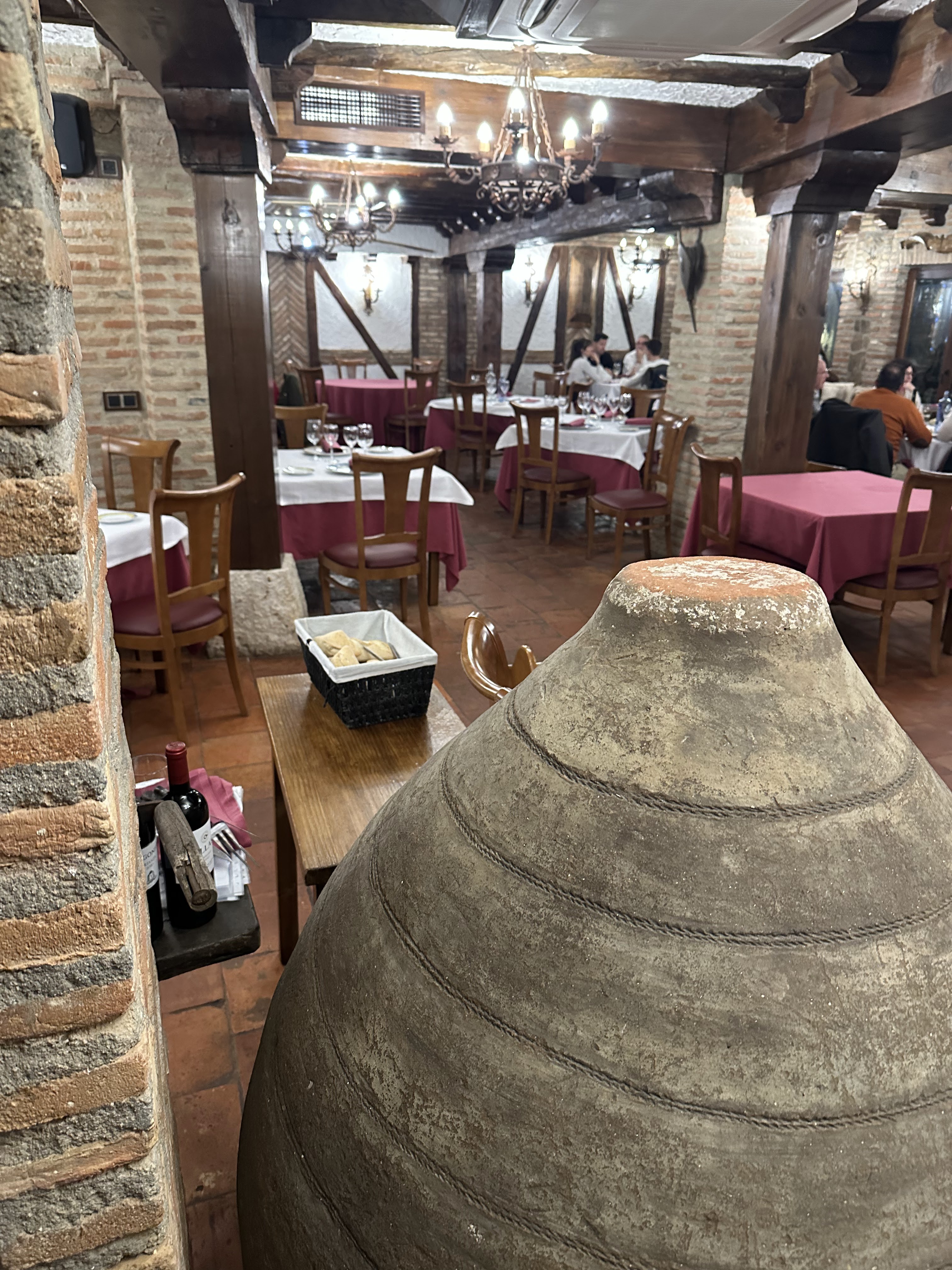 Comedor Rest.El Lagar de Nemesio/Perales de TajuñaVino godello tomado en Rest.El Lagar de Nemesio/Perales de TajuñaPisto casero con escabeche y huevo/Rest.El Lagar de Nemesio/Perales de TajuñaCecina de vaca con almendras laminadas/Rest.El Lagar de Nemesio/Perales de Tajuña