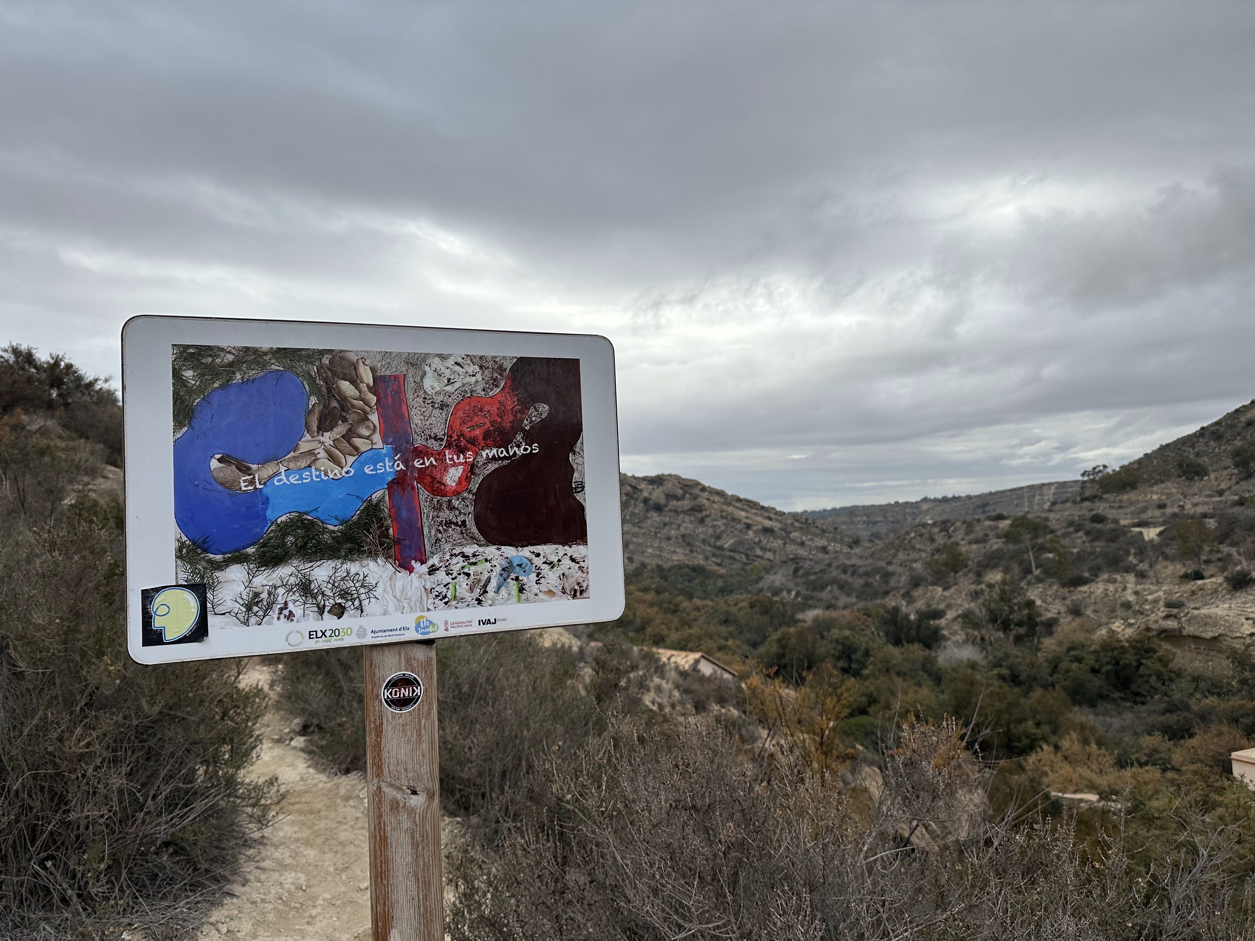 «Este sendero de unos 8 km de longitud transcurre por el mismo cauce del río Vinalopó, en su mayor parte, y conecta nuestra ciudad con el paraje natural municipal de los Aljezares, ya en el término municipal de Aspe.
