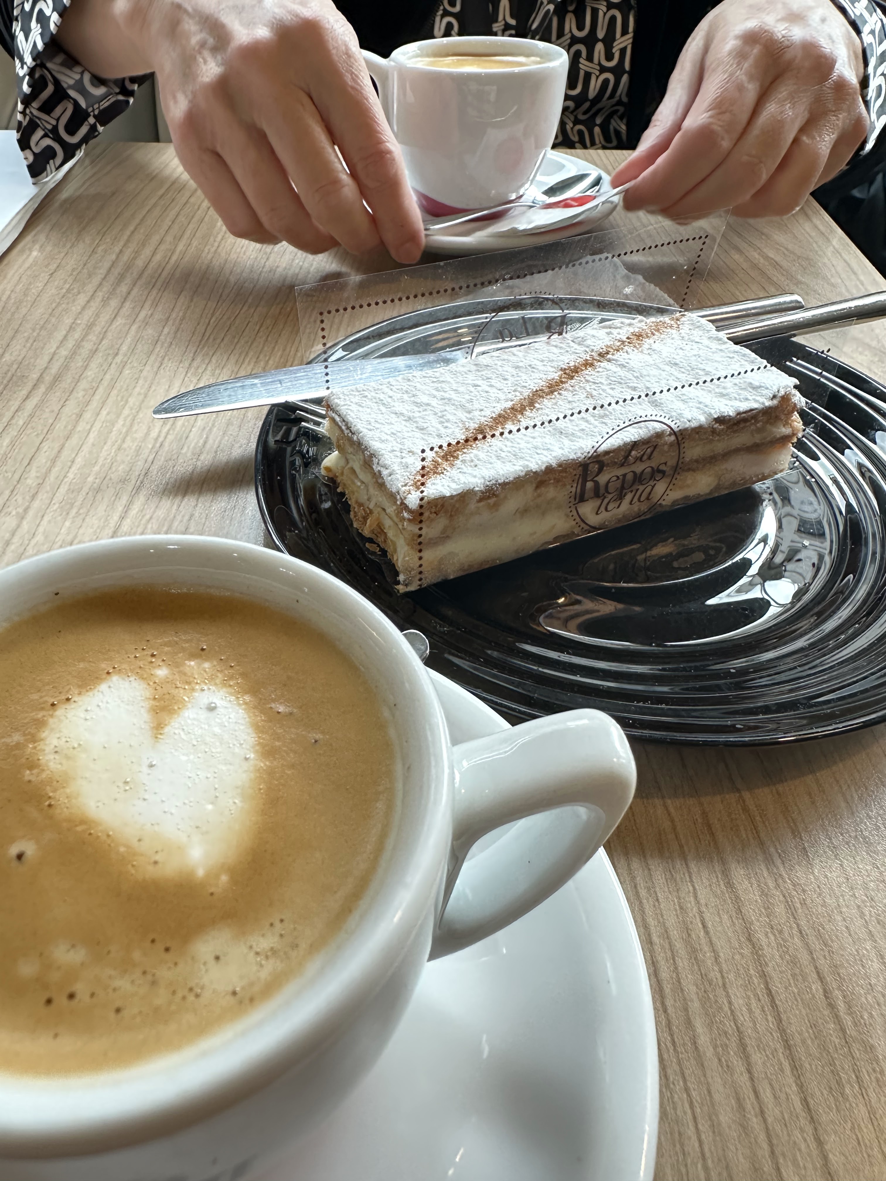 El postre (esta última foto) cayó en La RePOStería, que se encuentra justo enfrente…esa milhoja de crema no falta cuando vamos allí.